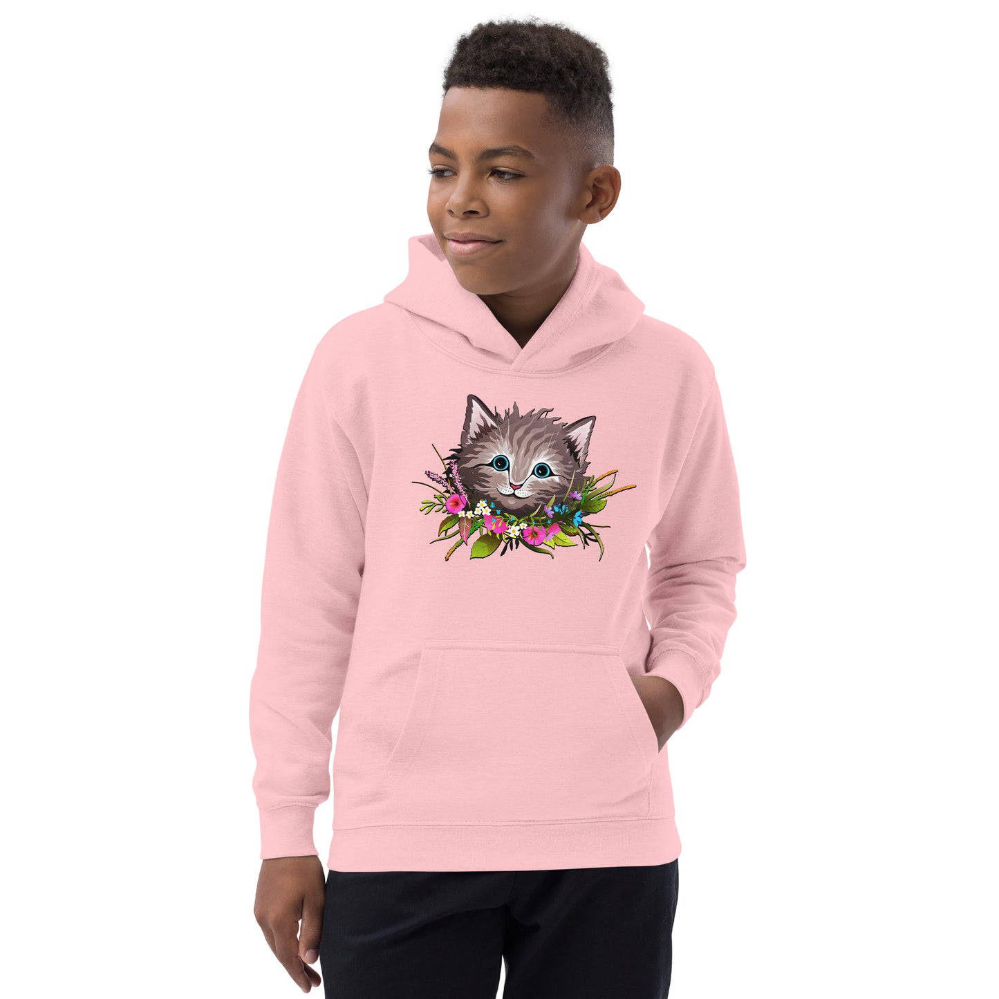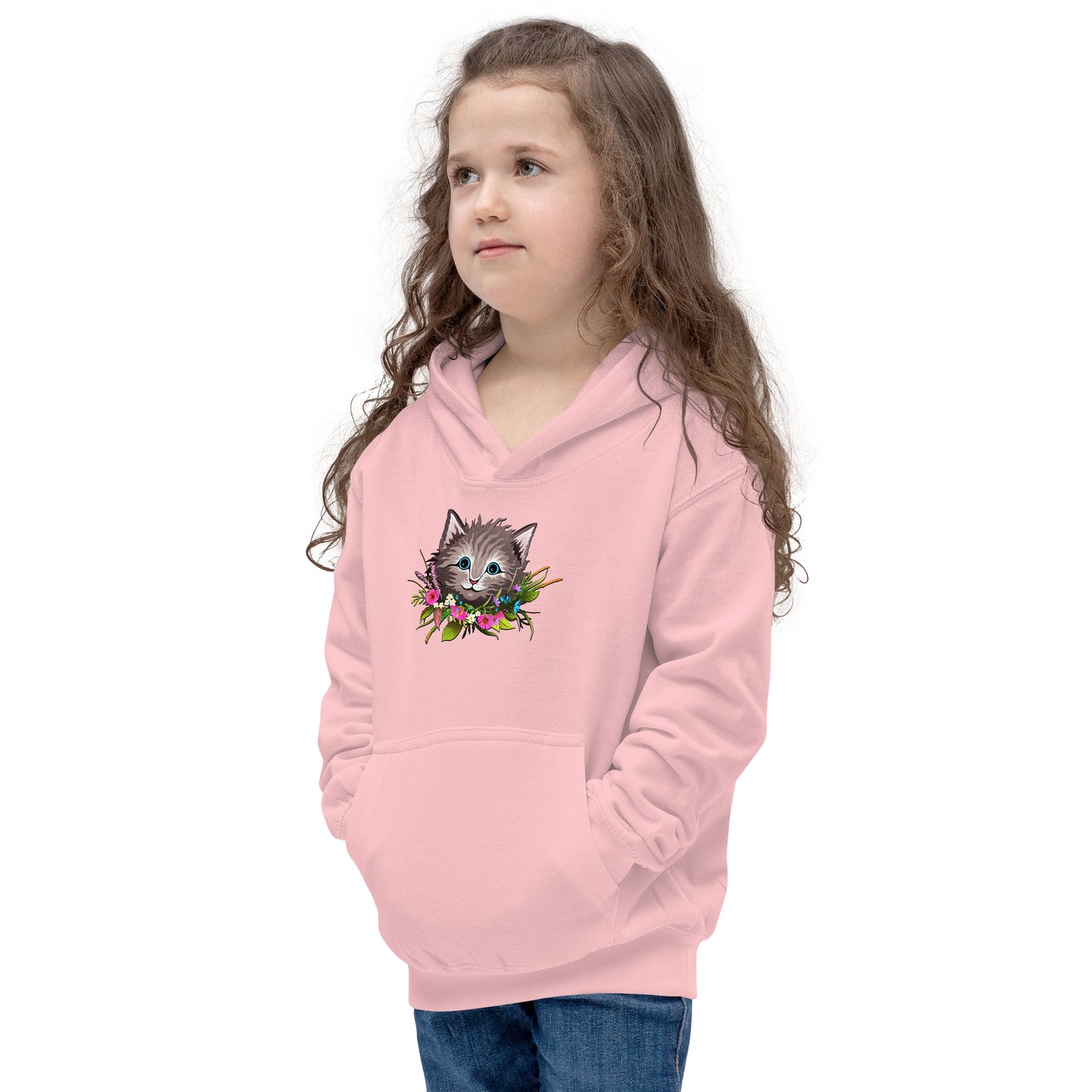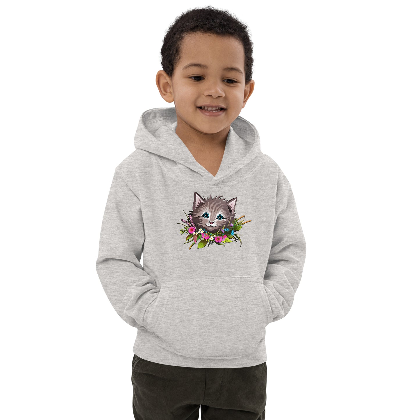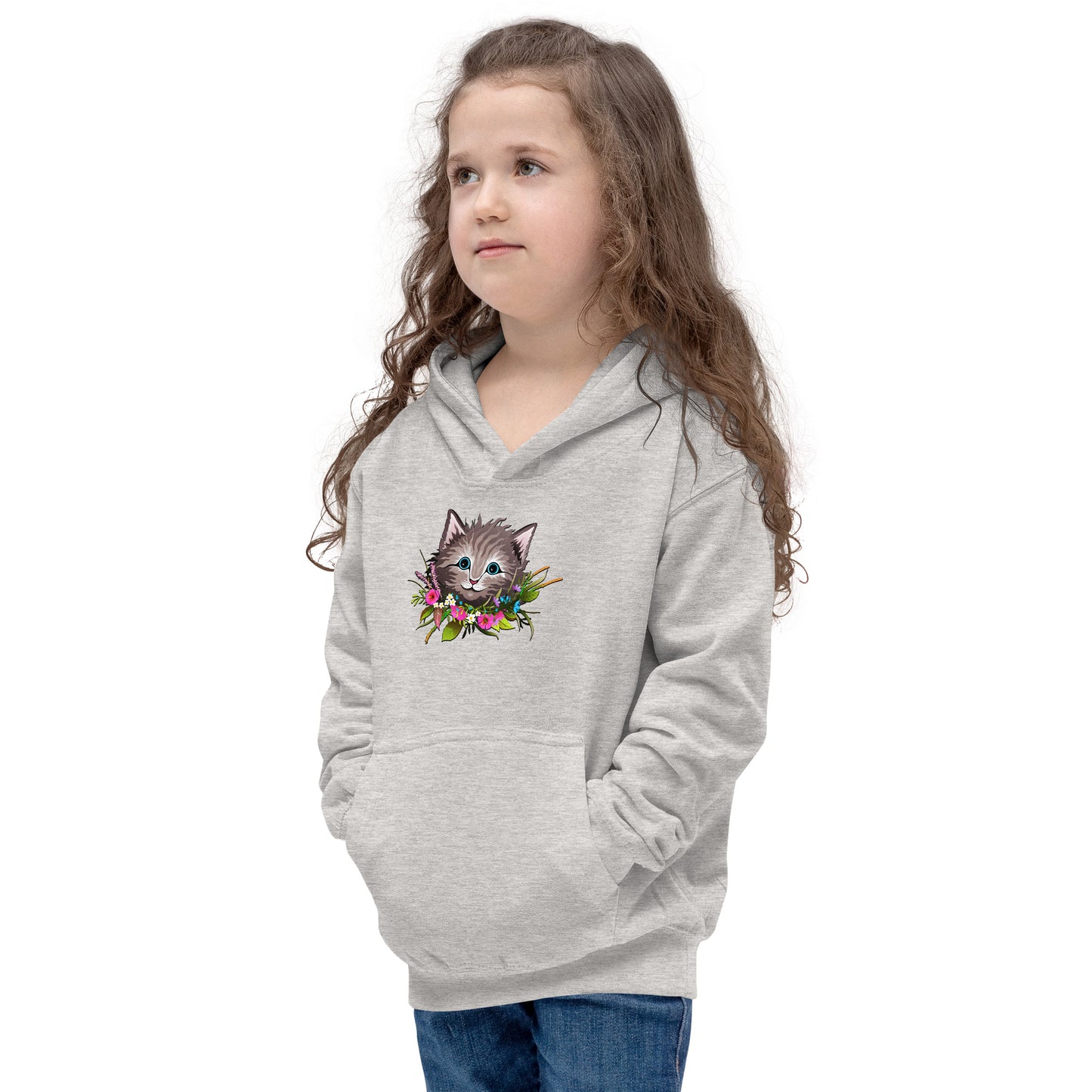 Cute Cat Face with Flowers Wreath Around the Neck Hoodie, No. 0155