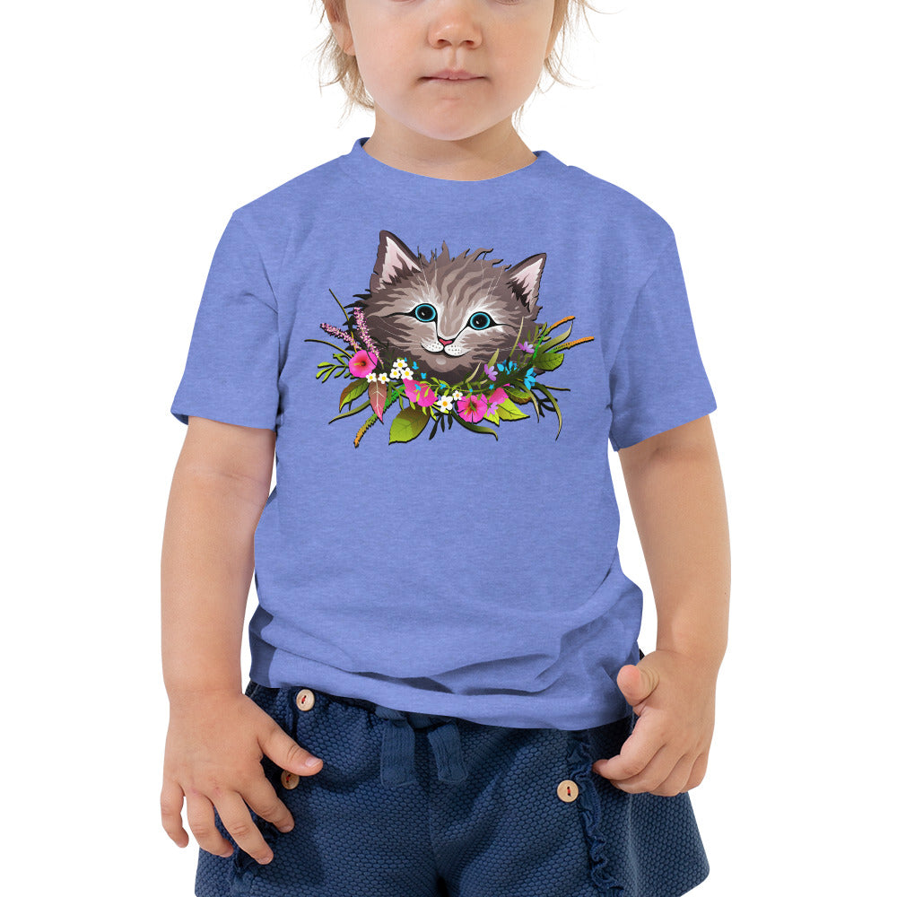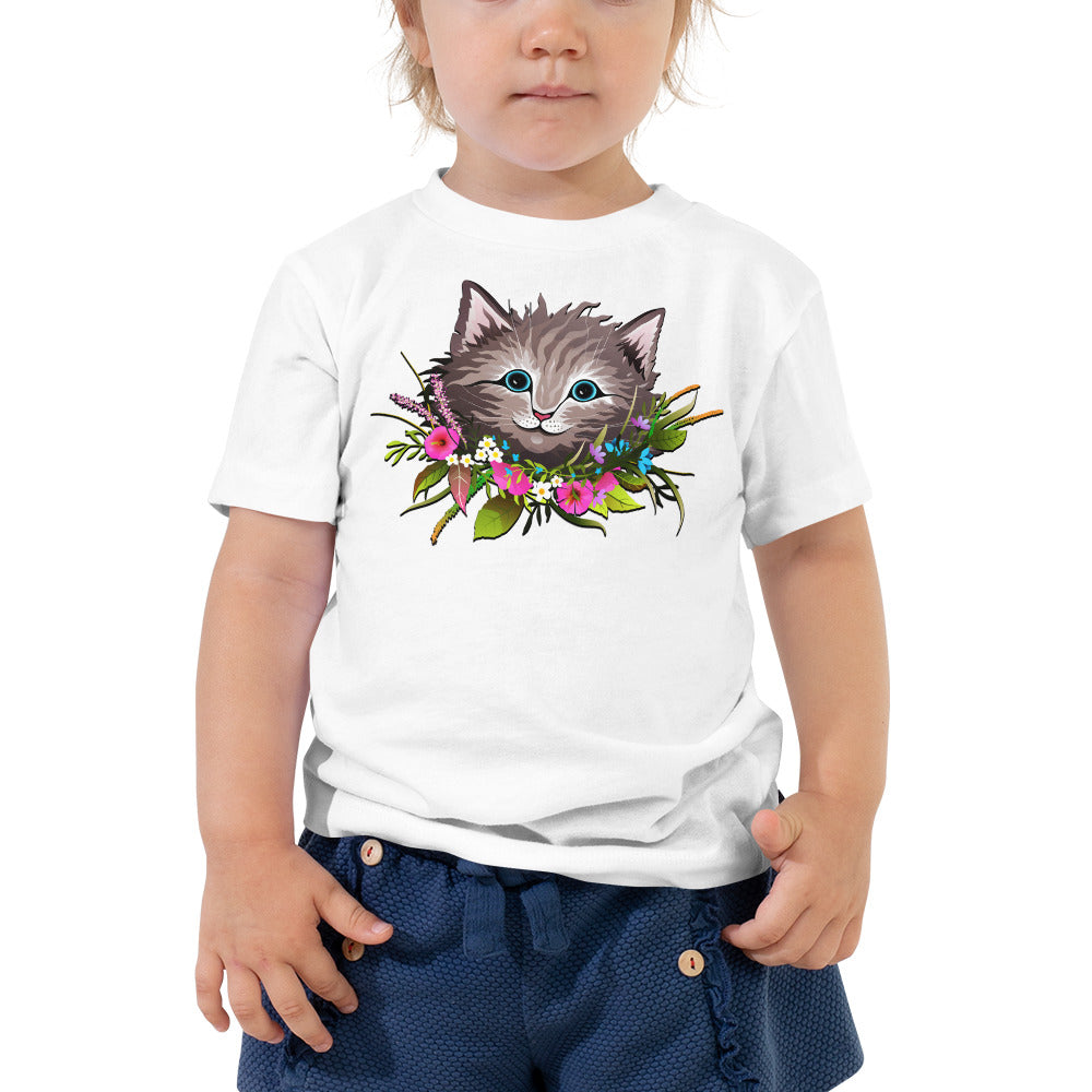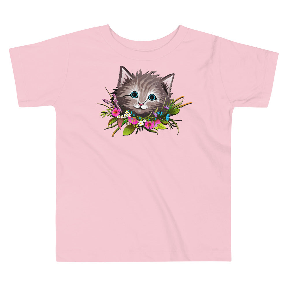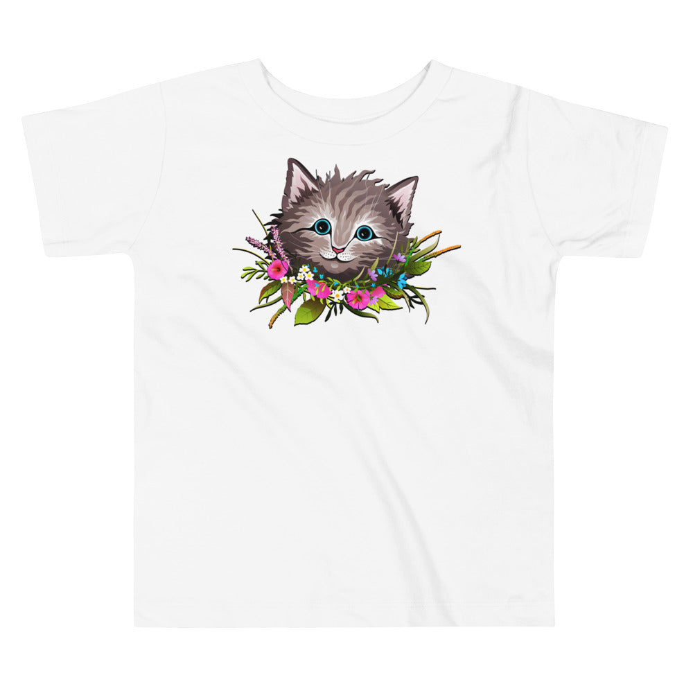 Cute Cat Face with Flowers Wreath Around the Neck T-shirt, No. 0155