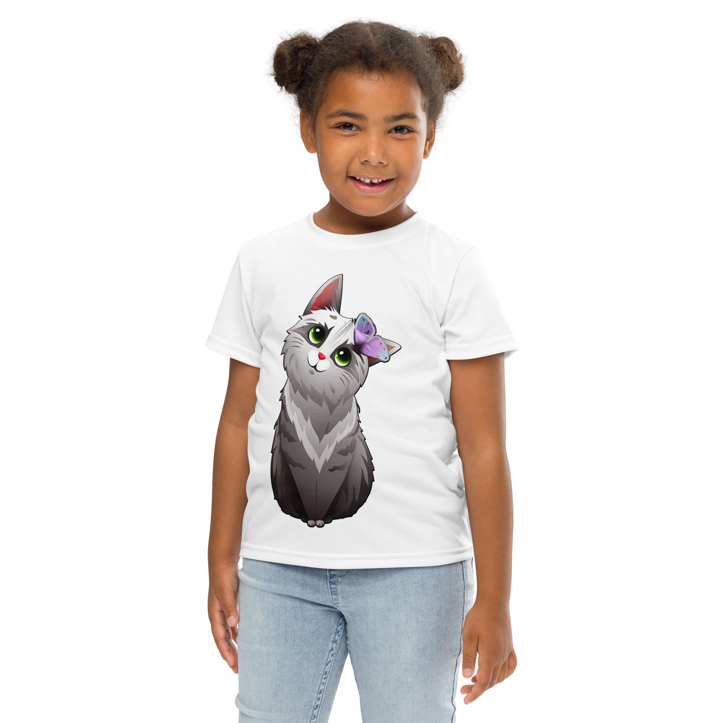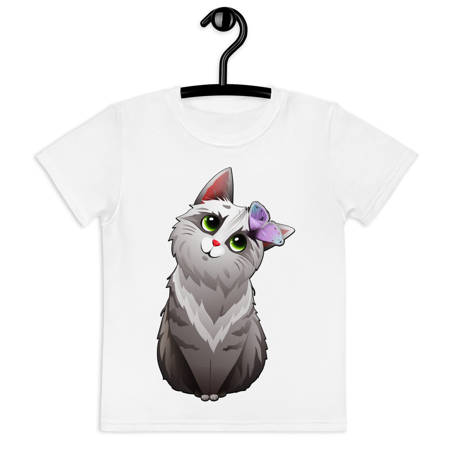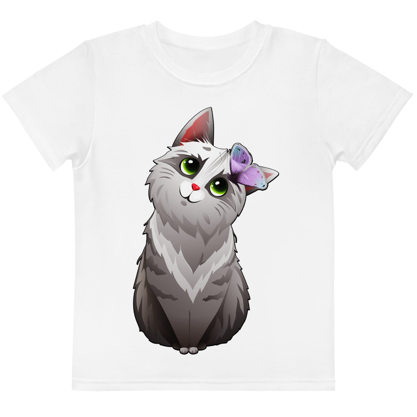 Cute Cat Playing with Butterfly T-Shirt, No. 0159