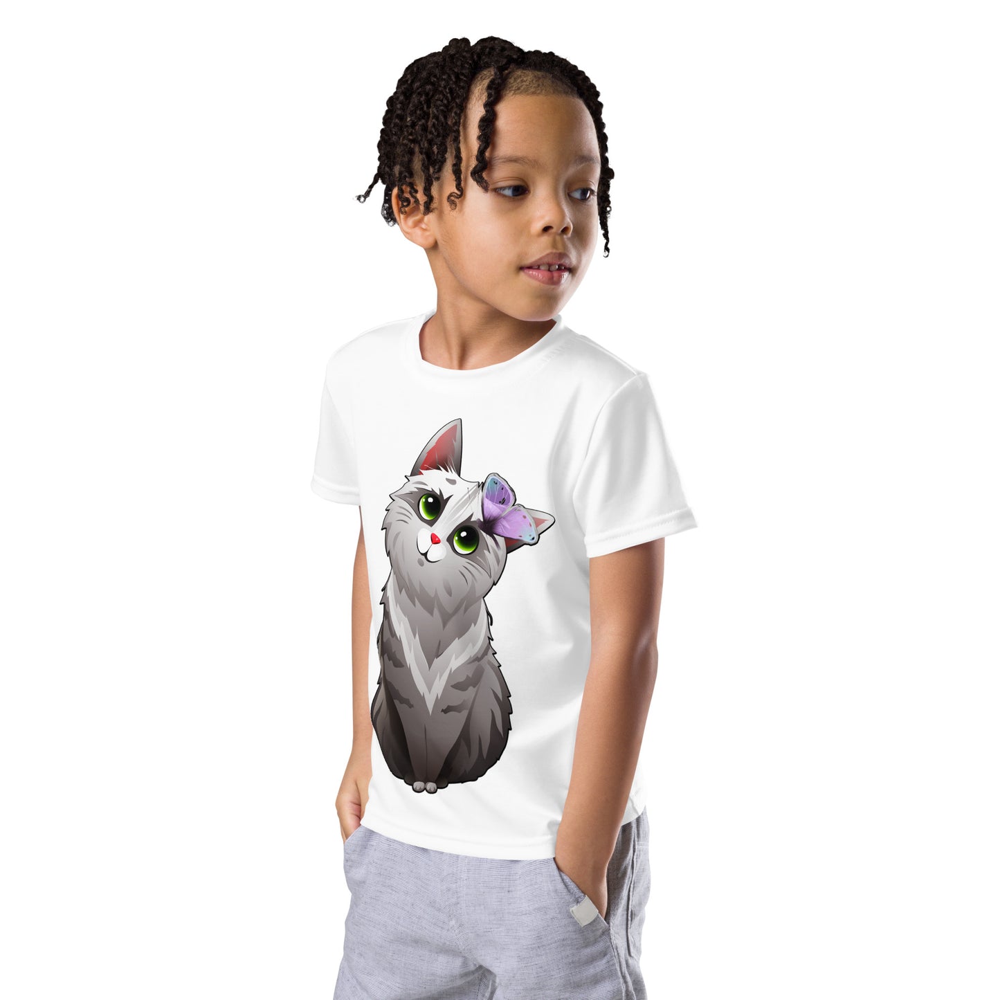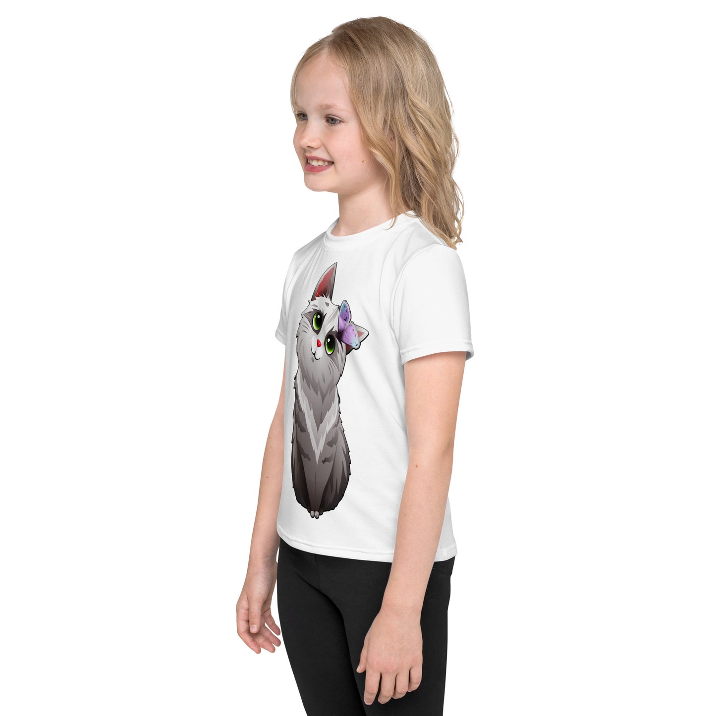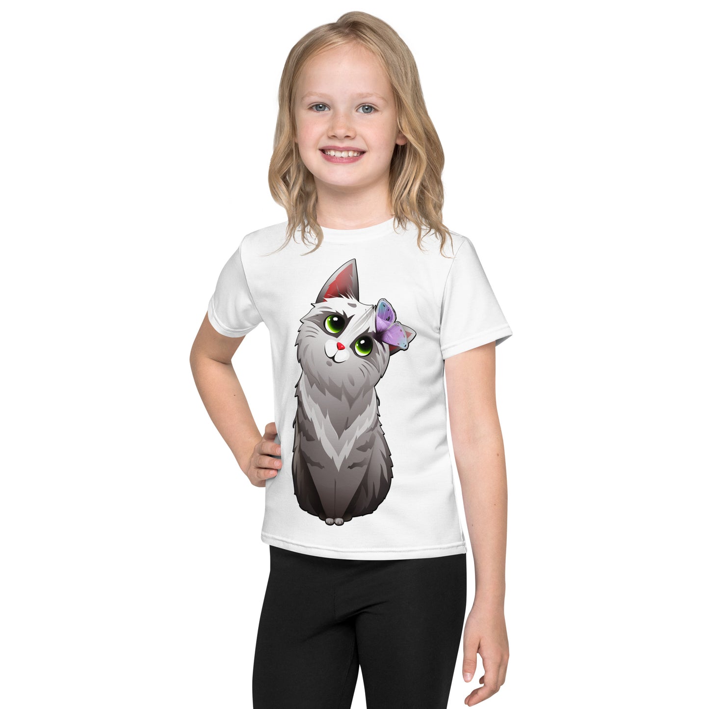 Cute Cat Playing with Butterfly T-Shirt, No. 0159