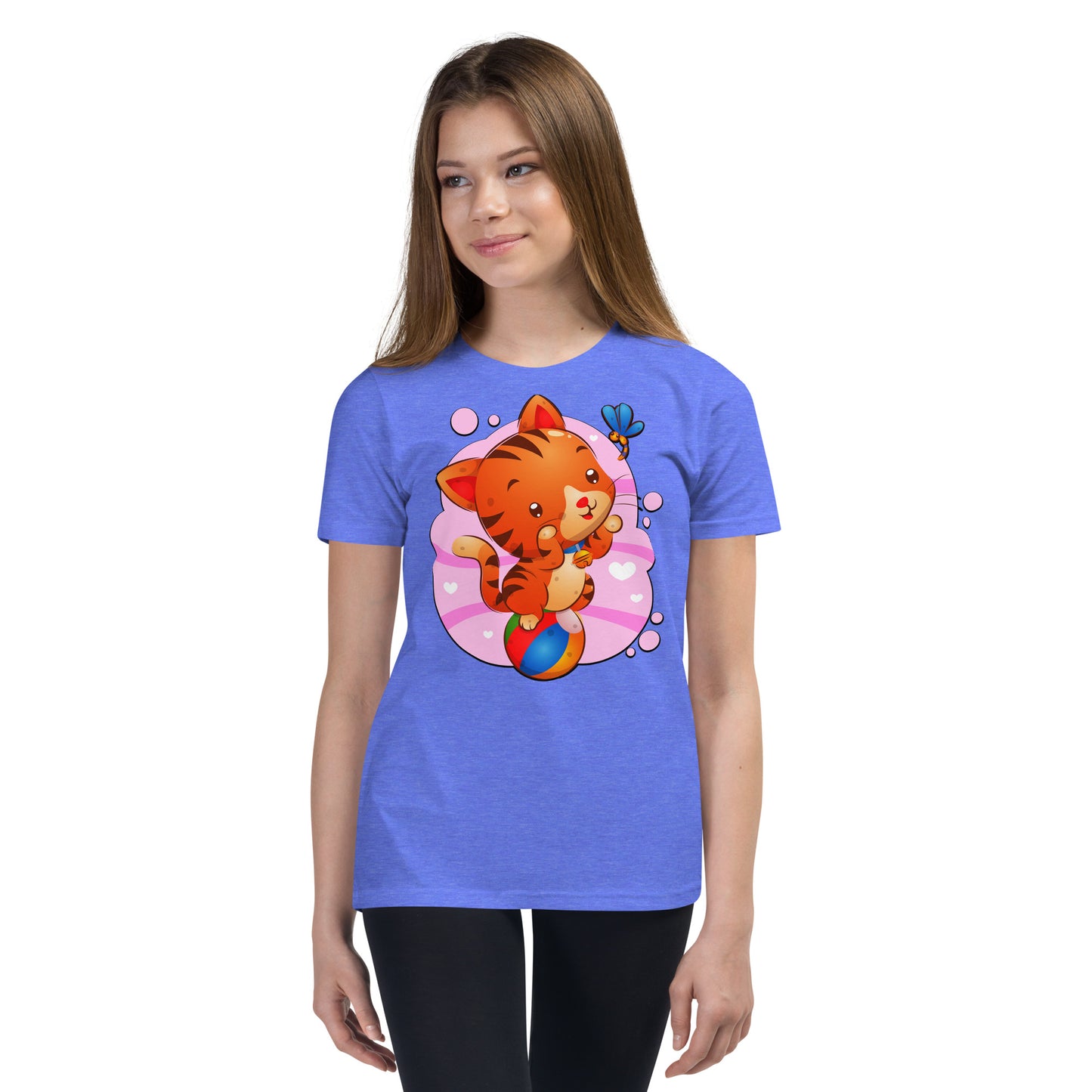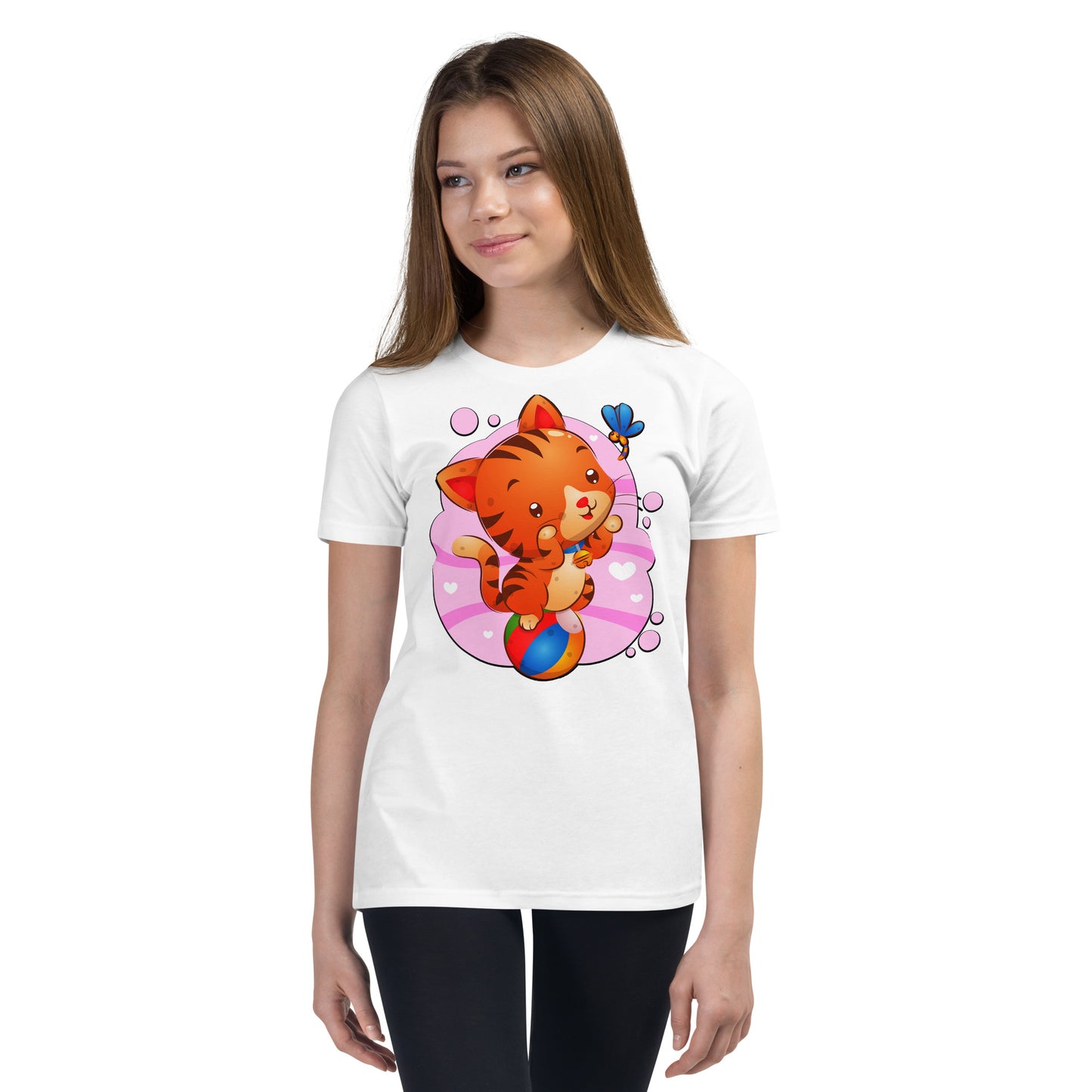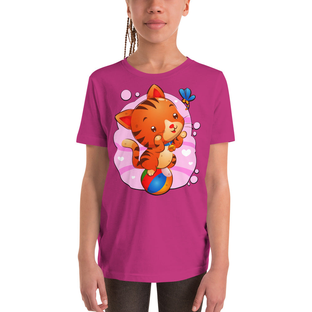 Cute Cat Sitting on Ball T-shirt, No. 0283