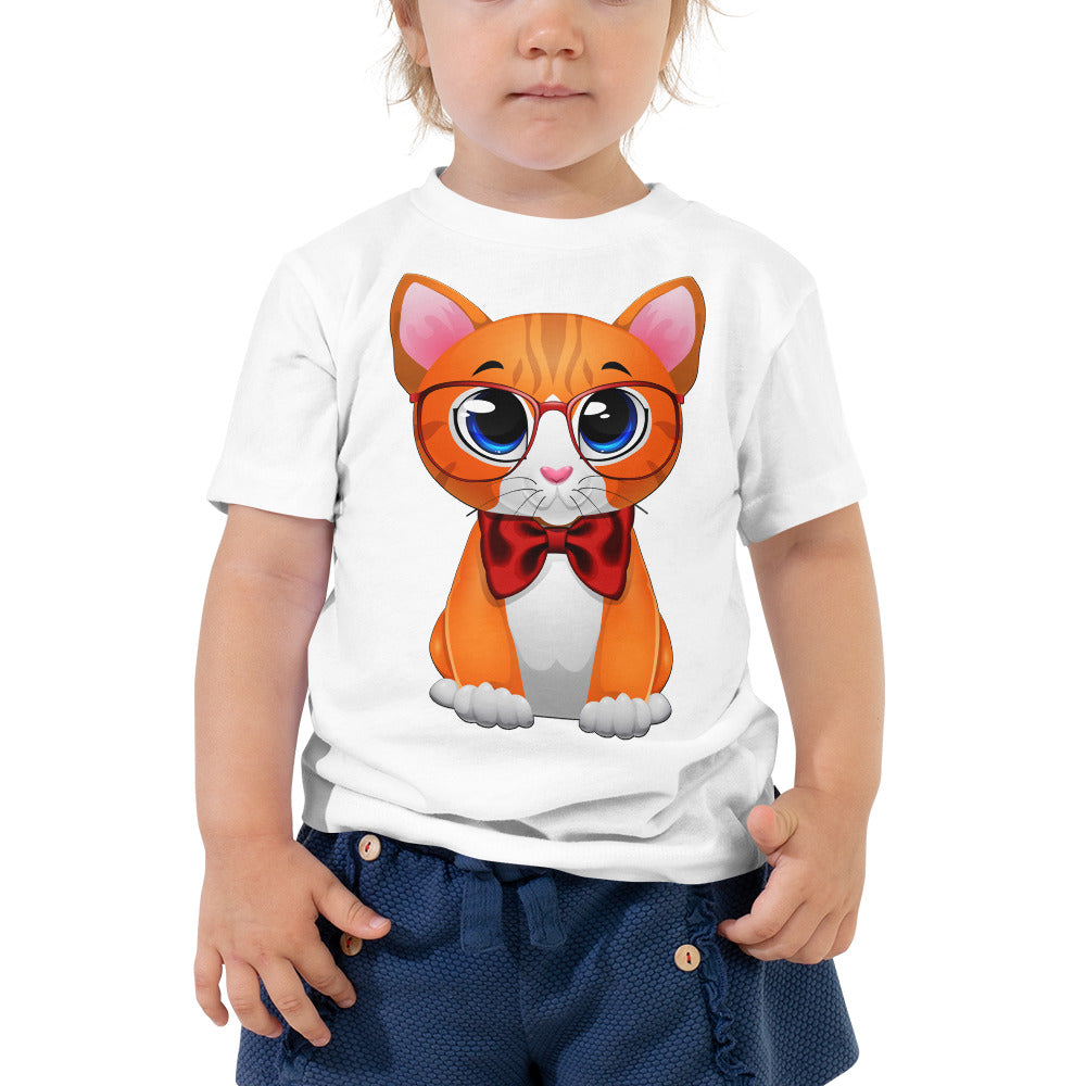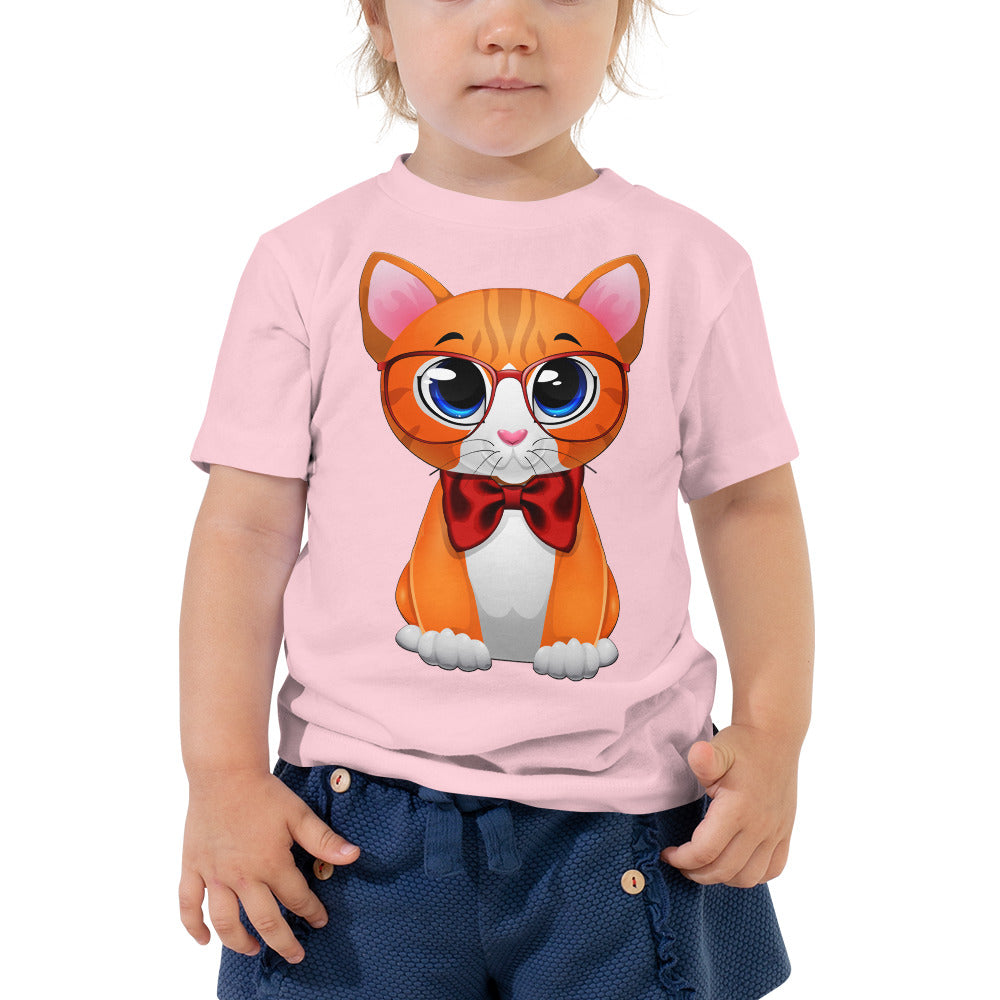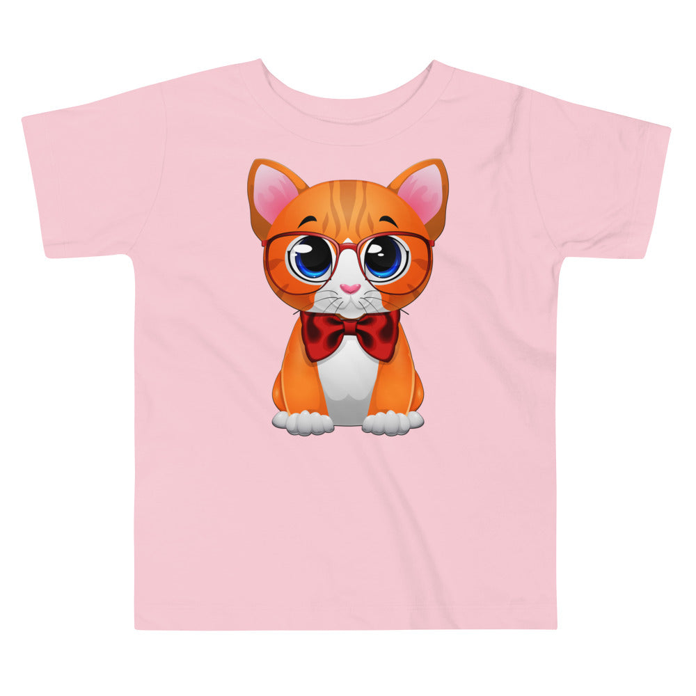 Cute Cat Wearing Red Bow T-shirt, No. 0162