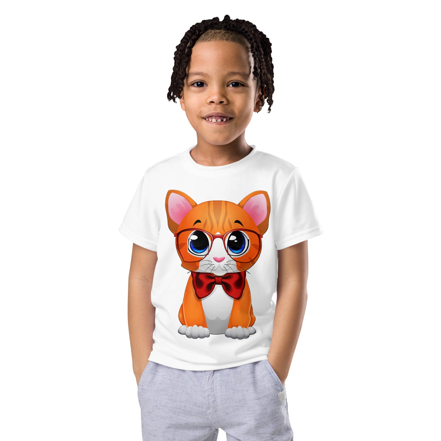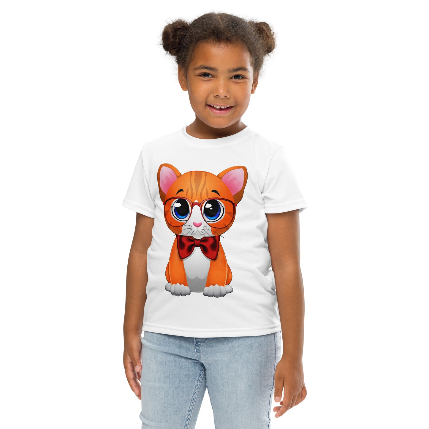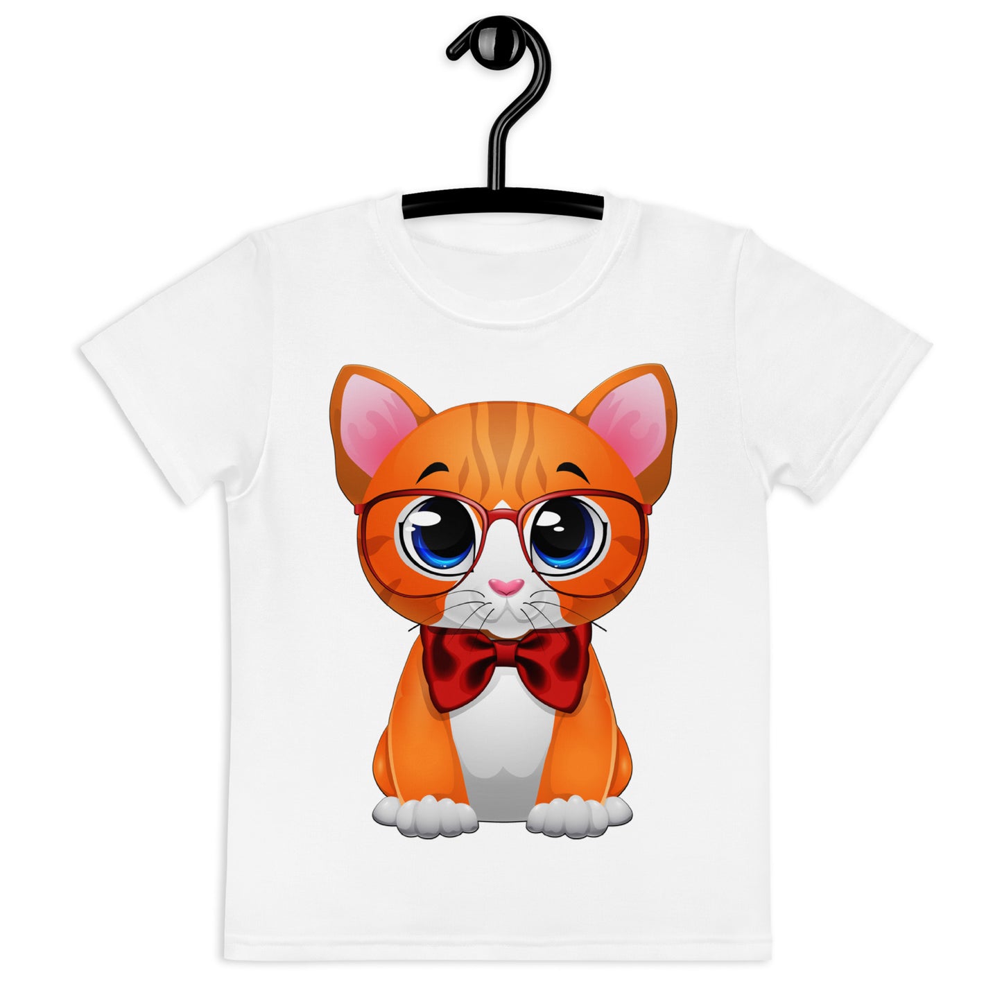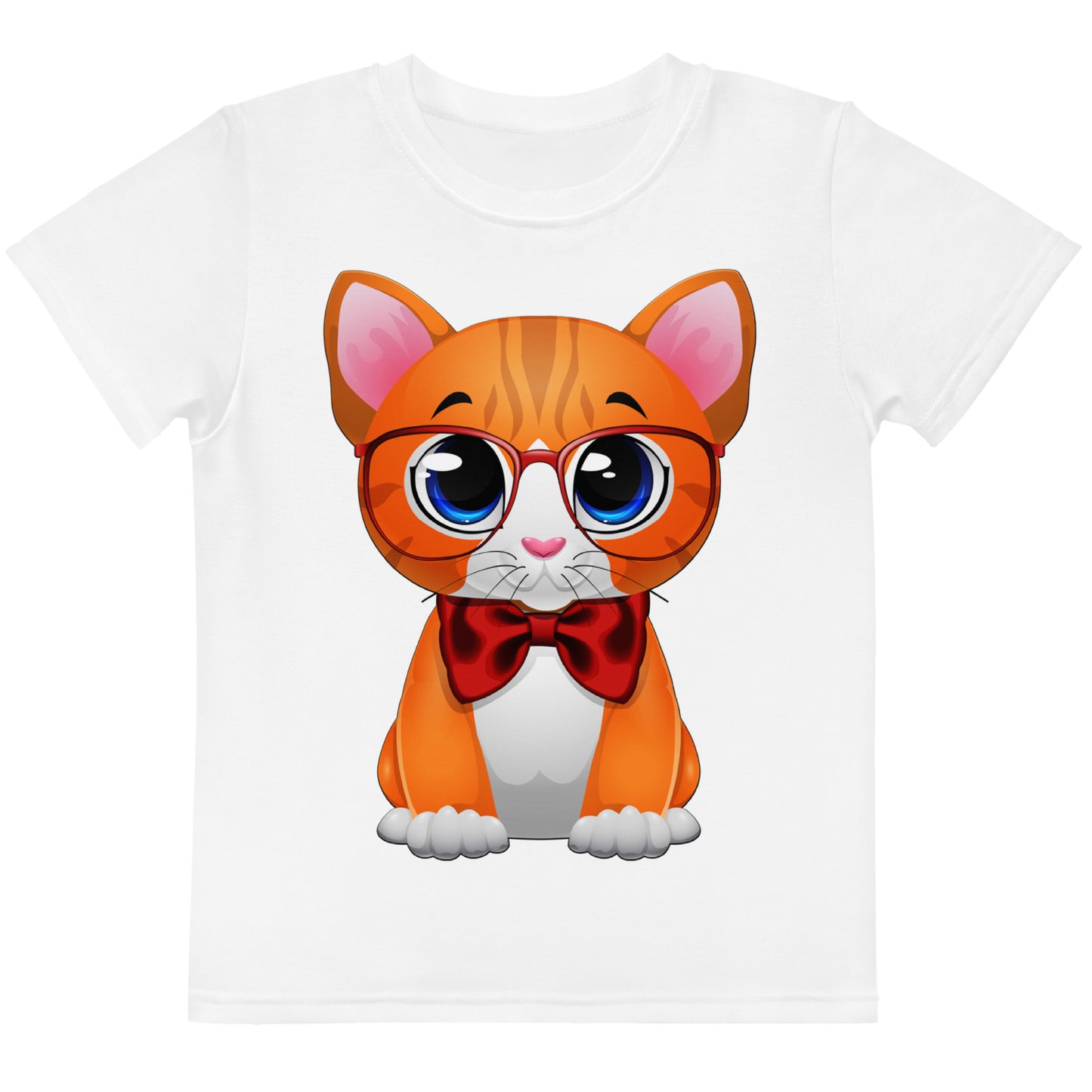 Cute Cat Wearing Red Bow T-Shirt, No. 0162
