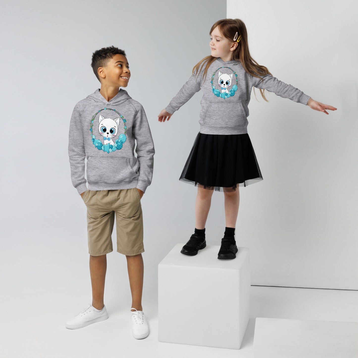 Looking for a comfy hoodie for your little one? This premium quality kids eco hoodie has a front pouch pocket, ribbed cuffs, and a lined hood for additional warmth. It's snug and soft to the touch. What's more, the hoodie is made from organic cotton and recycled polyester, making it a more earth-friendly fashion choice!