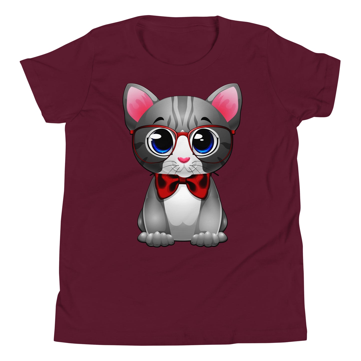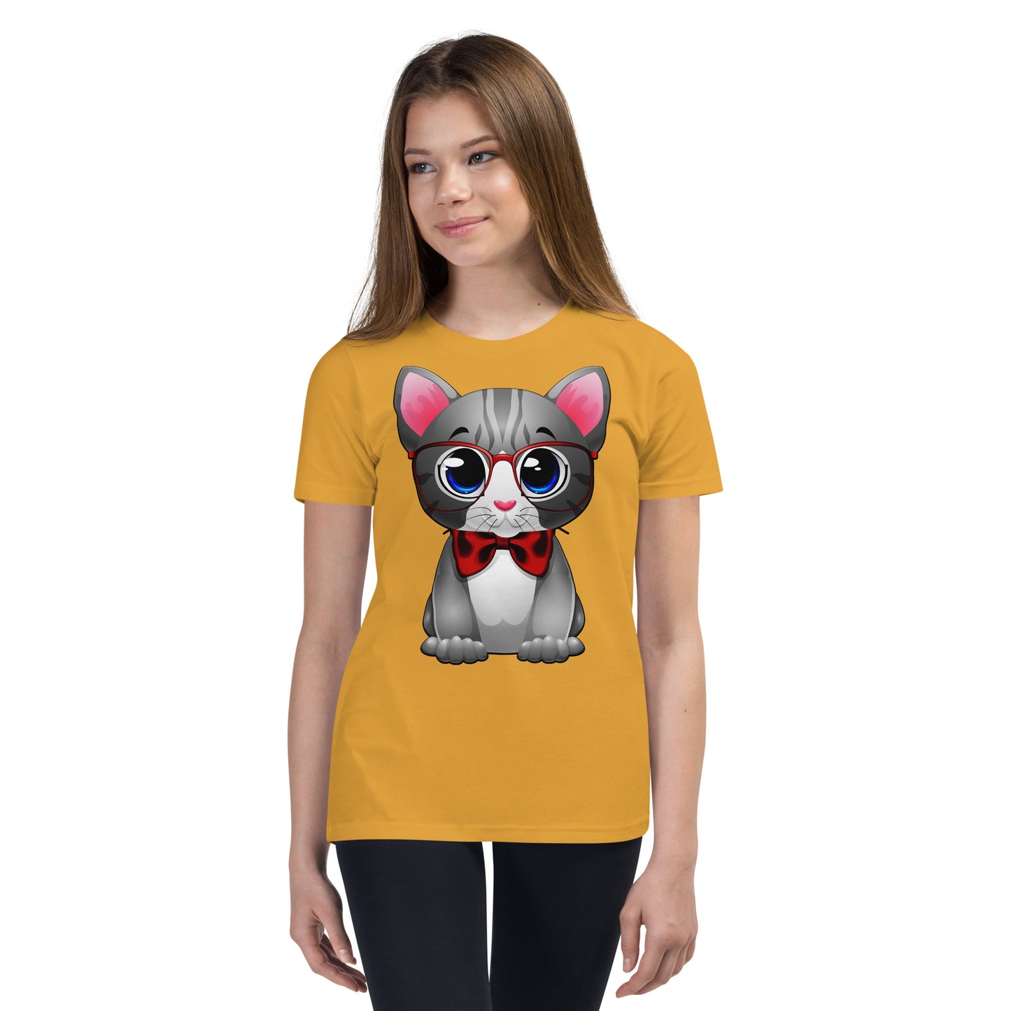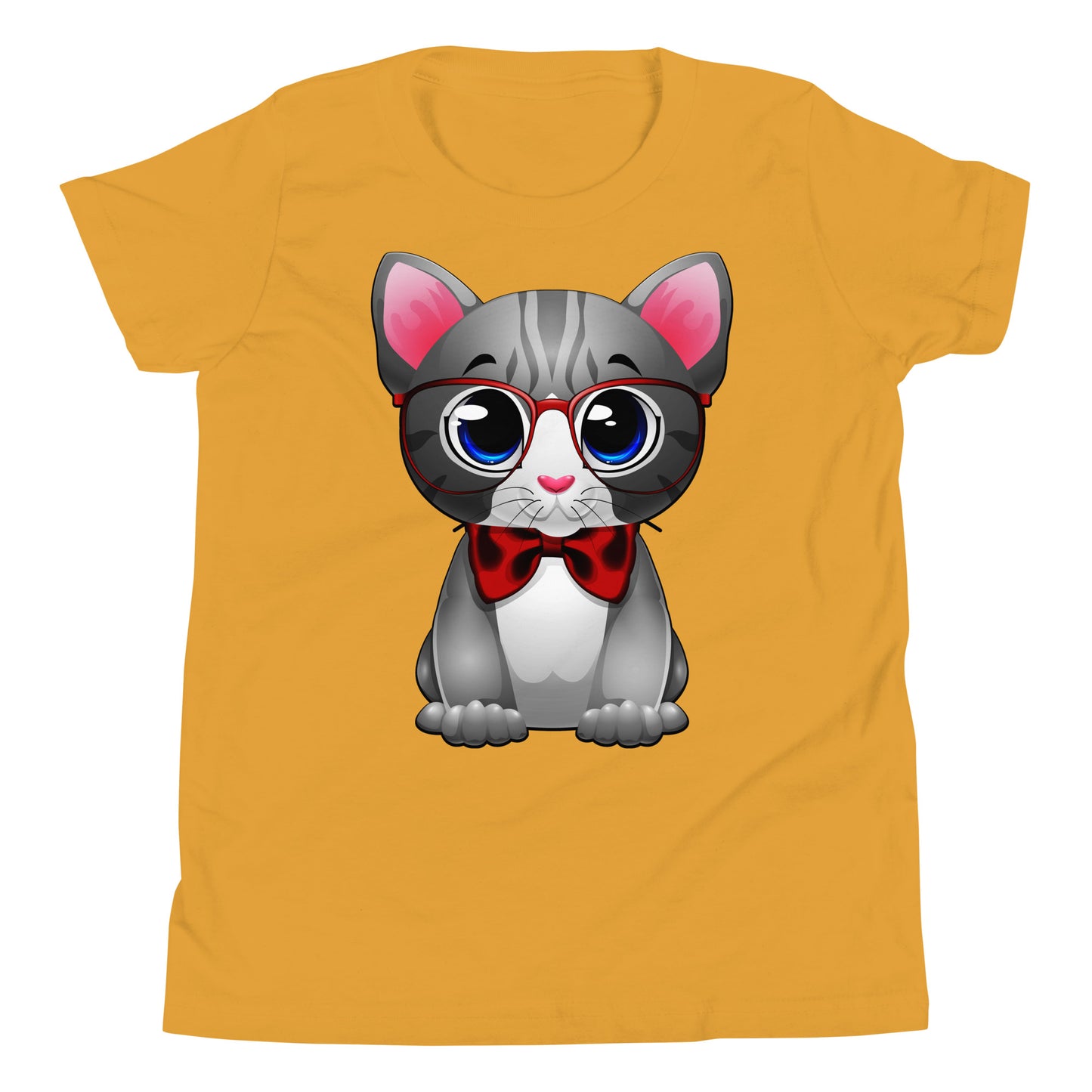 Cute Cat with Red Glasses T-Shirt, No. 0167