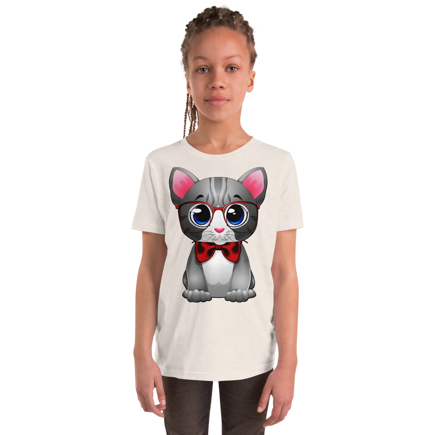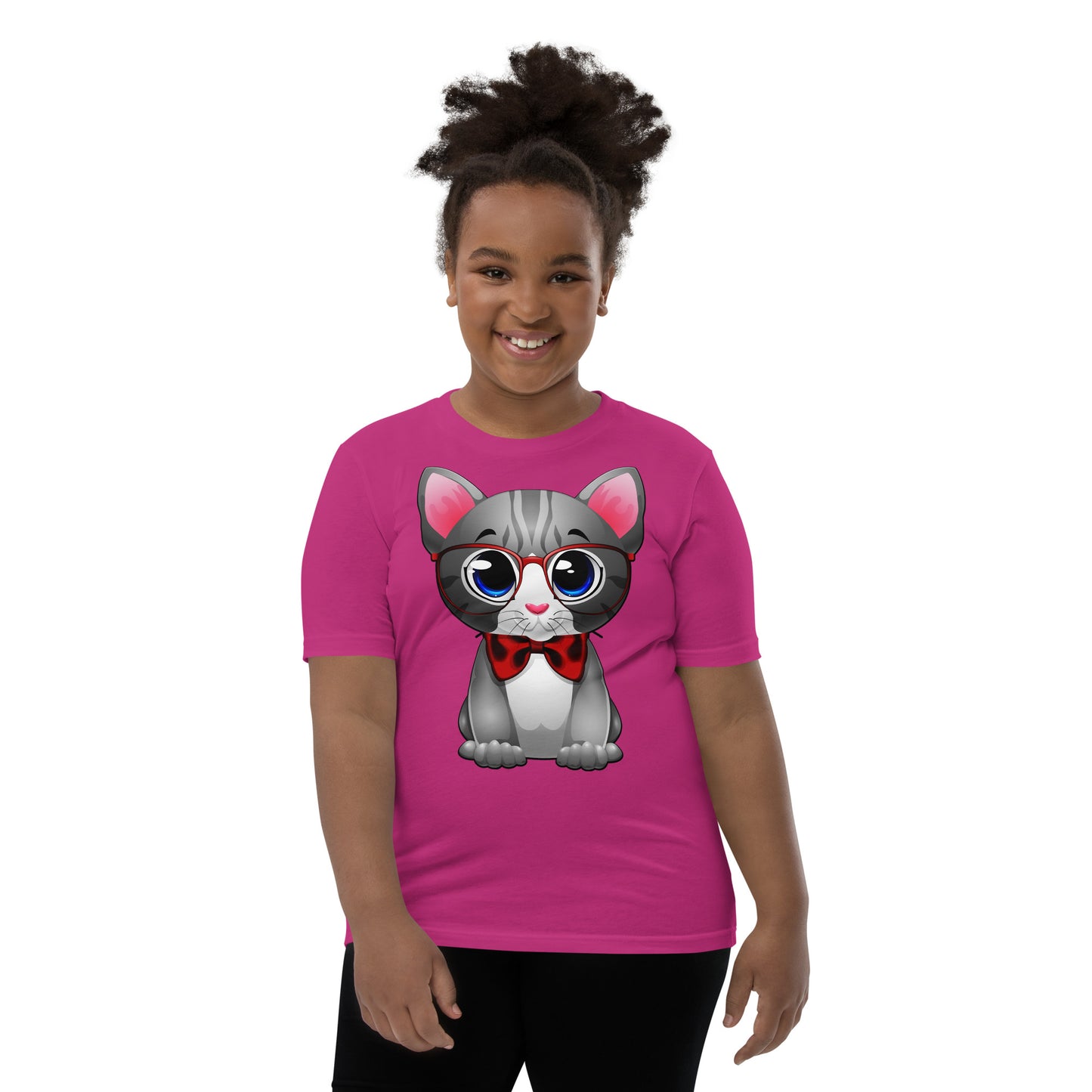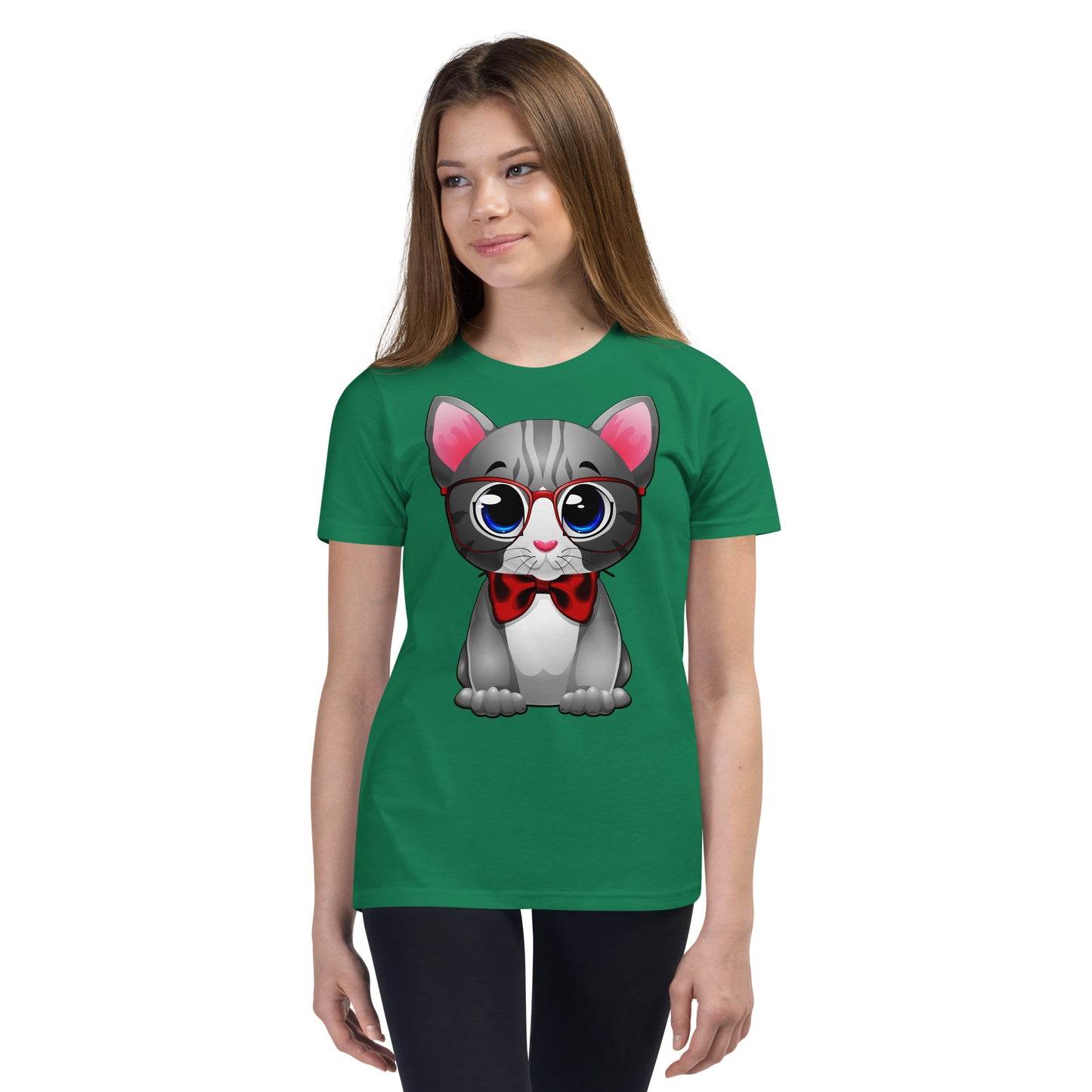 Cute Cat with Red Glasses T-Shirt, No. 0167