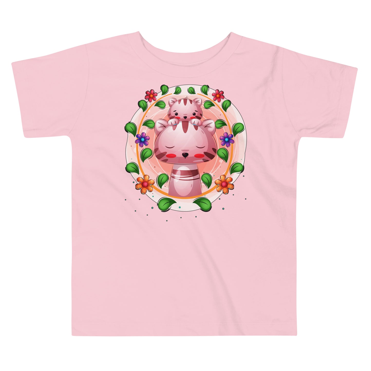 Cute Cats with Flower Wreath T-Shirt, No. 0287