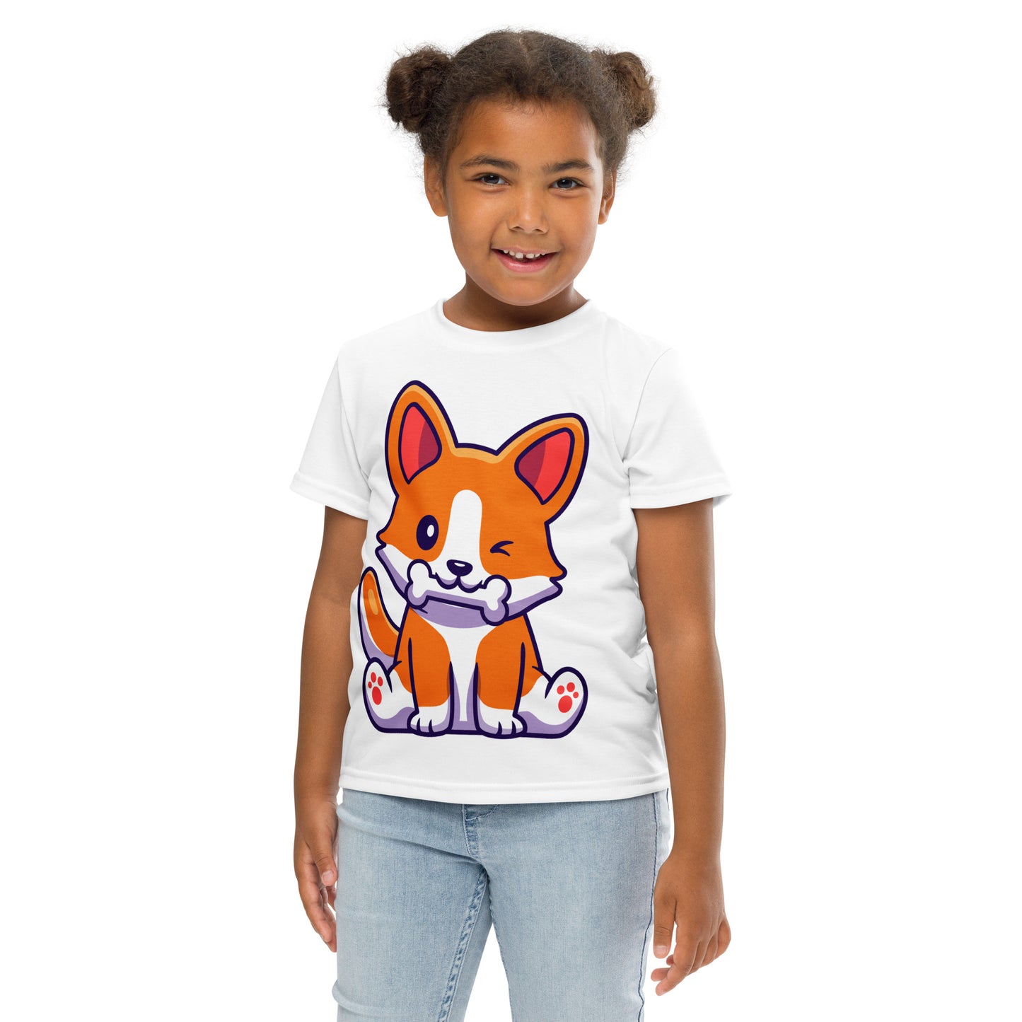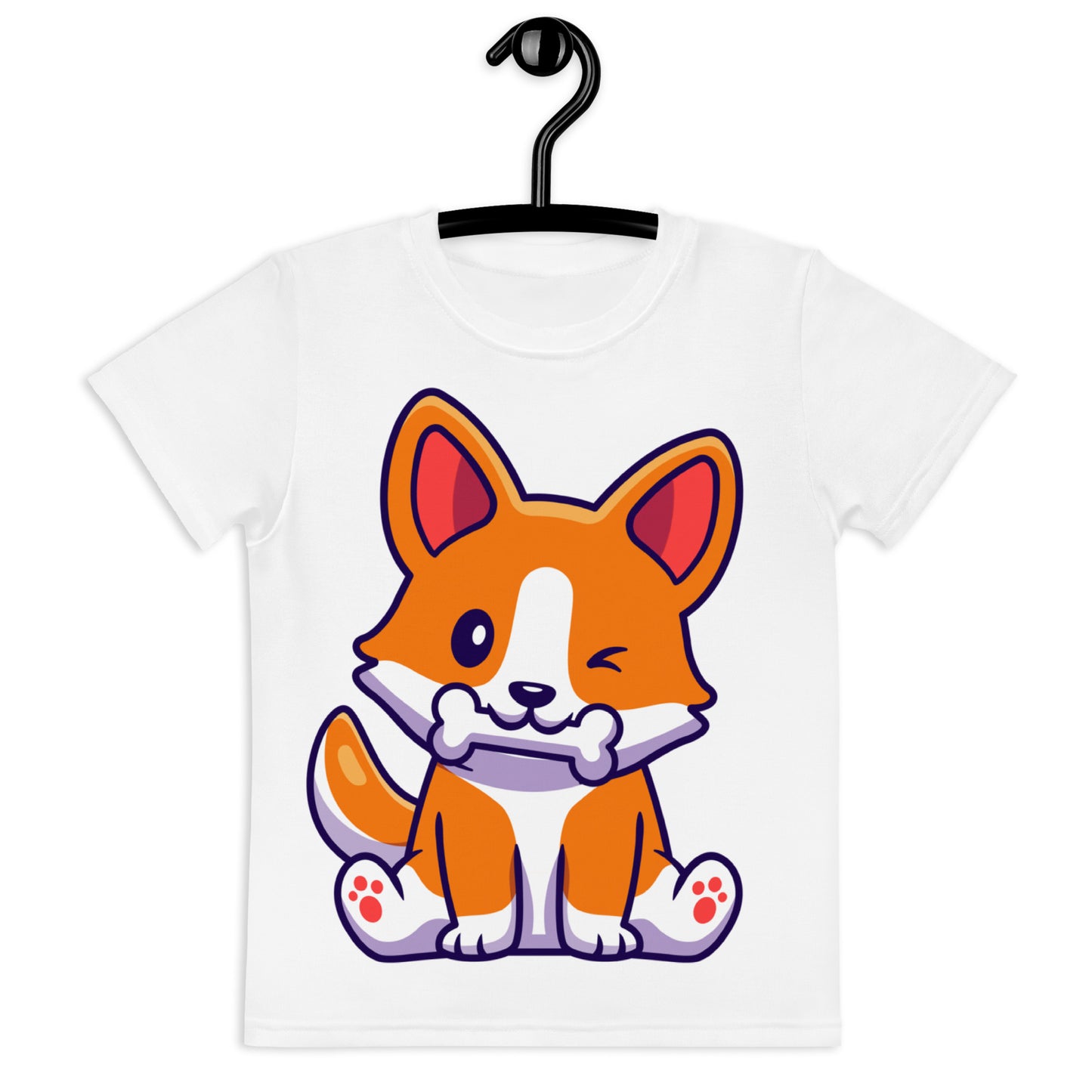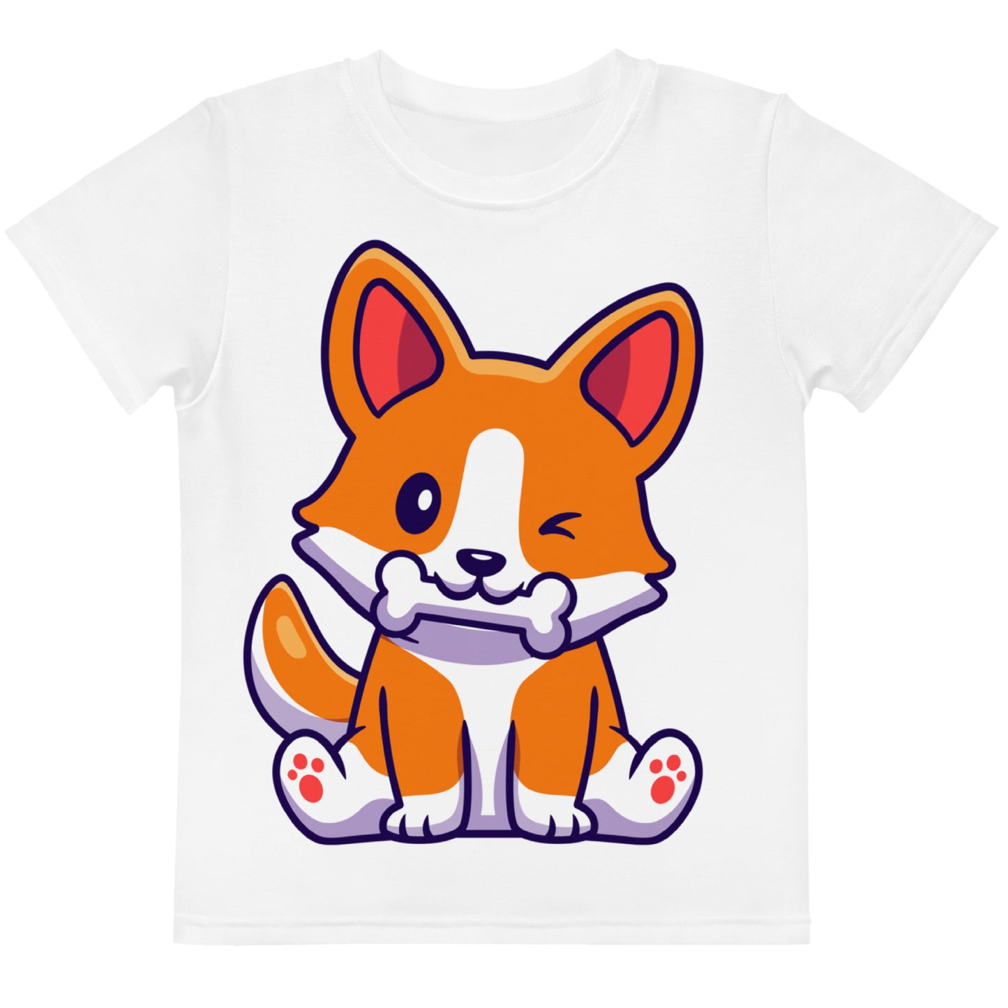 Cute Corgi Dog Eating Bone T-Shirt, No. 0182