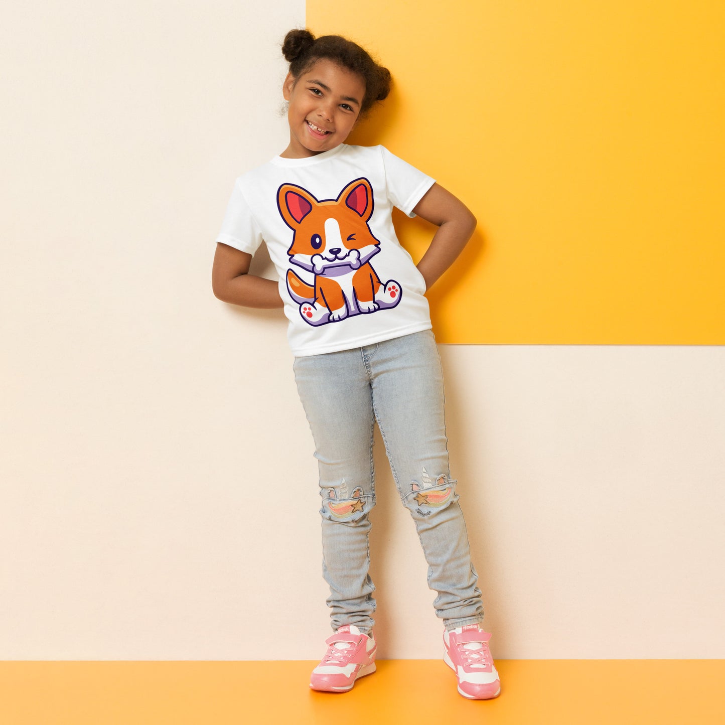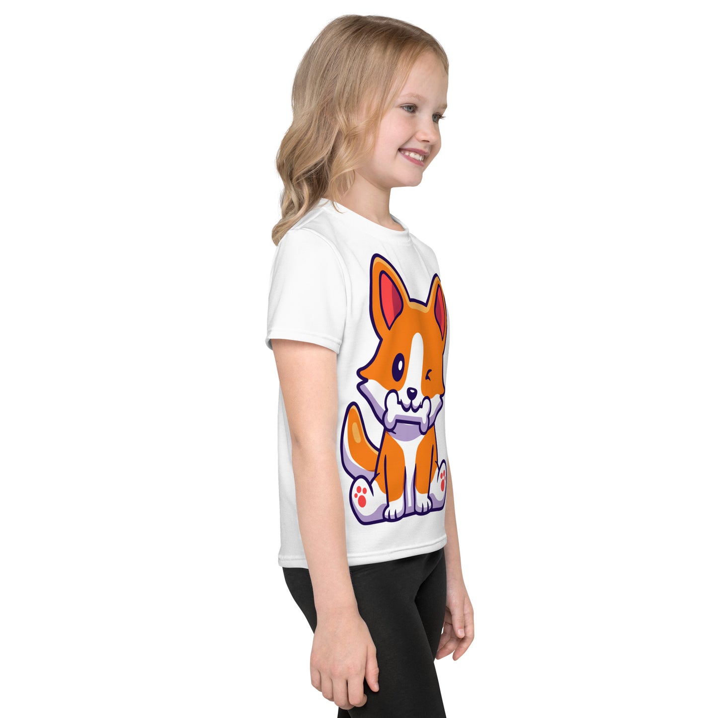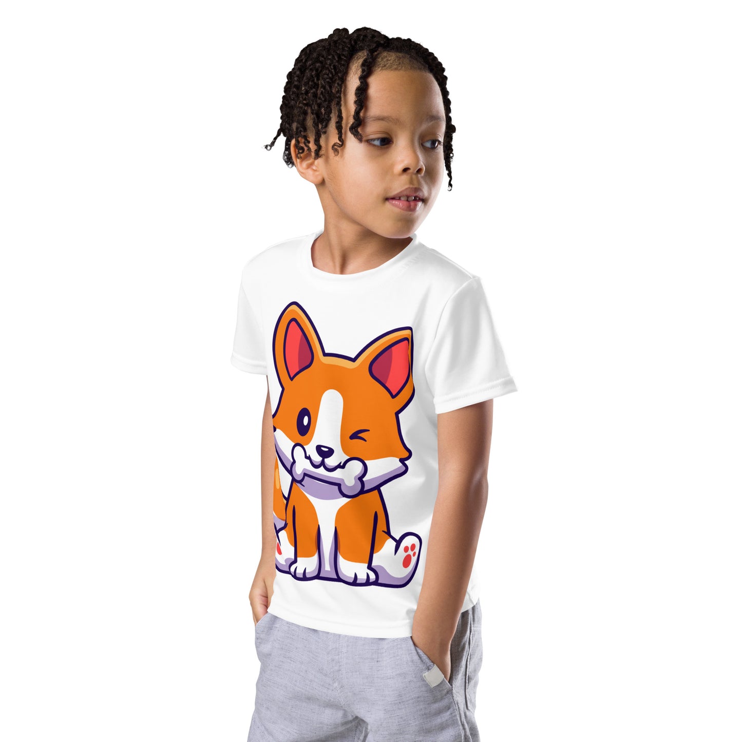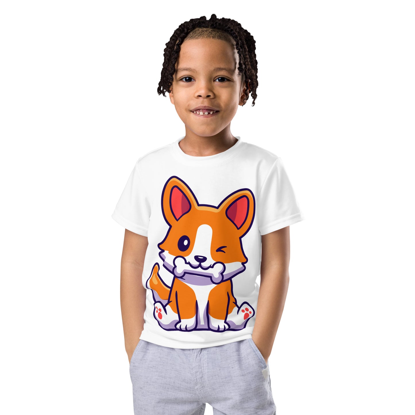 Cute Corgi Dog Eating Bone T-Shirt, No. 0182