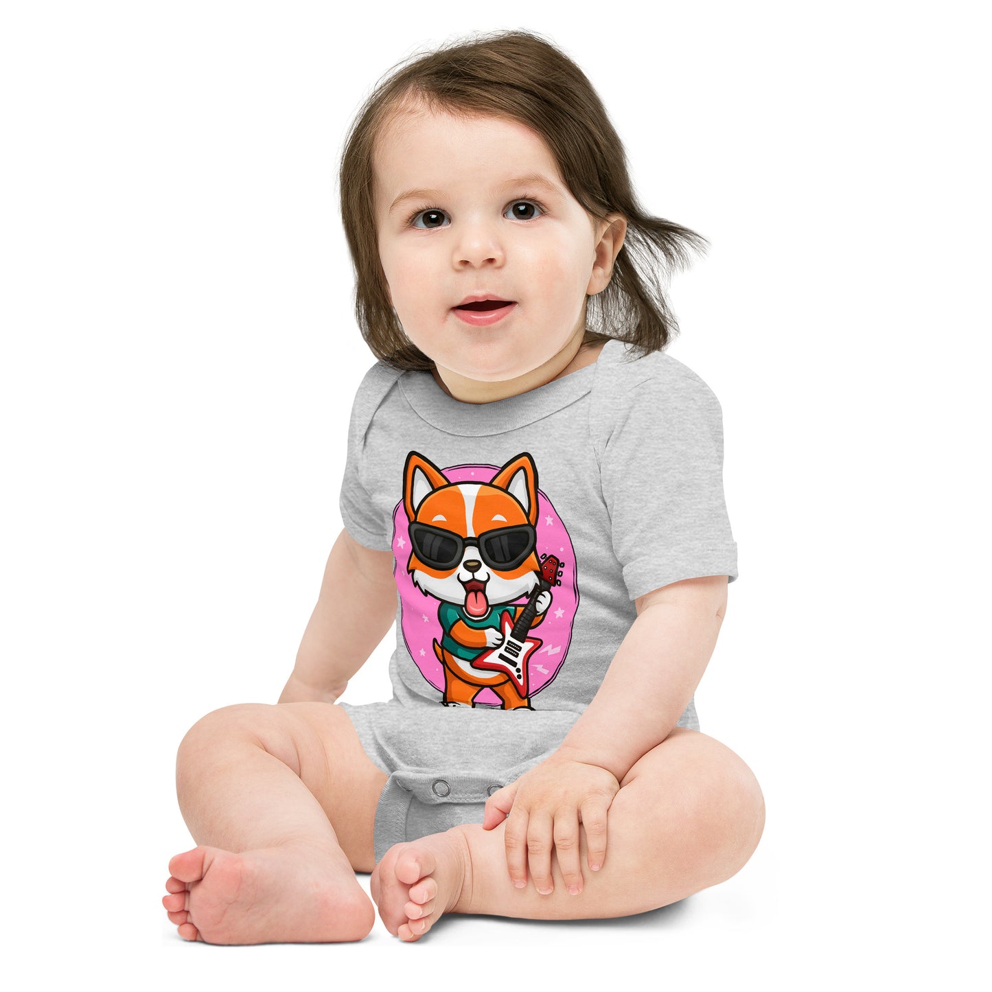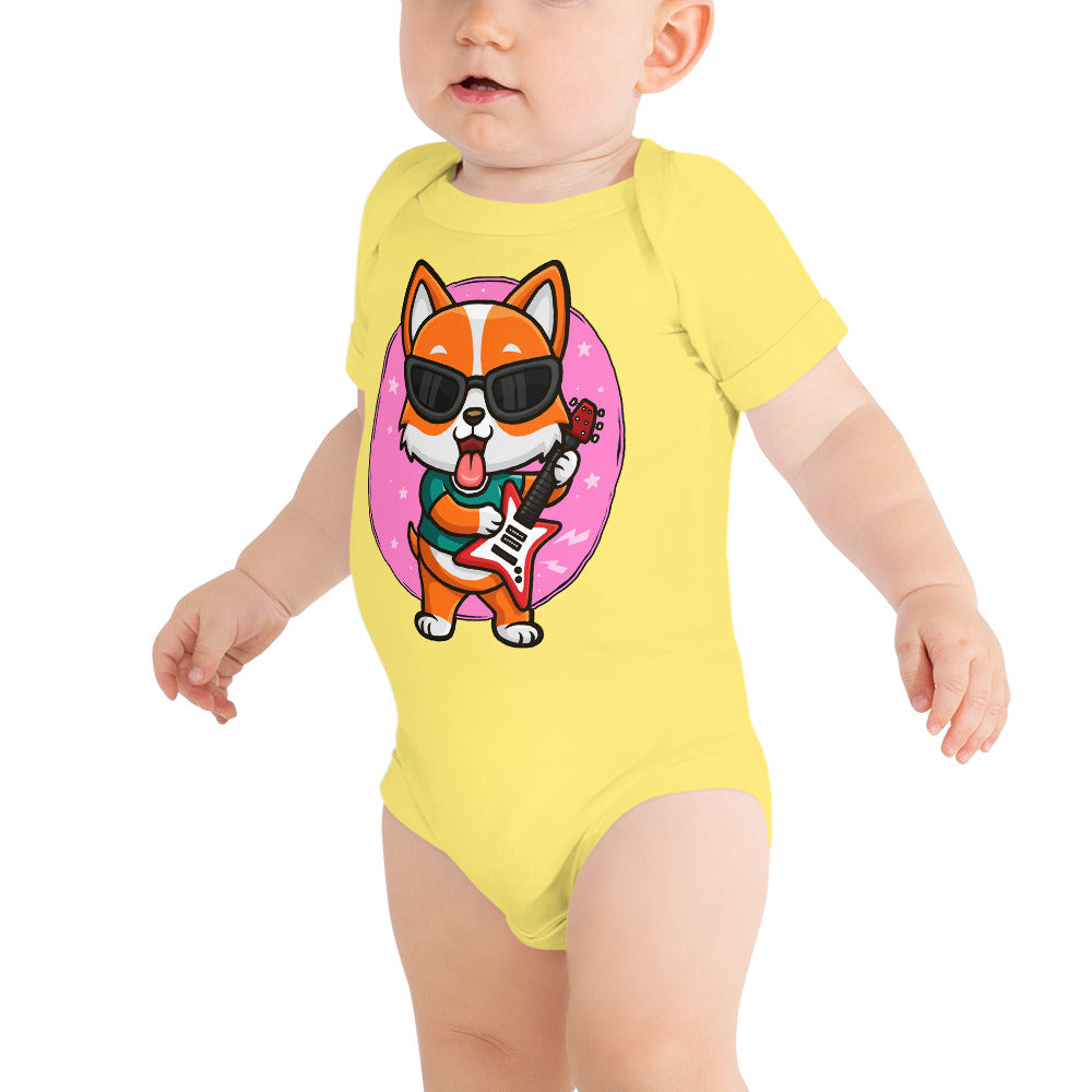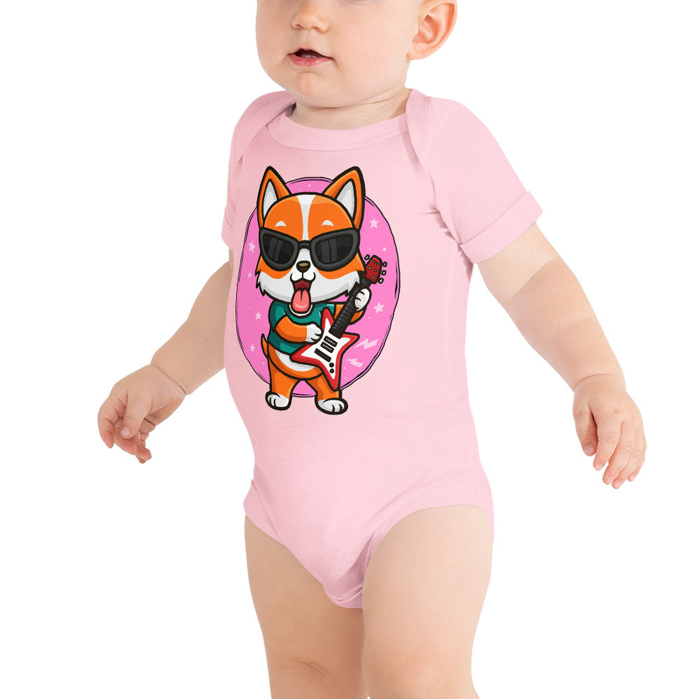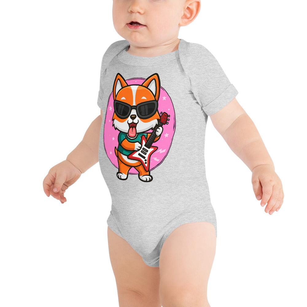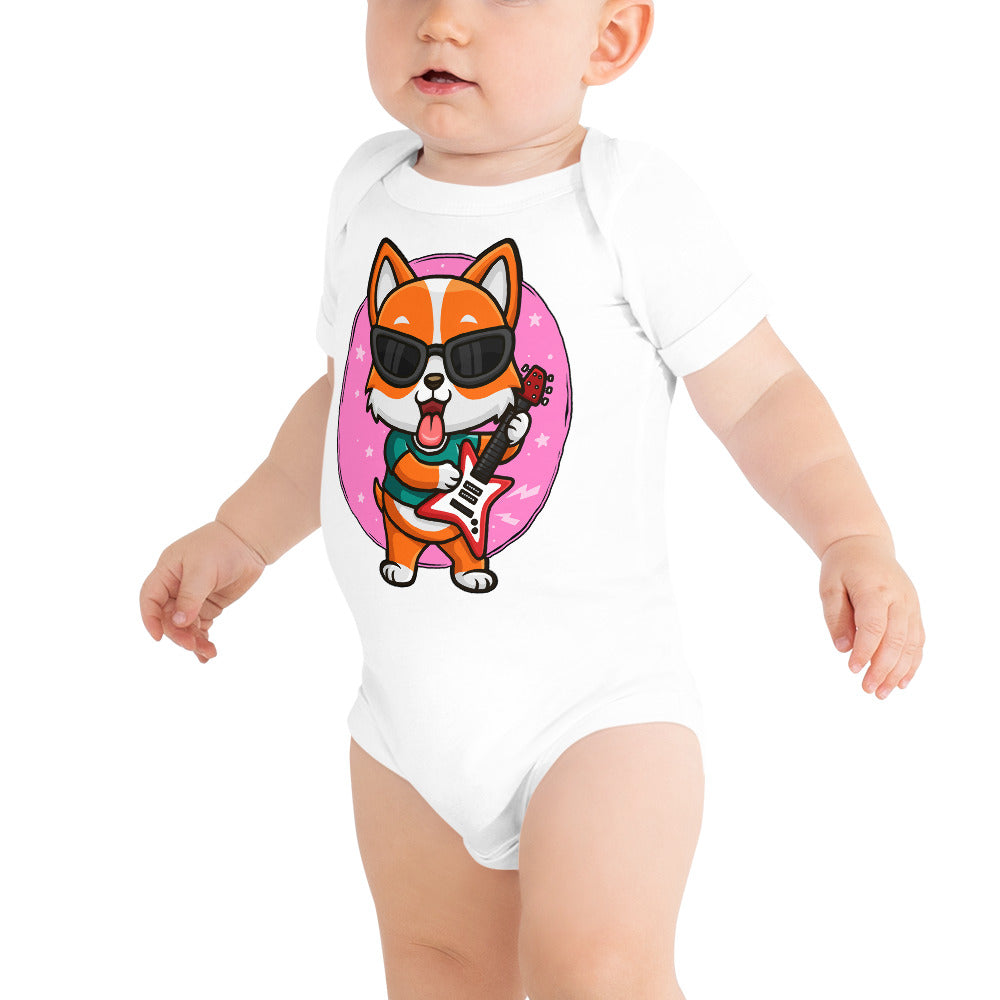 Cute Corgi Dog Playing Guitar Bodysuit, No. 0288