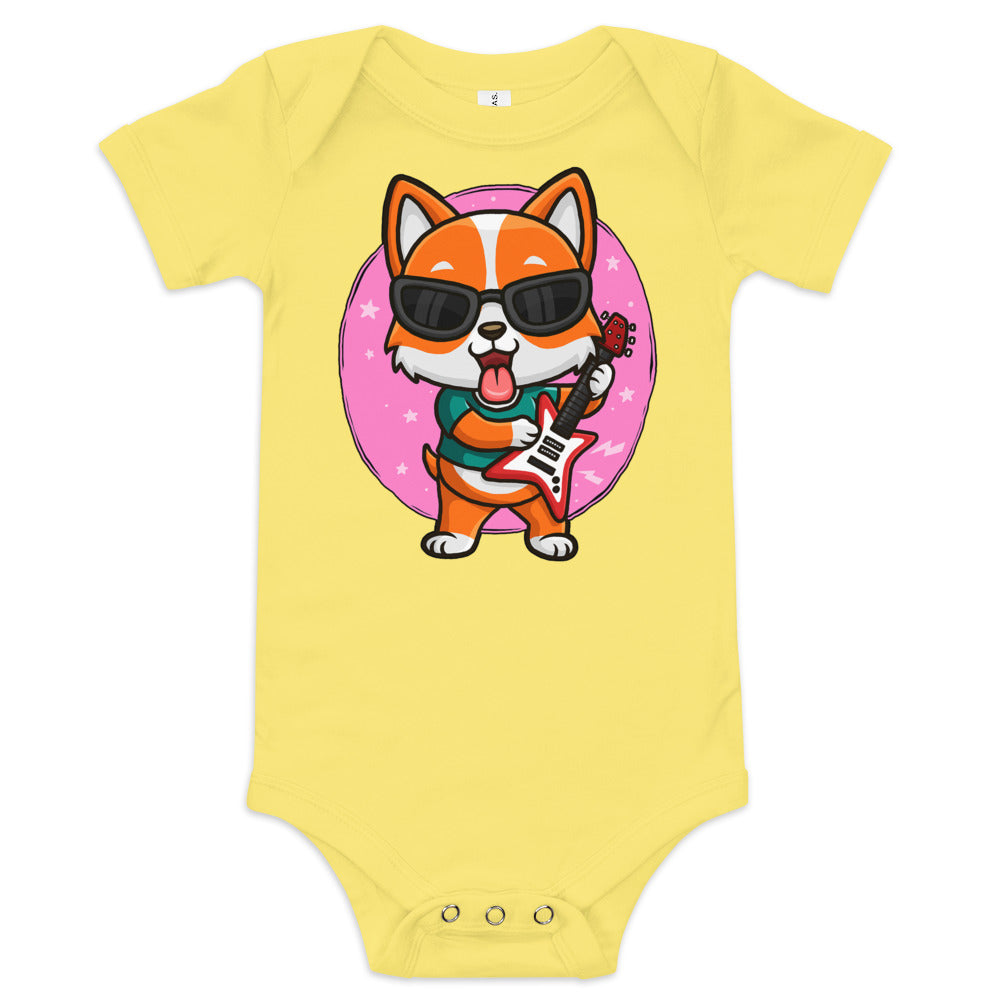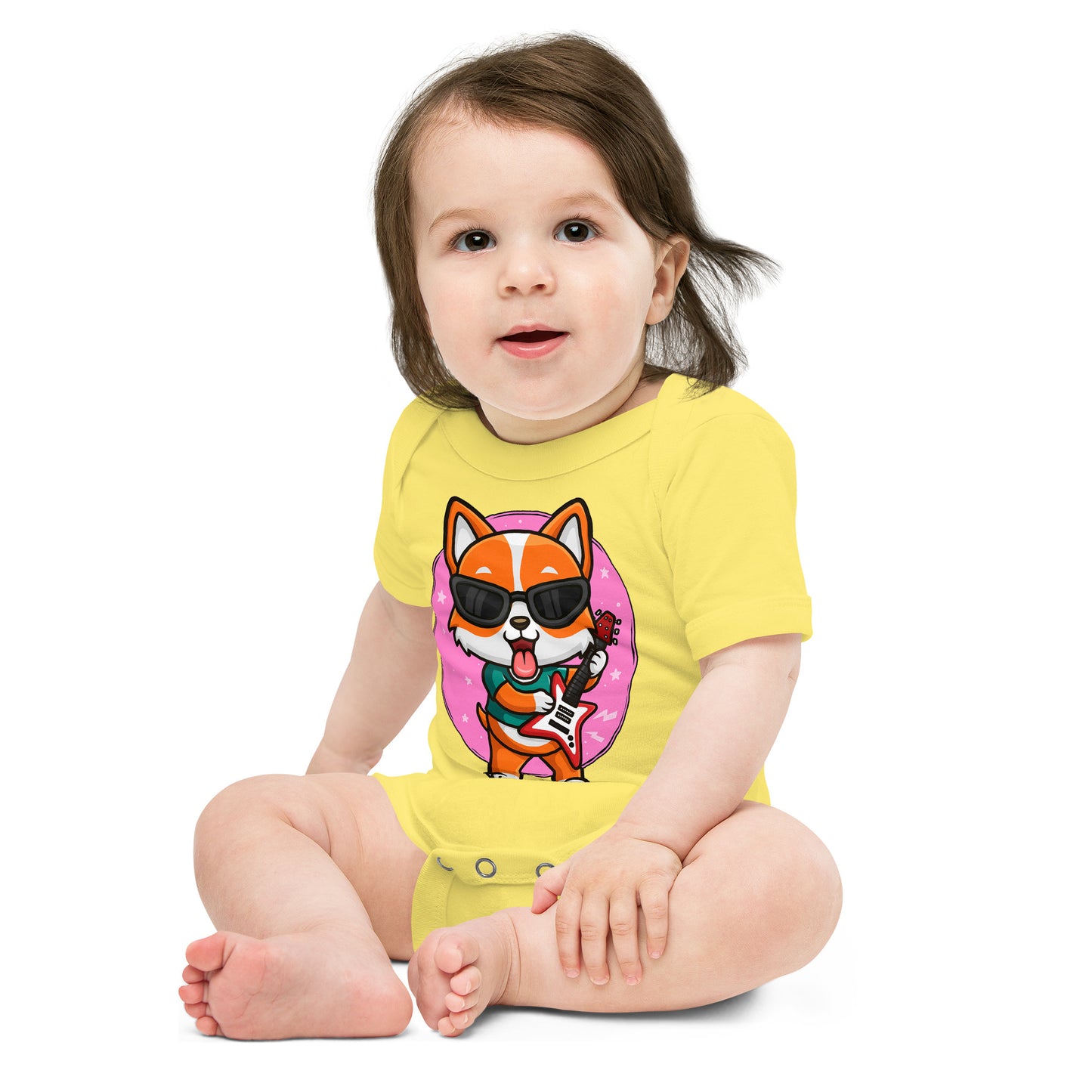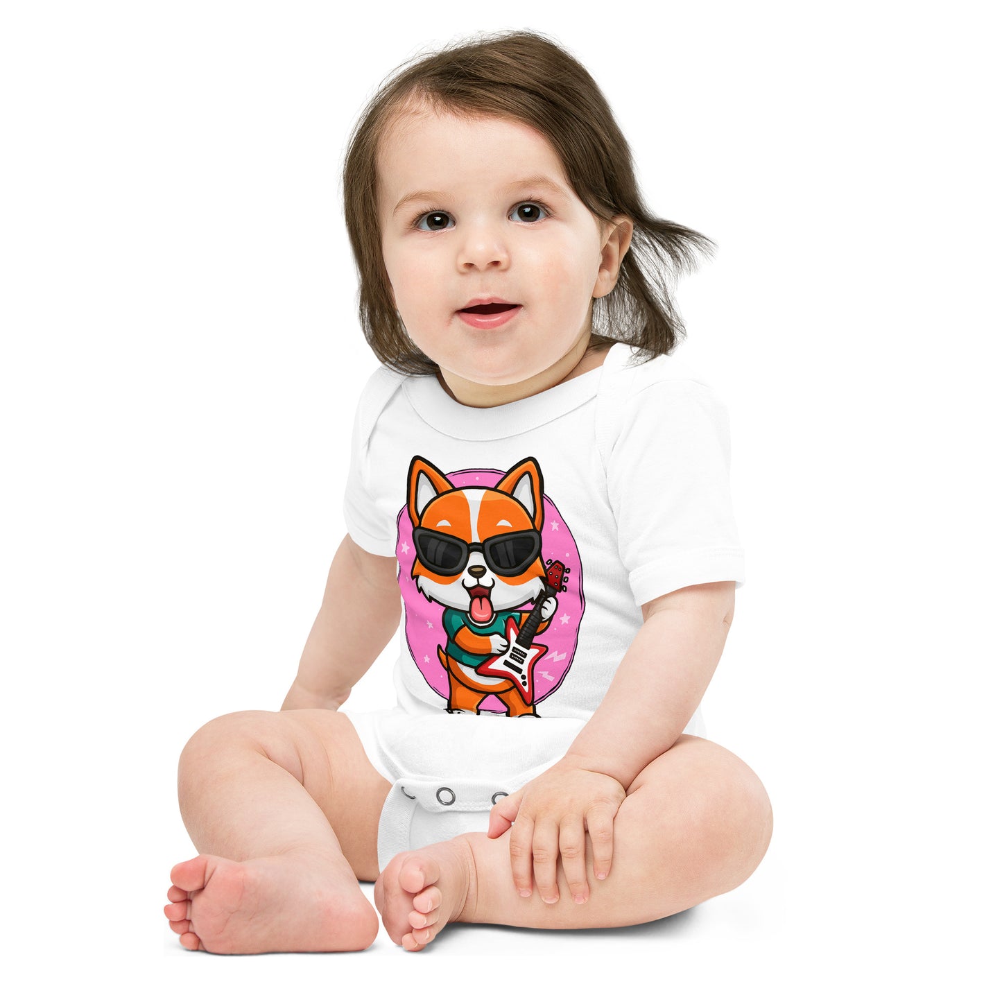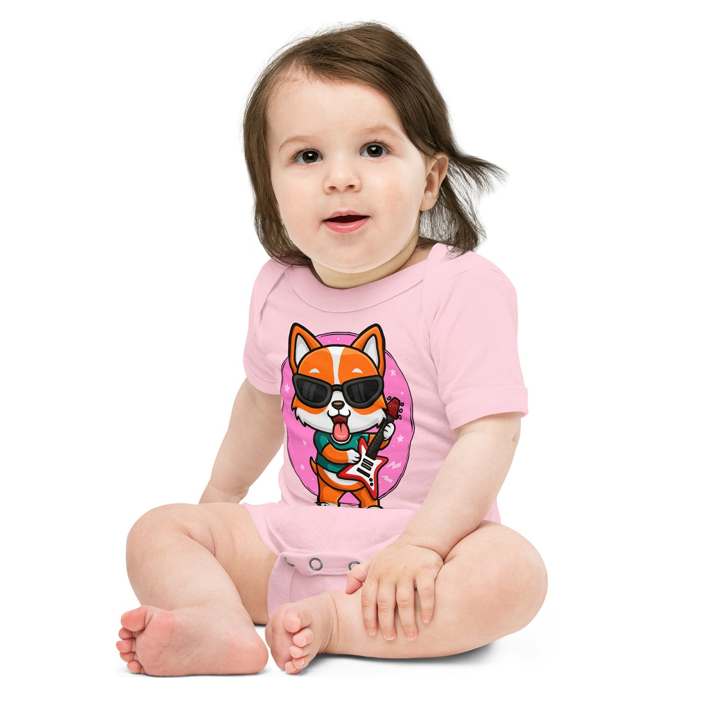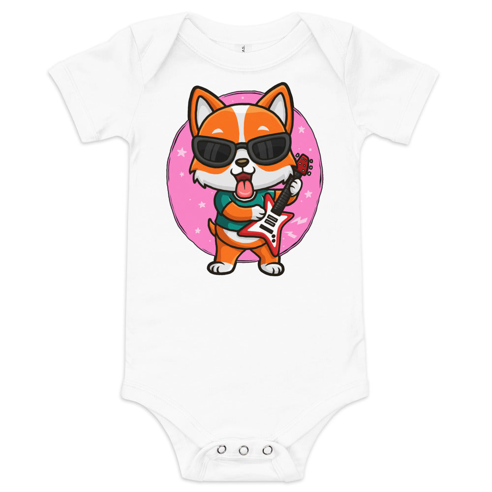 Cute Corgi Dog Playing Guitar Bodysuit, No. 0288
