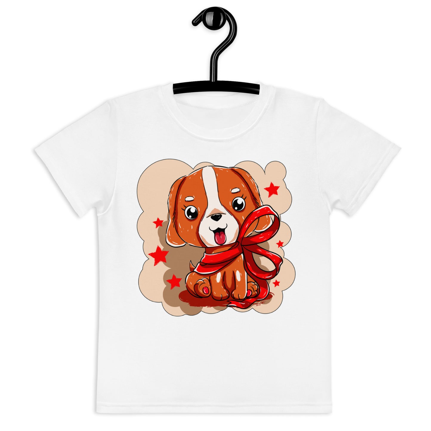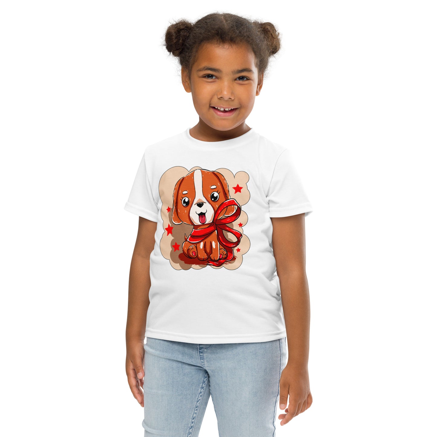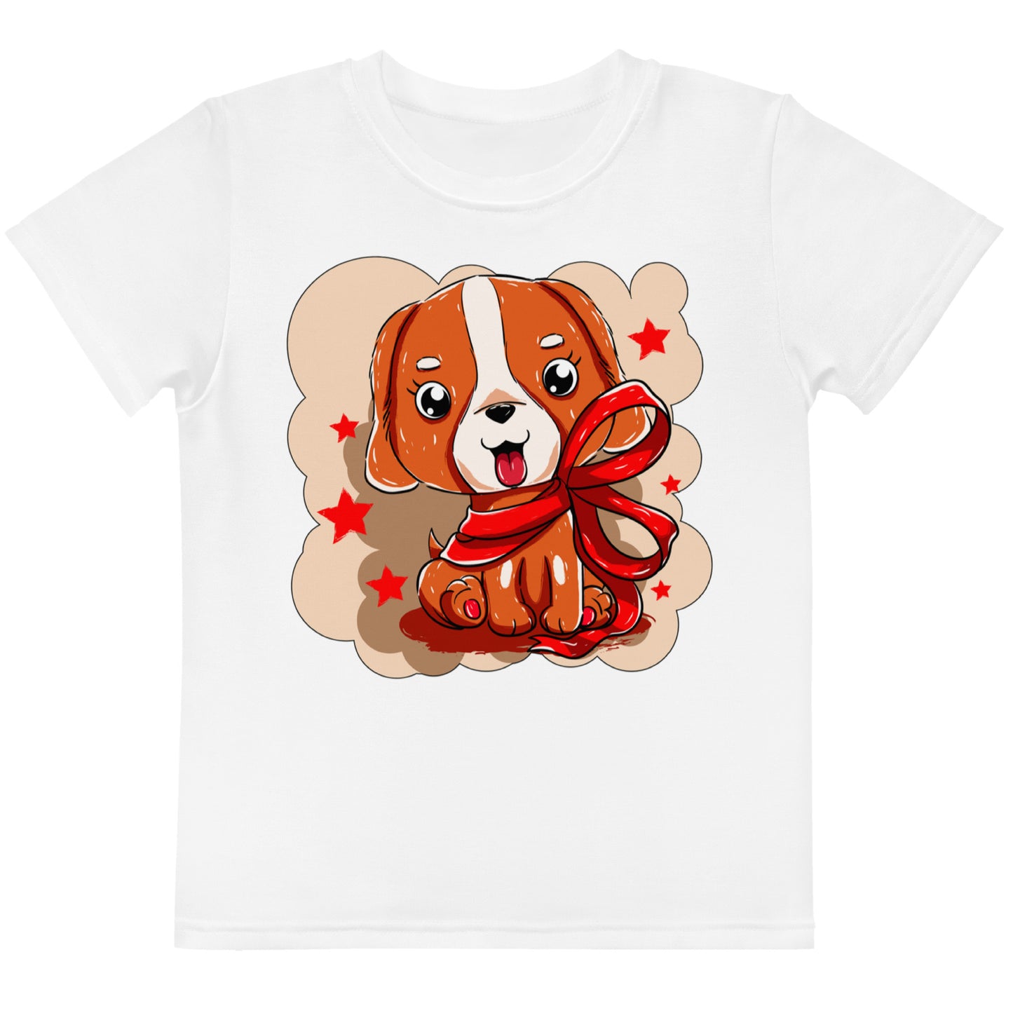 Cute Dog Puppy with Red Ribbon T-Shirt, No. 0299