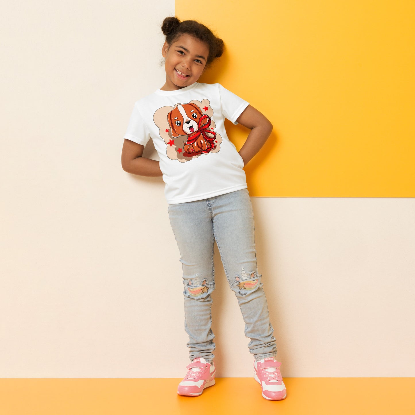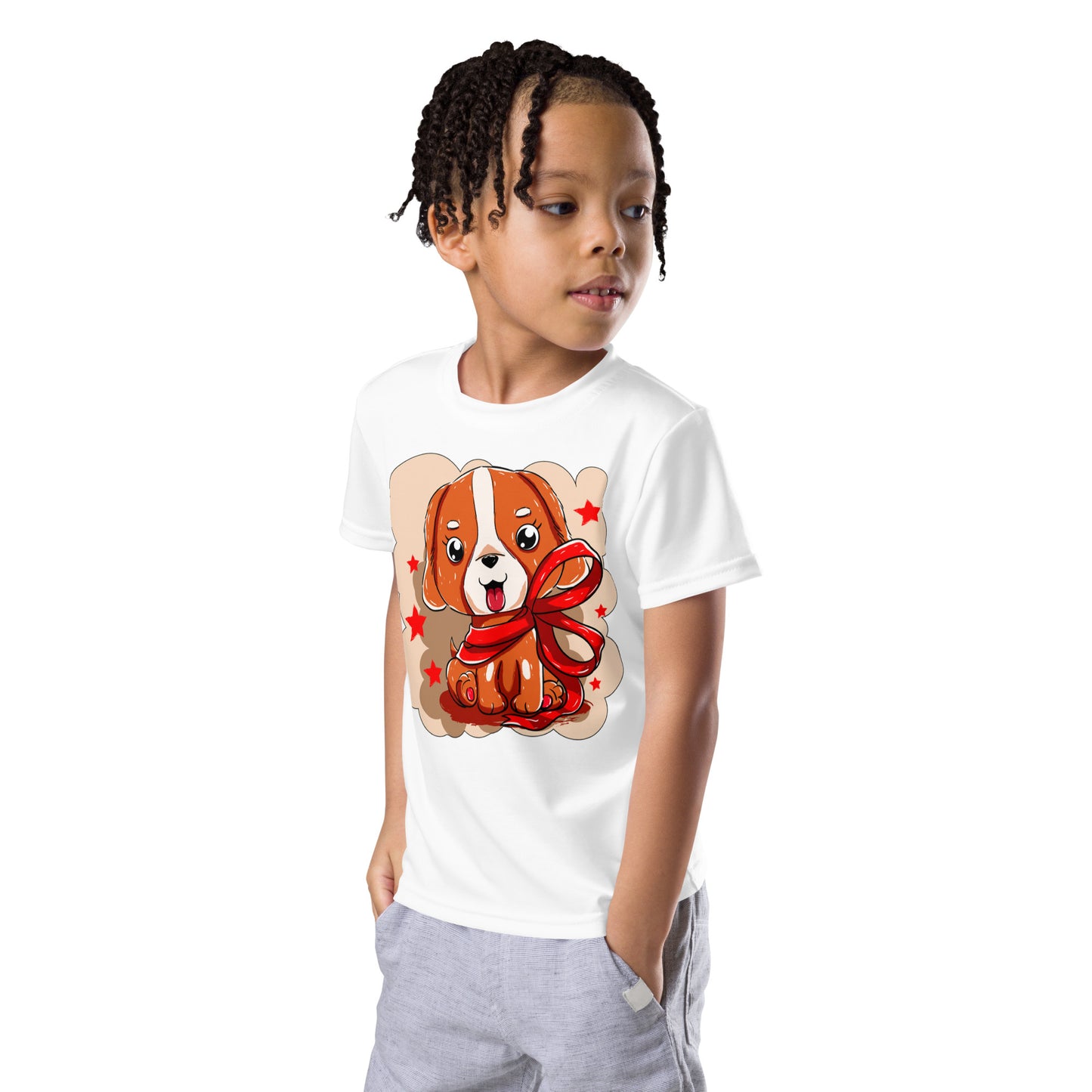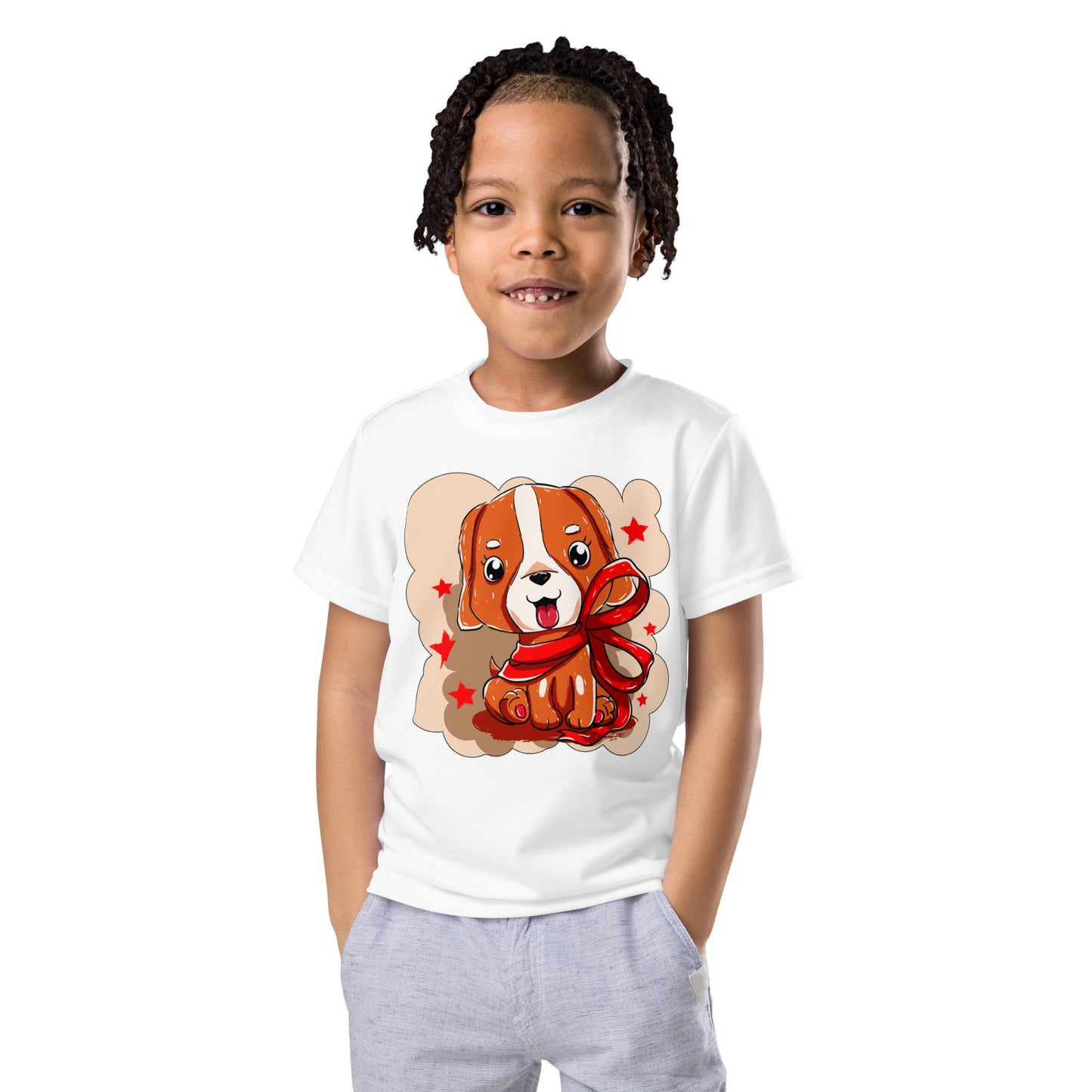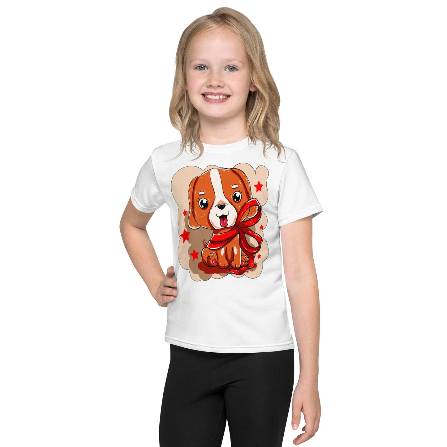 Cute Dog Puppy with Red Ribbon T-Shirt, No. 0299