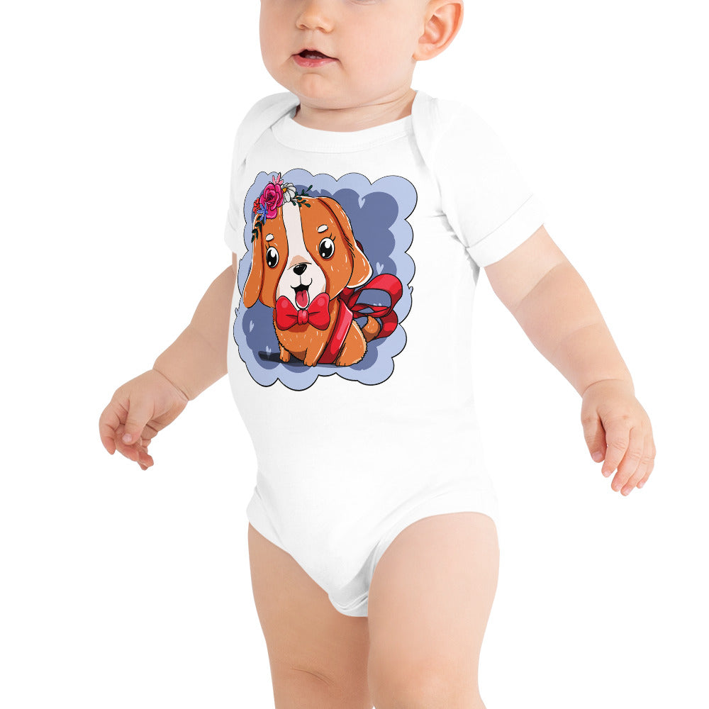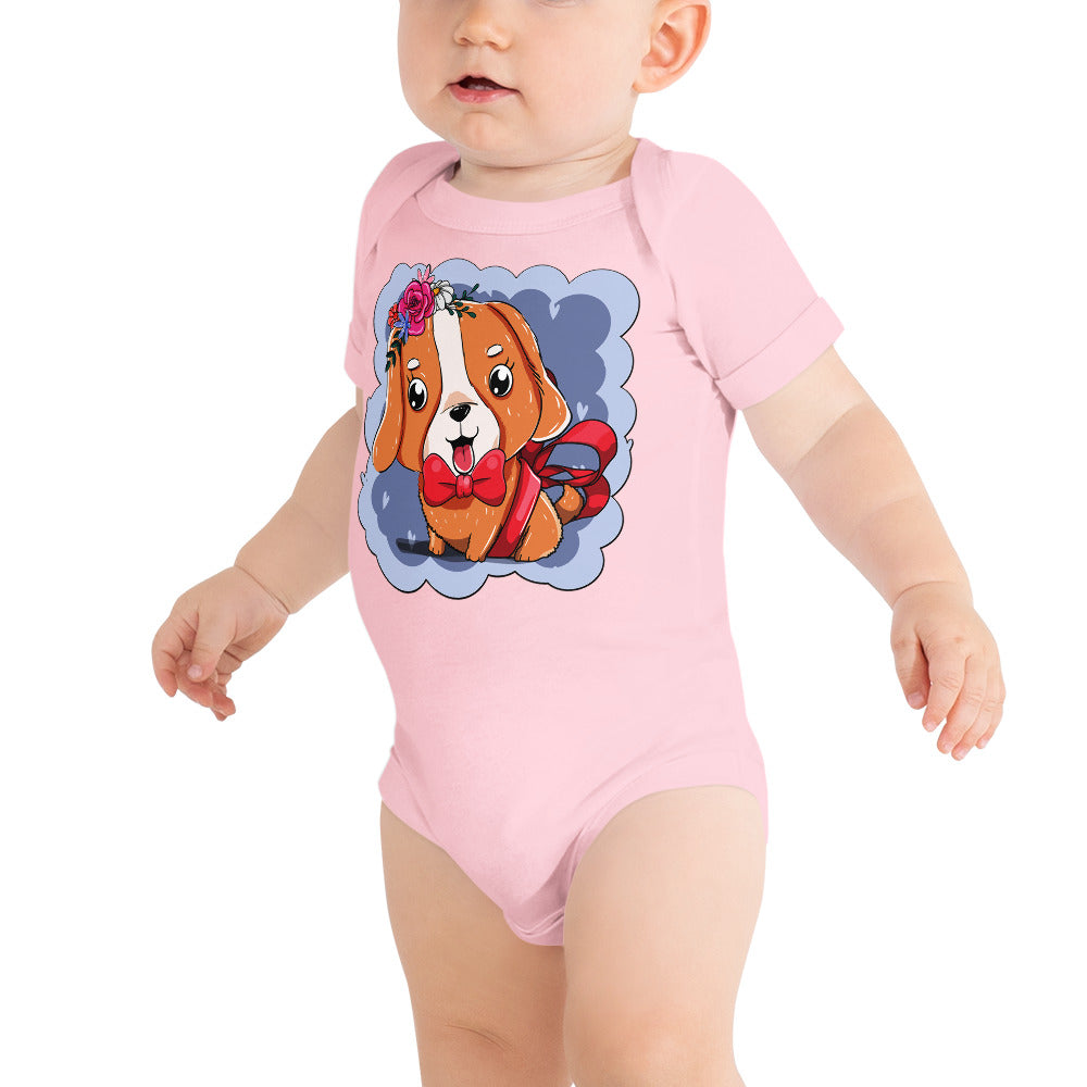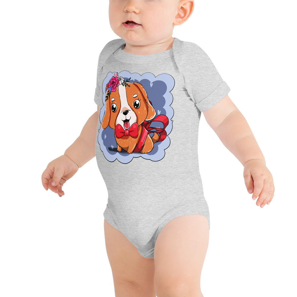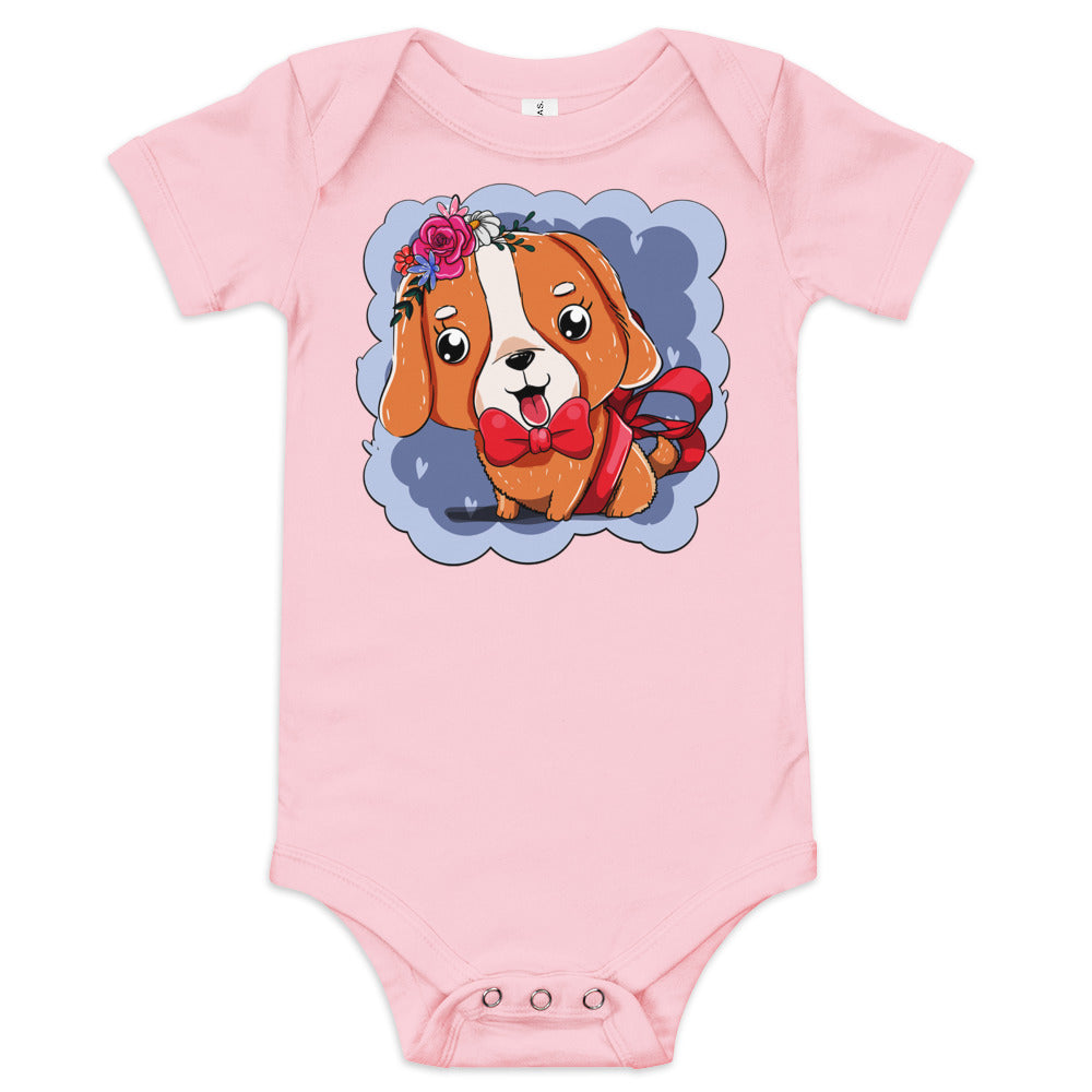 Cute Dog Puppy with Red Tie Bodysuit, No. 0300