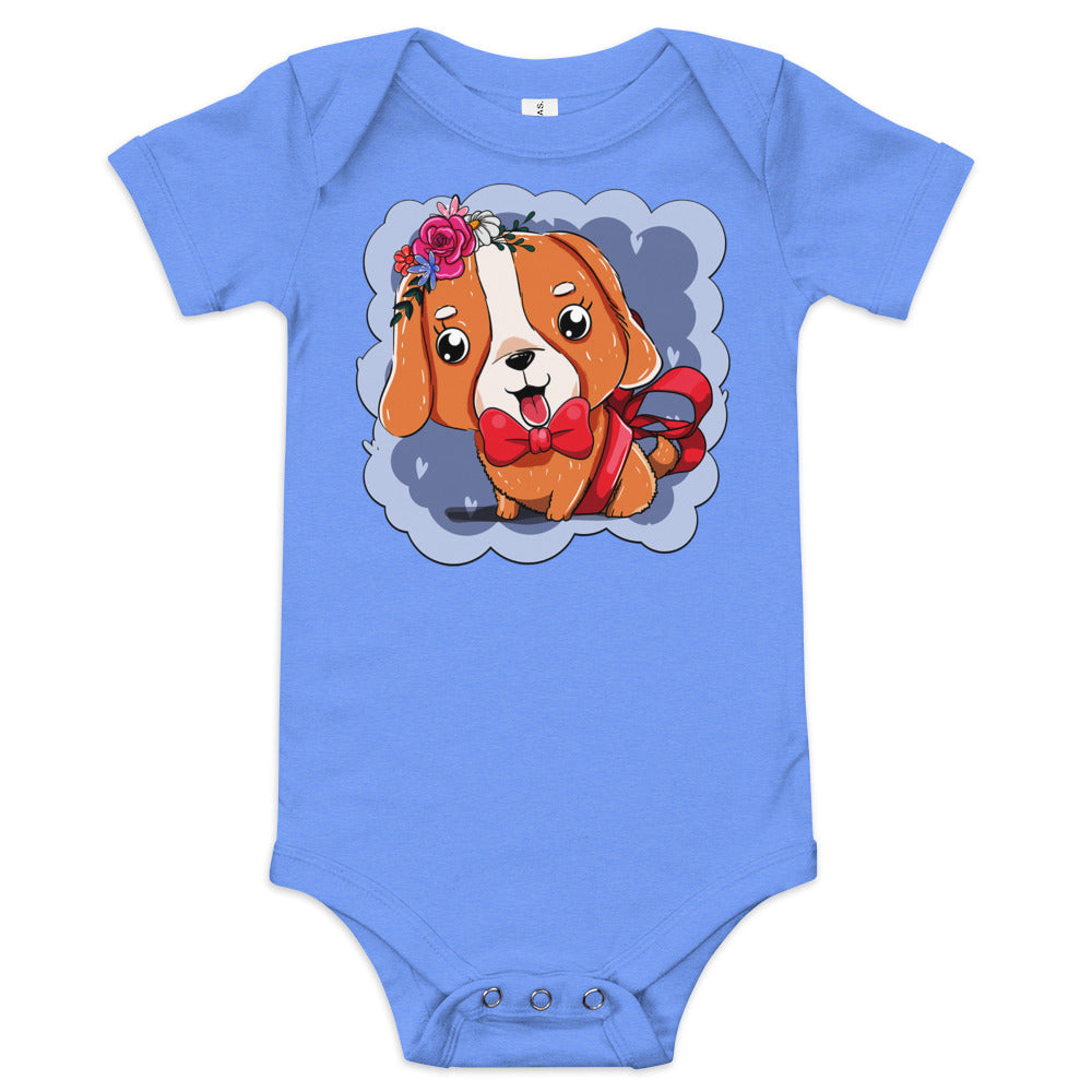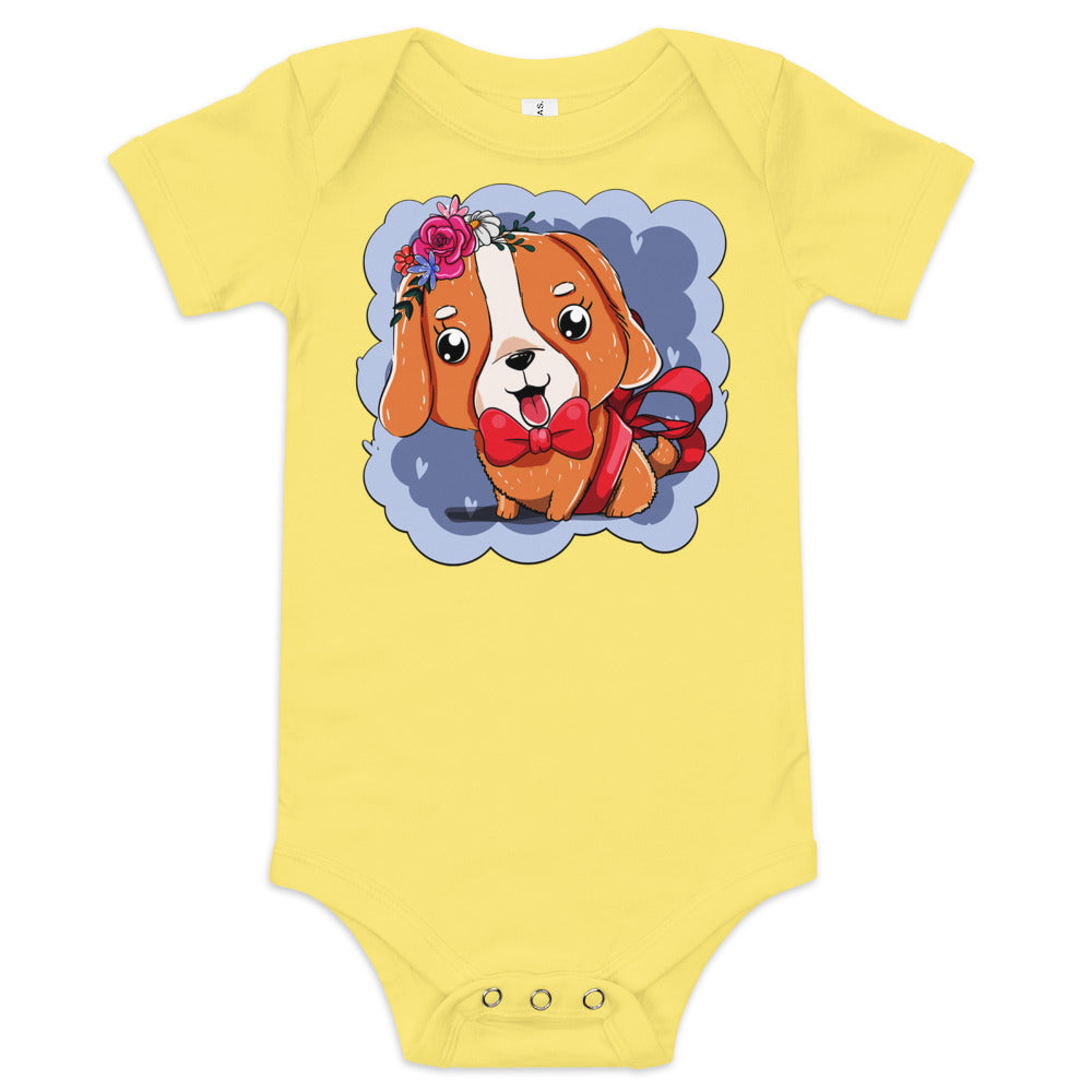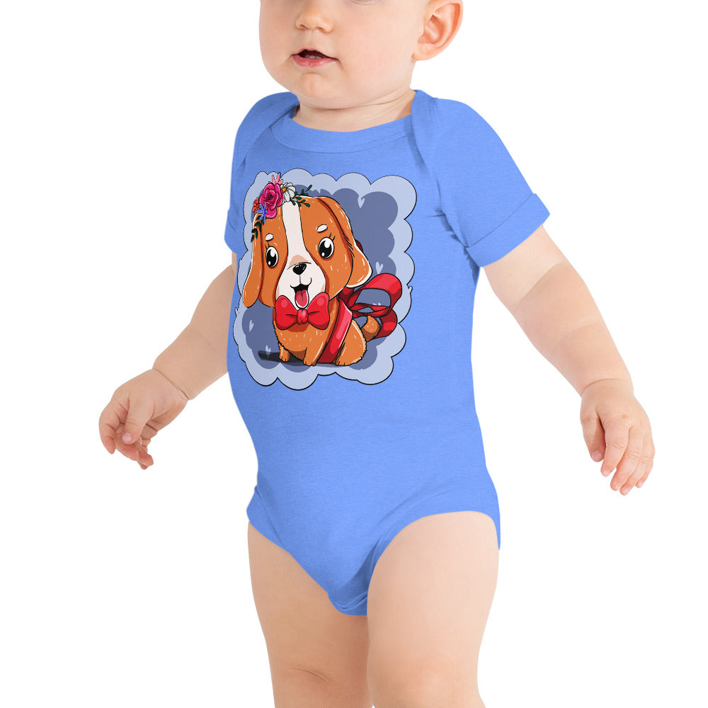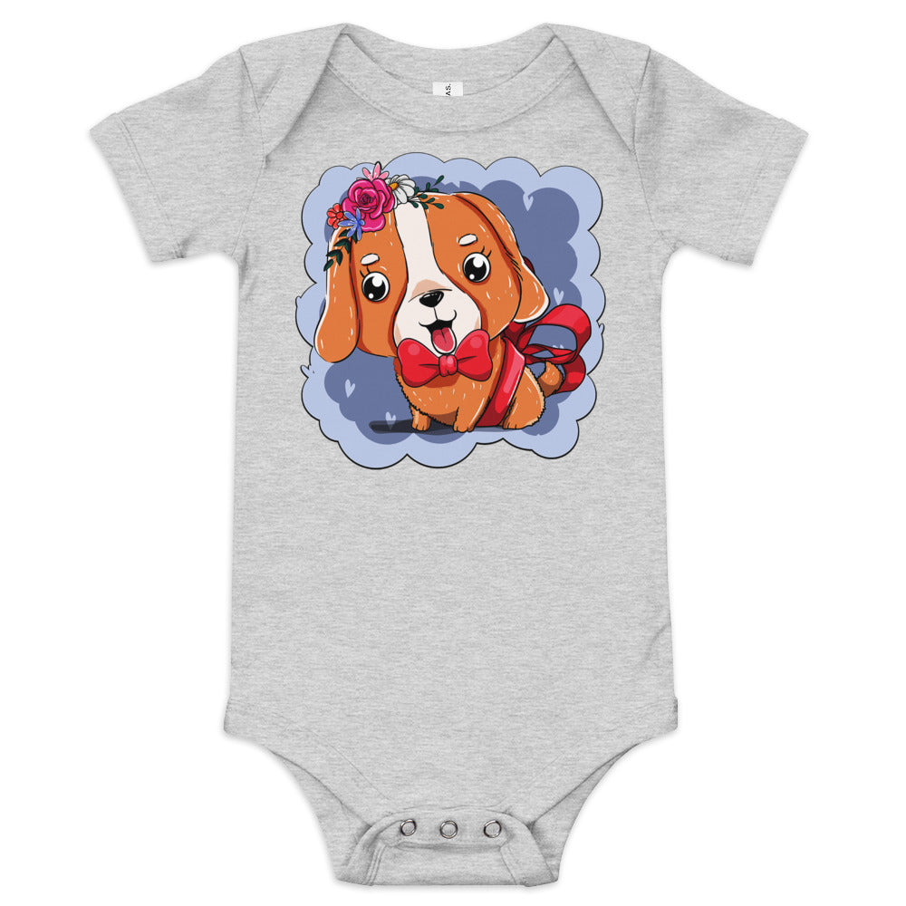 Cute Dog Puppy with Red Tie Bodysuit, No. 0300