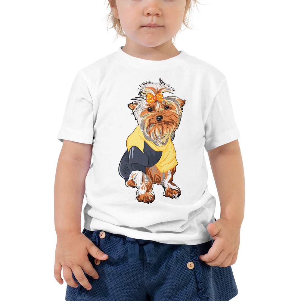 Cute dog wears colorful hair tie, T-shirts, No. 193