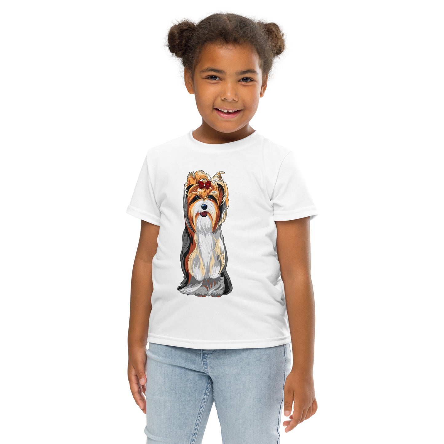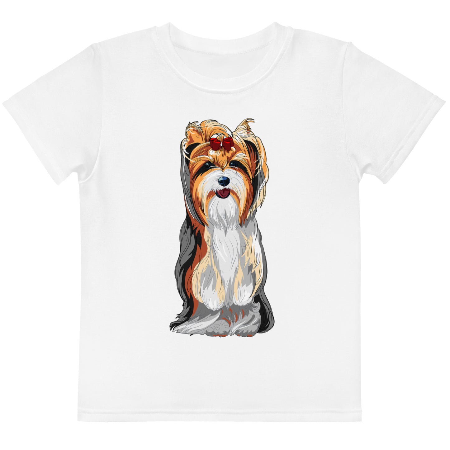 Cute Dog Wears Red Hair Tie T-Shirt, No. 0594