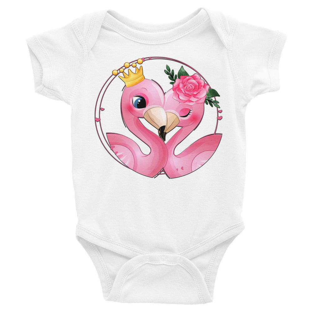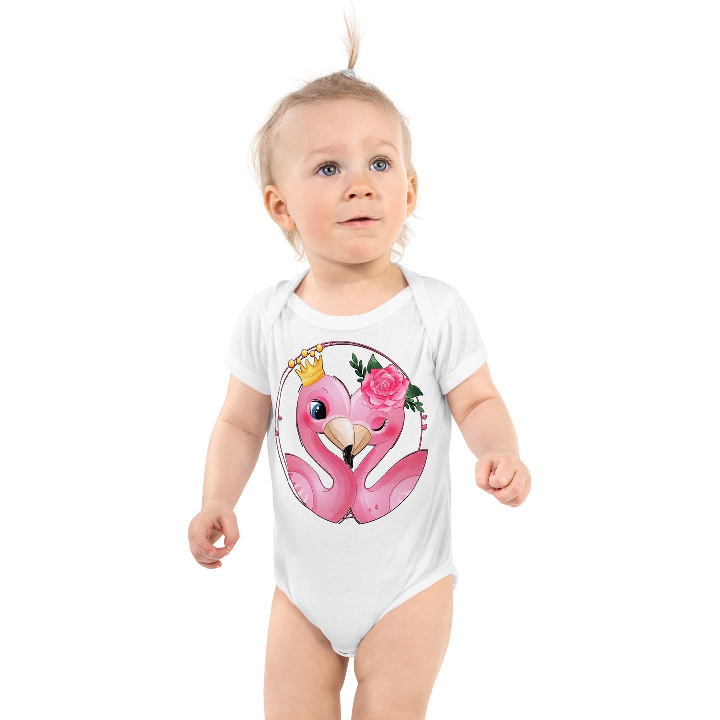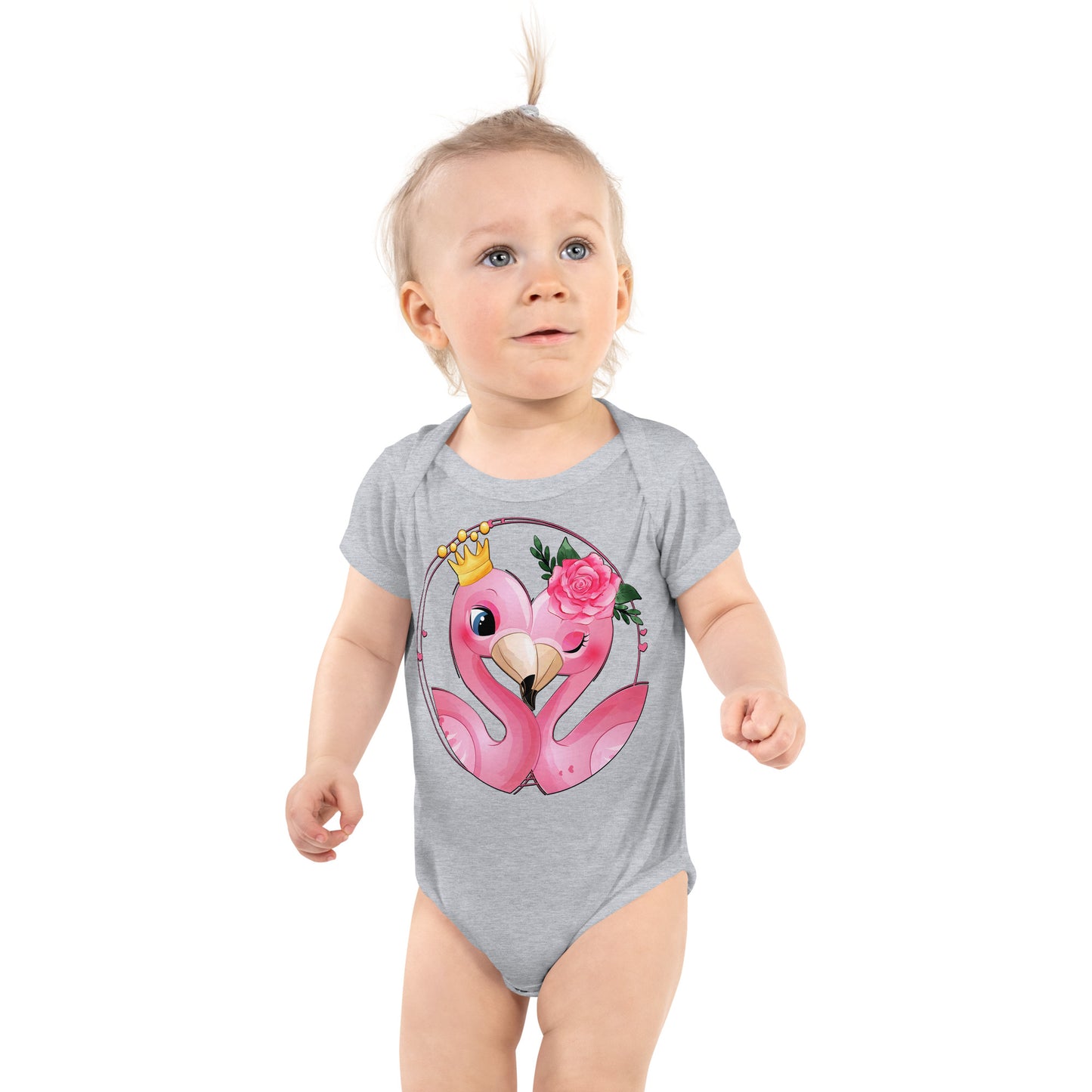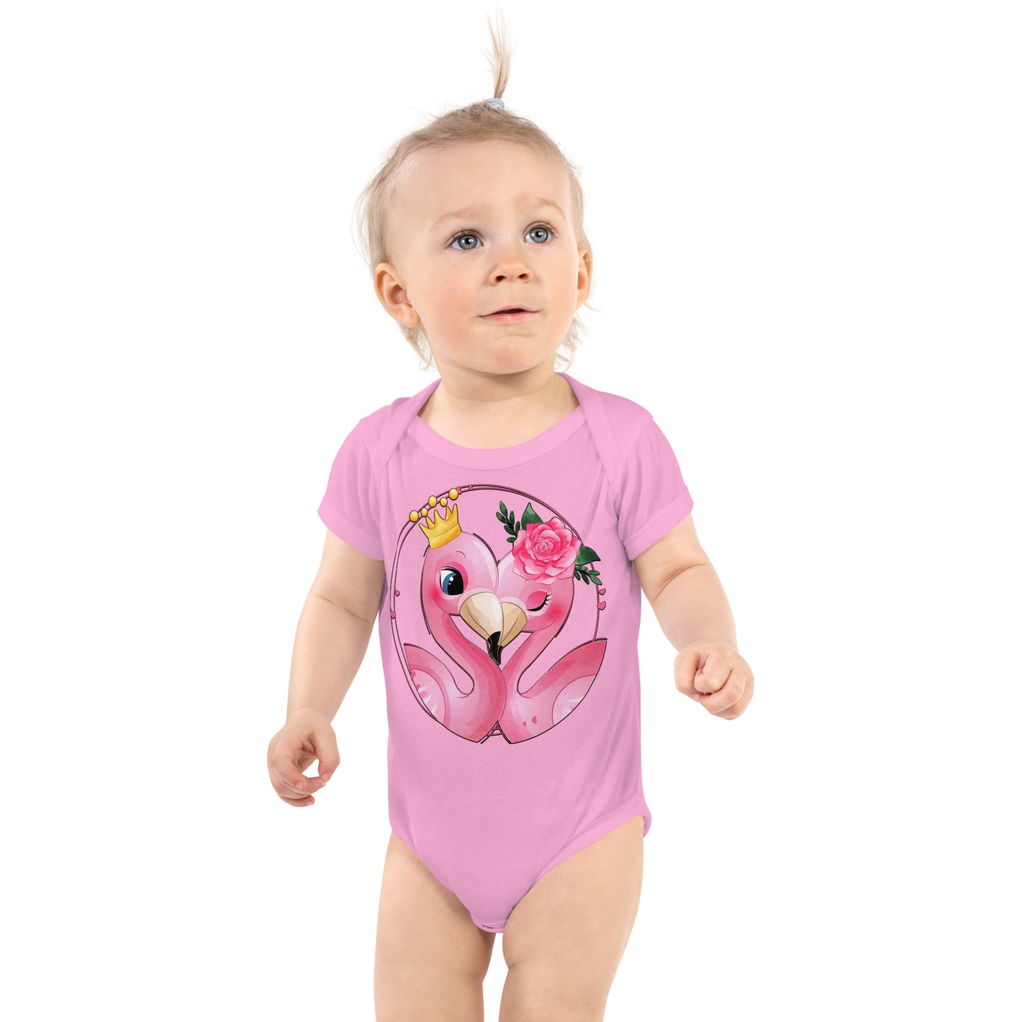 Cute Flamingos with Roses Bodysuit, No. 0077