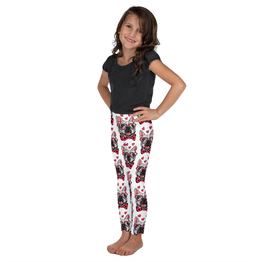 Cute French Bulldog Dog with Funny Heart Glasses, Leggings, No. 0198