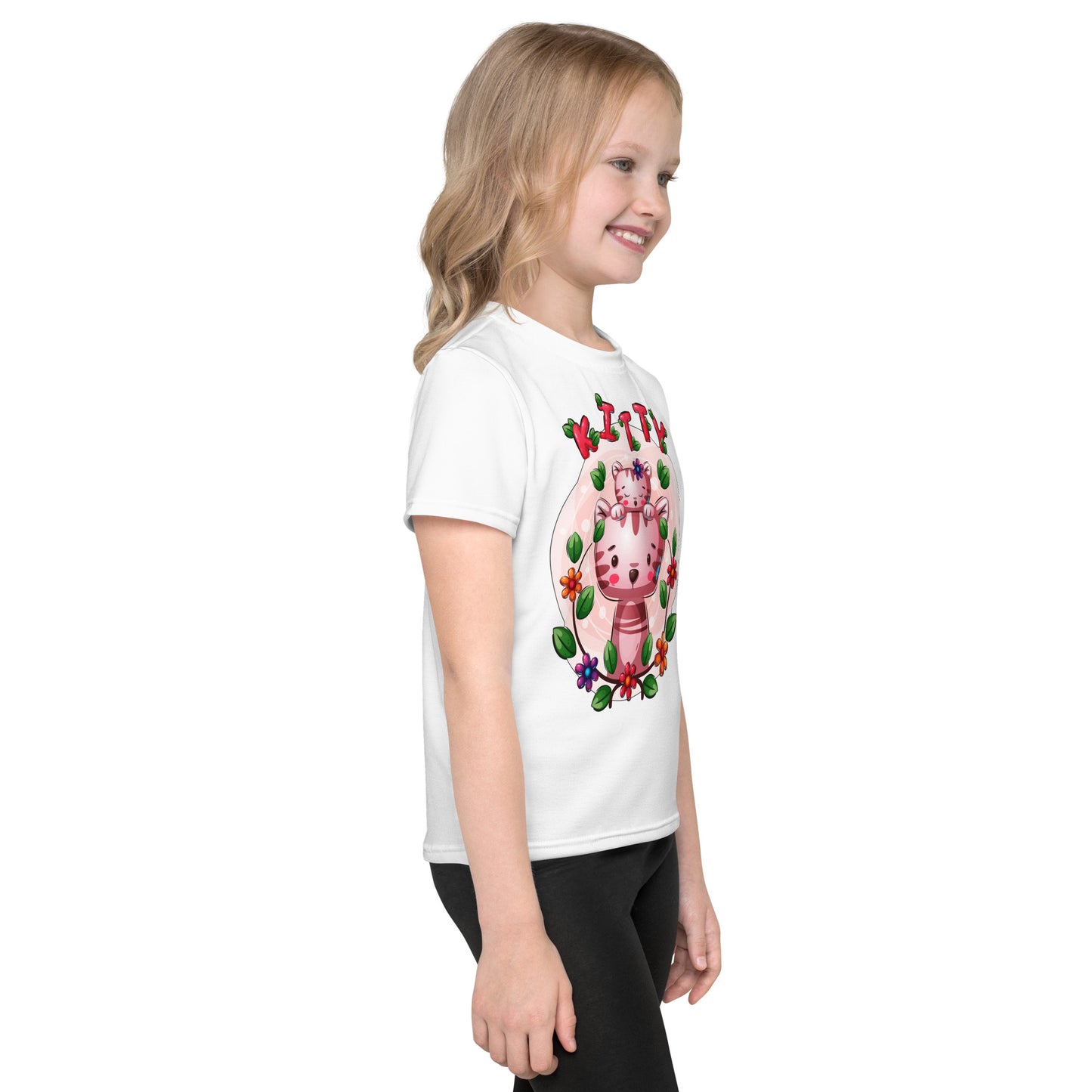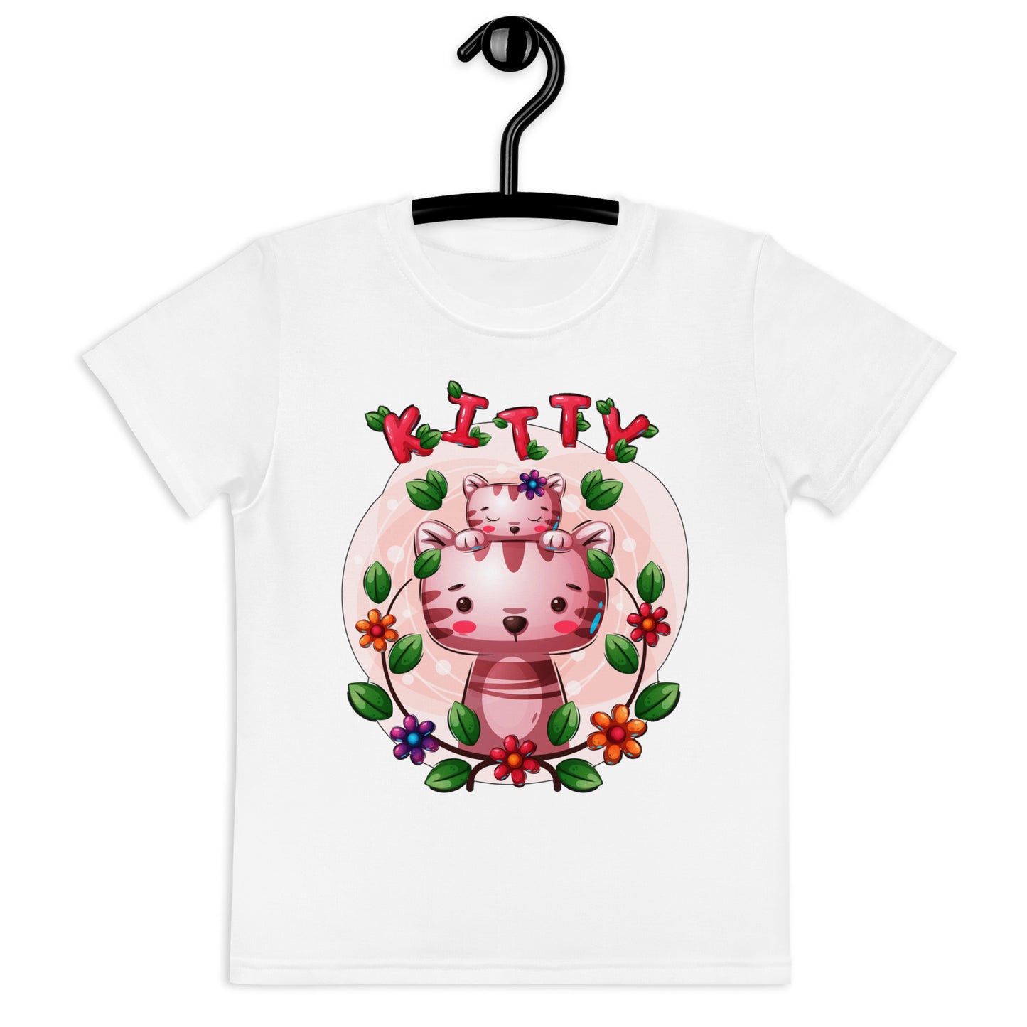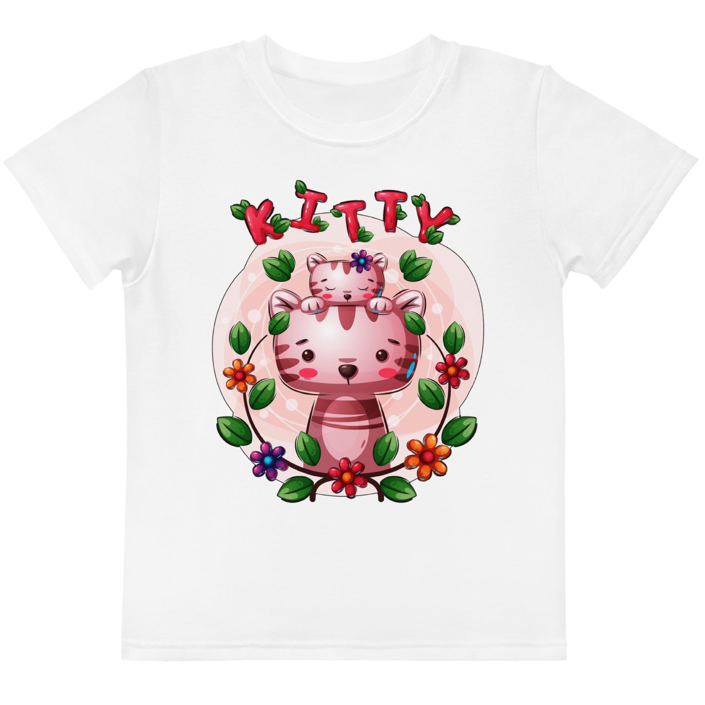 Cute Kitten Cats Between Flowers T-Shirt, No. 0306