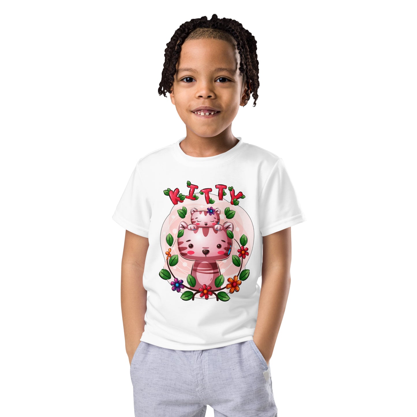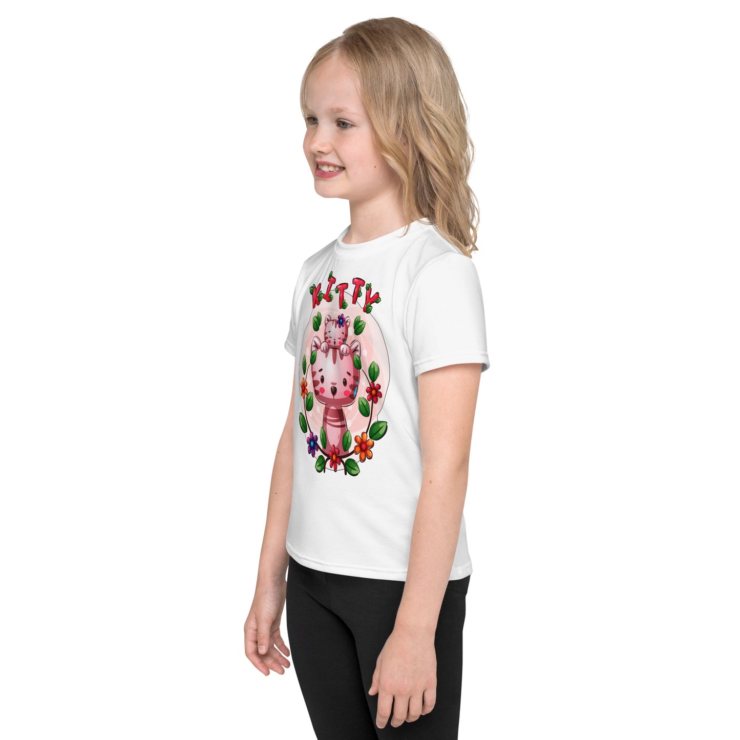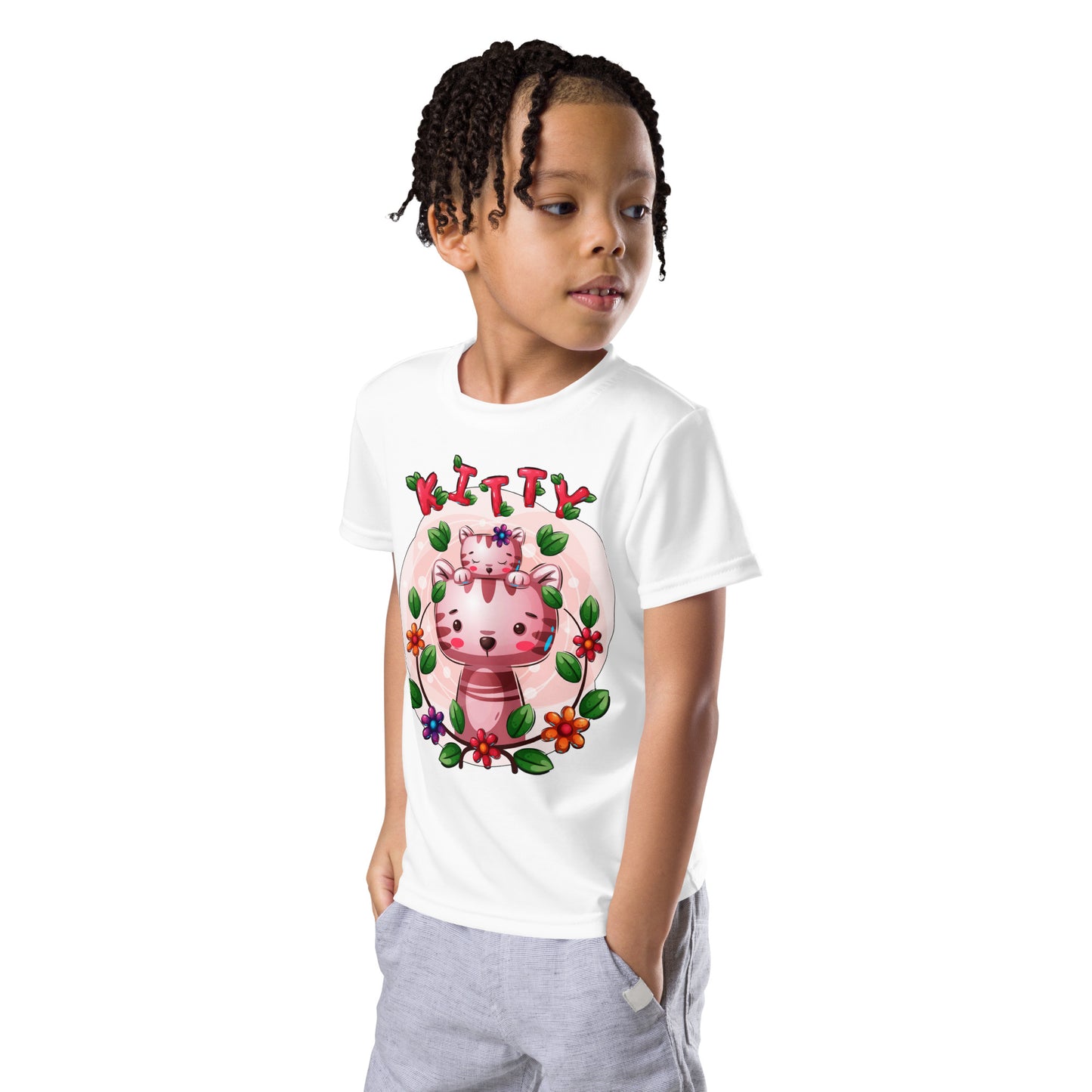 Cute Kitten Cats Between Flowers T-Shirt, No. 0306