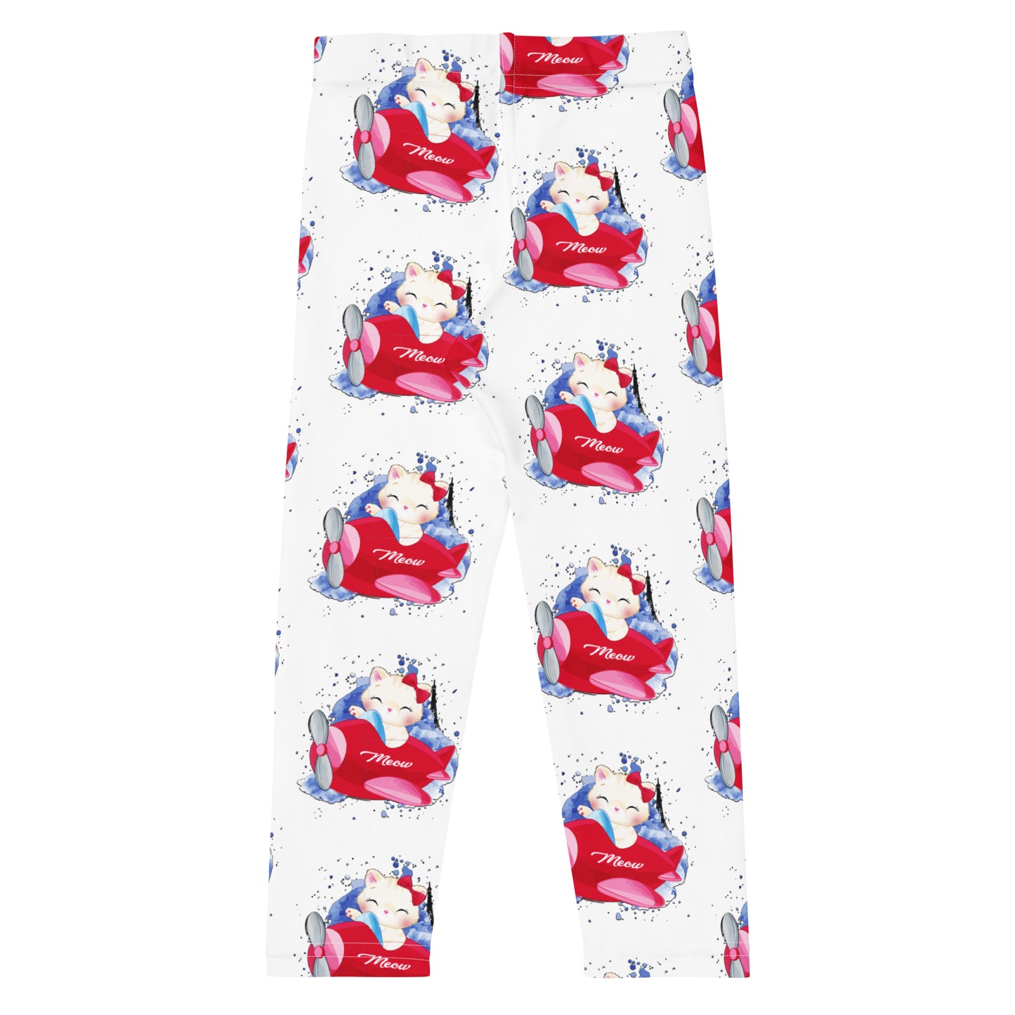 Cute Kitty Cat Flying with Aeroplan Leggings, No. 0311