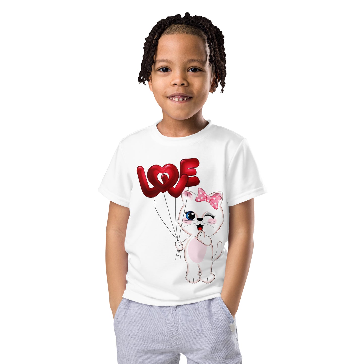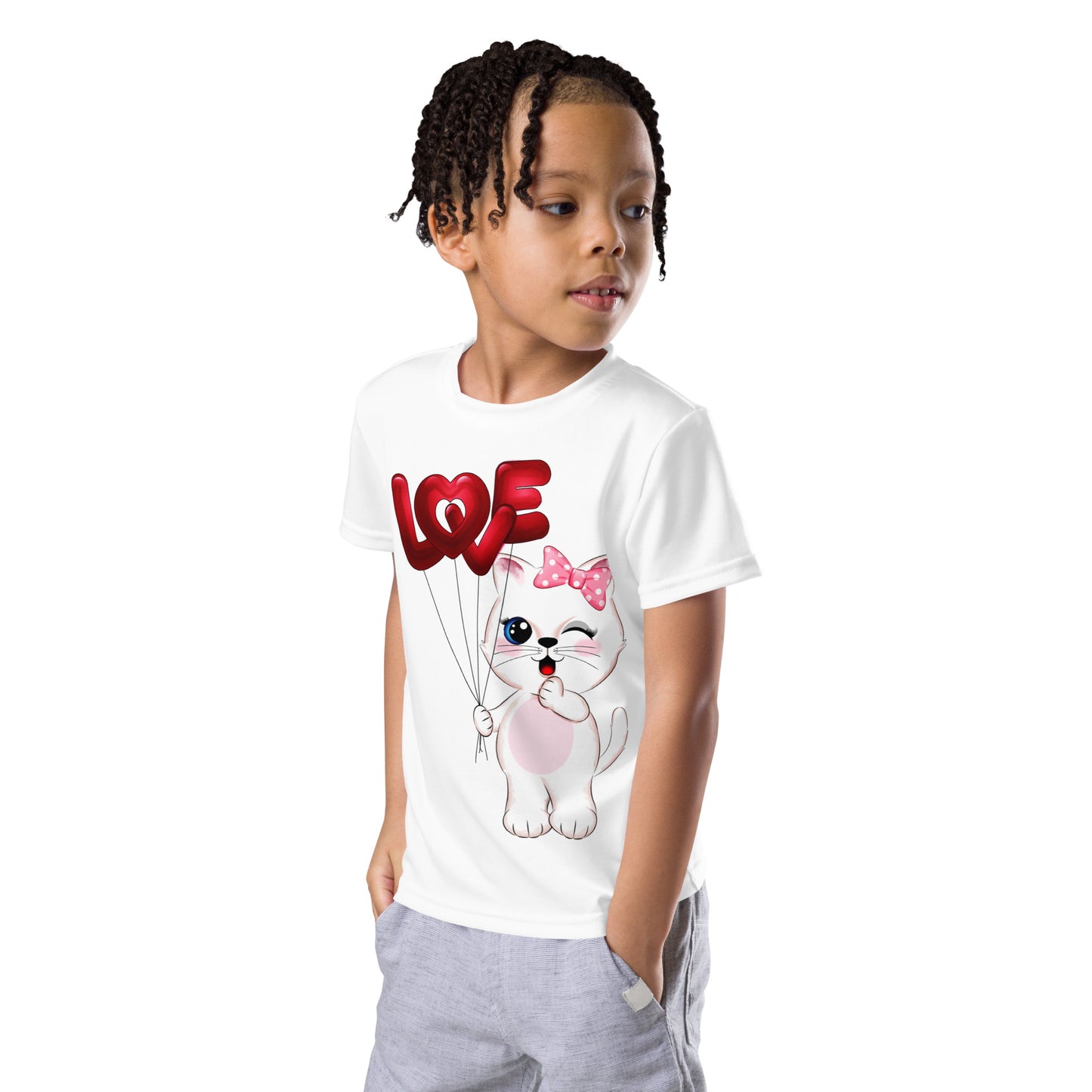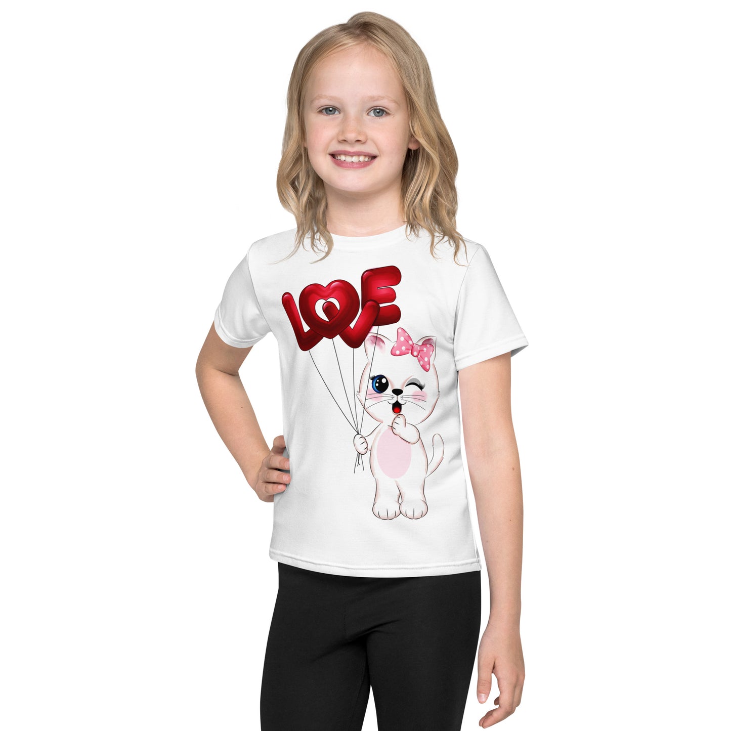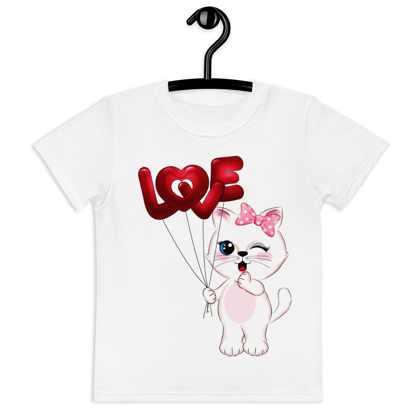 Cute Kitty Cat Holding Love Balloon T-Shirt, No. 0312