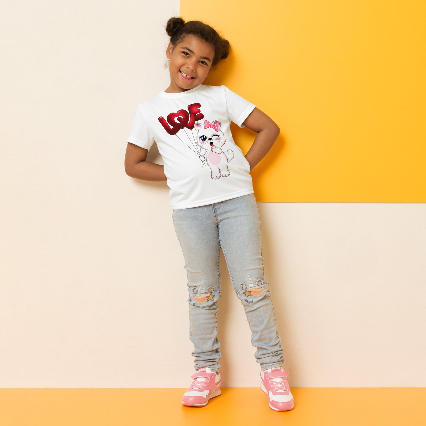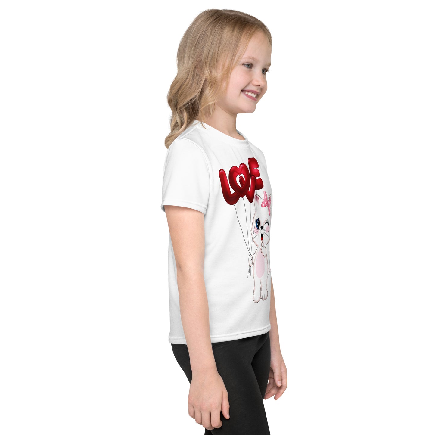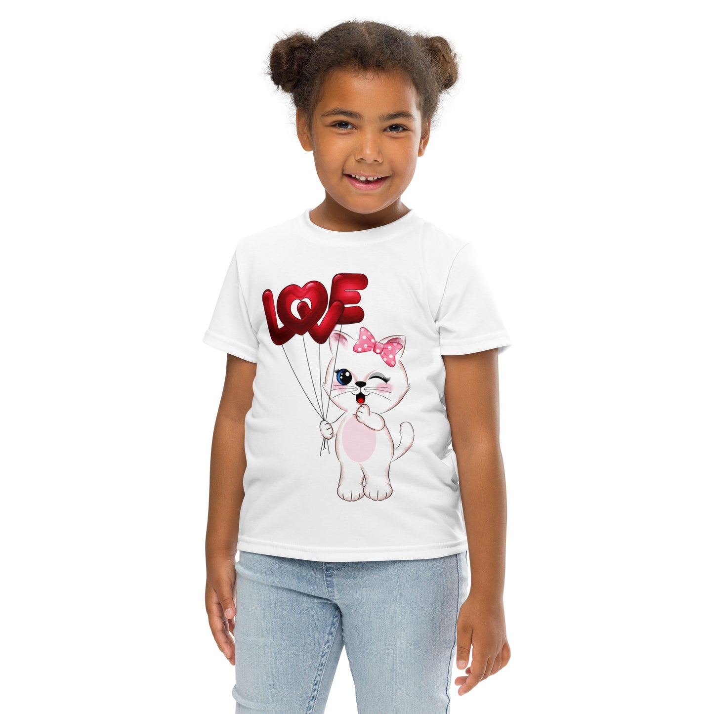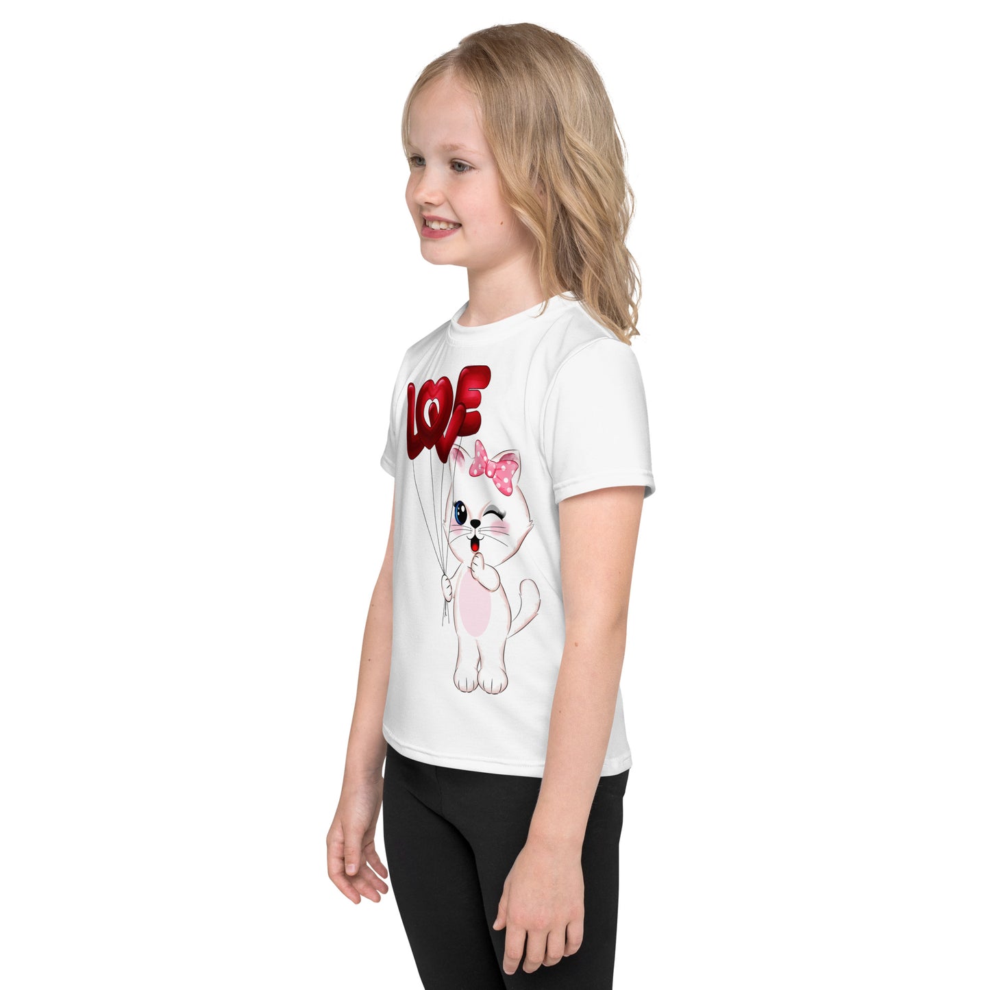 Cute Kitty Cat Holding Love Balloon T-Shirt, No. 0312