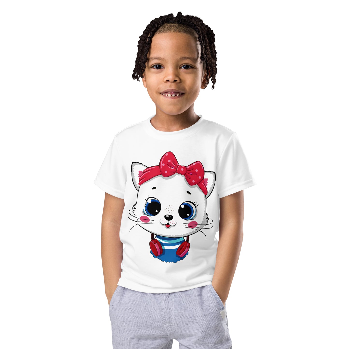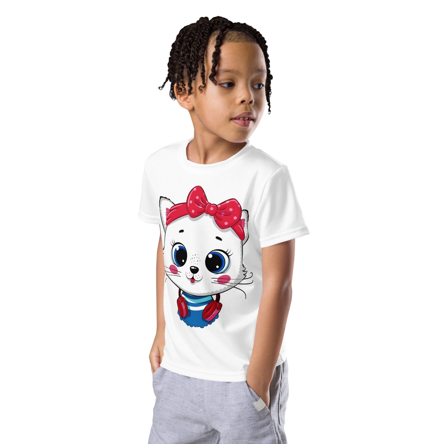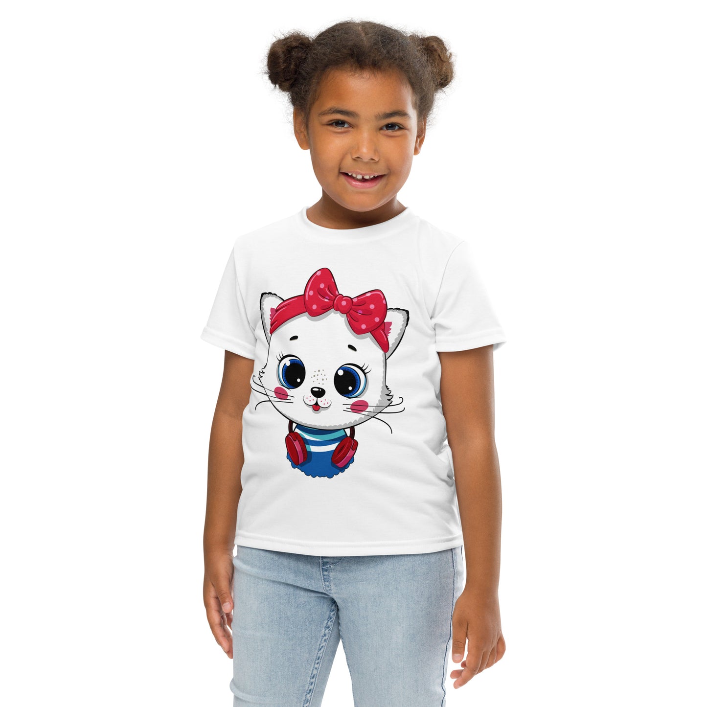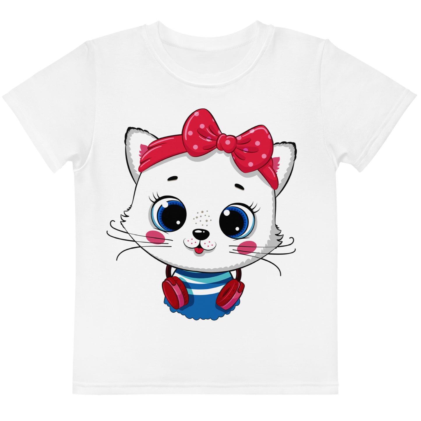 Cute Kitty Cat Listening to Music T-Shirt, No. 0320