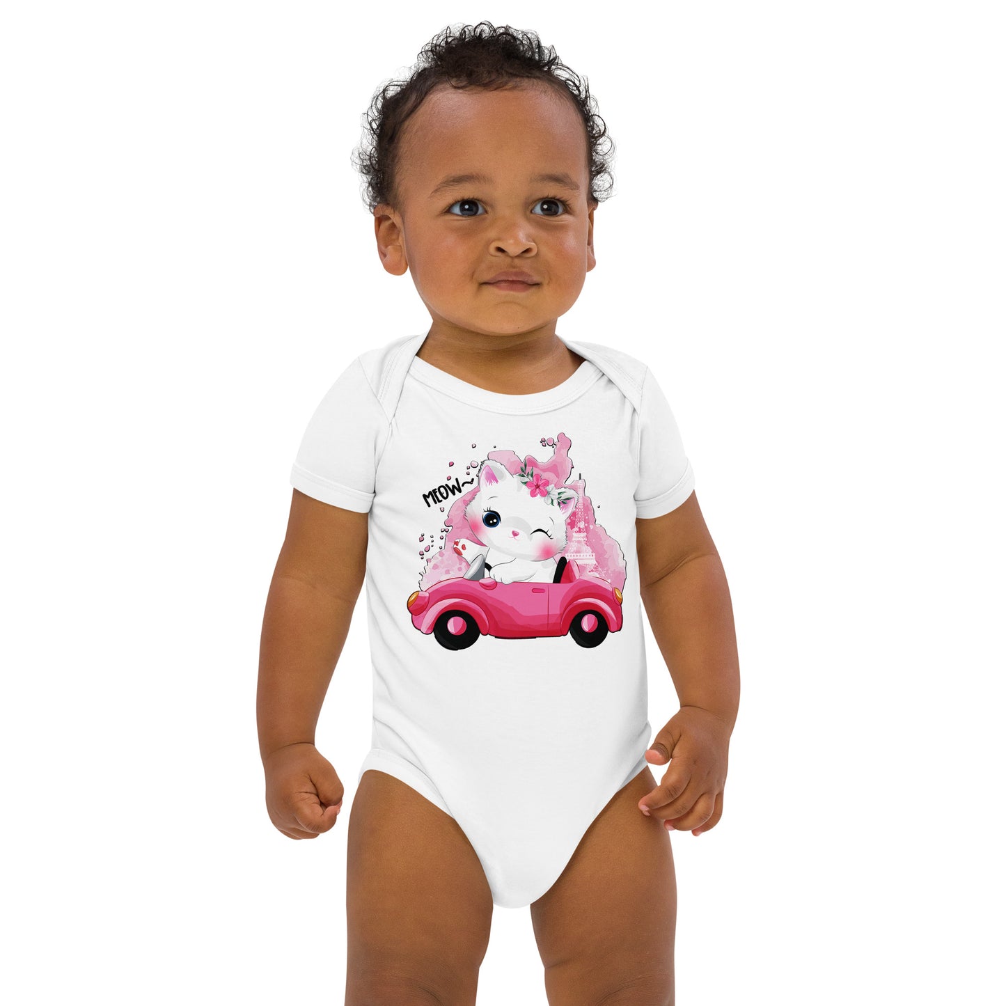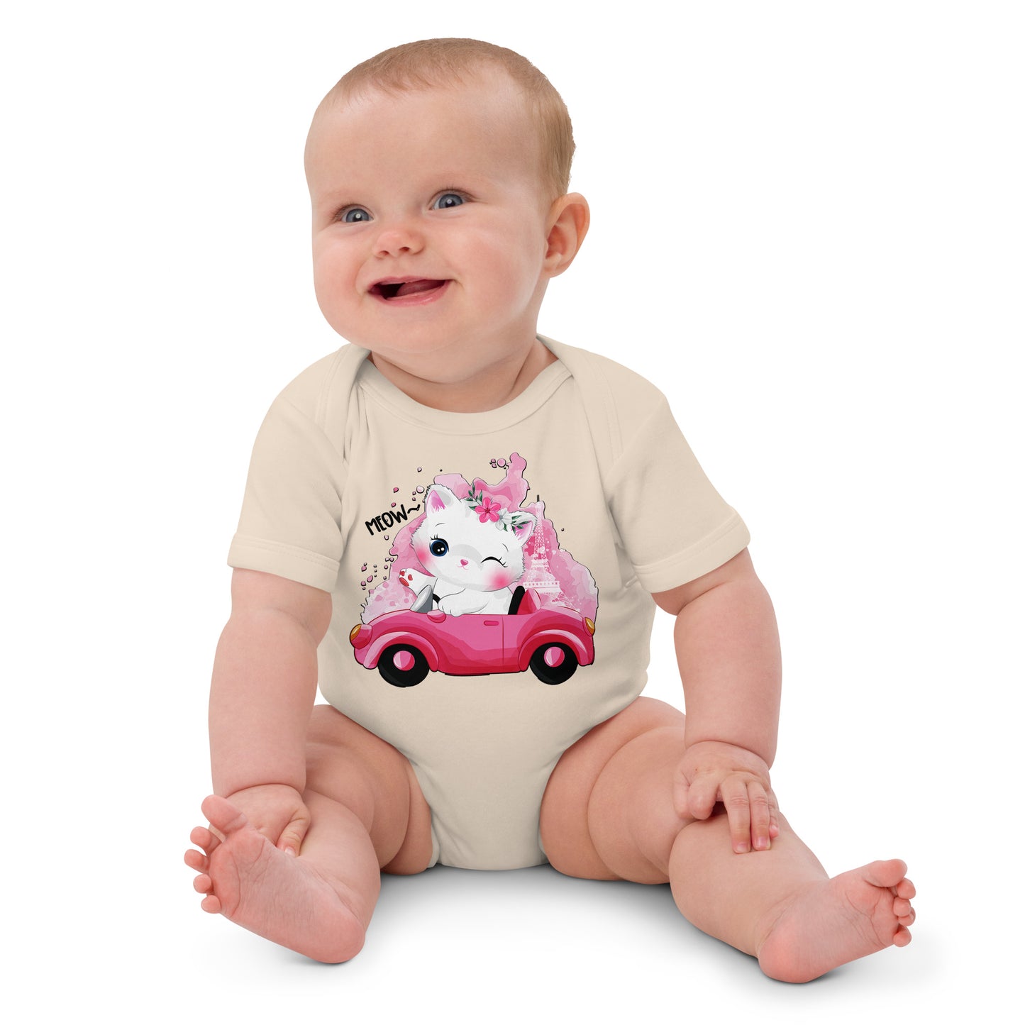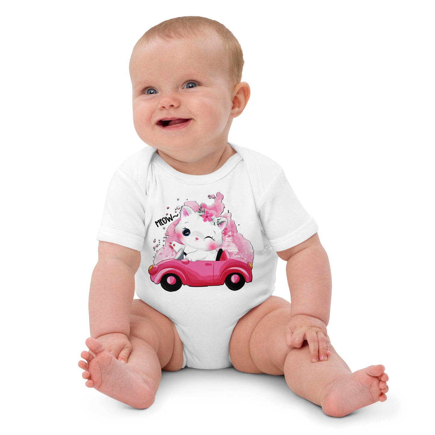 Cute Kitty Cat Riding Car Bodysuit, No. 0323