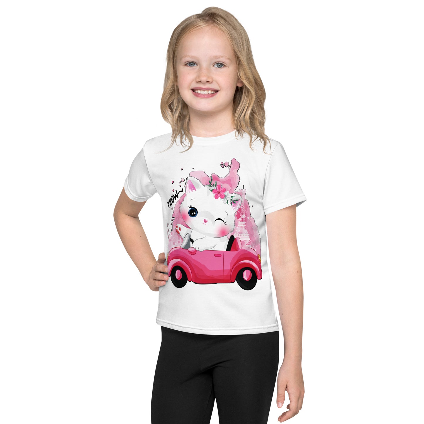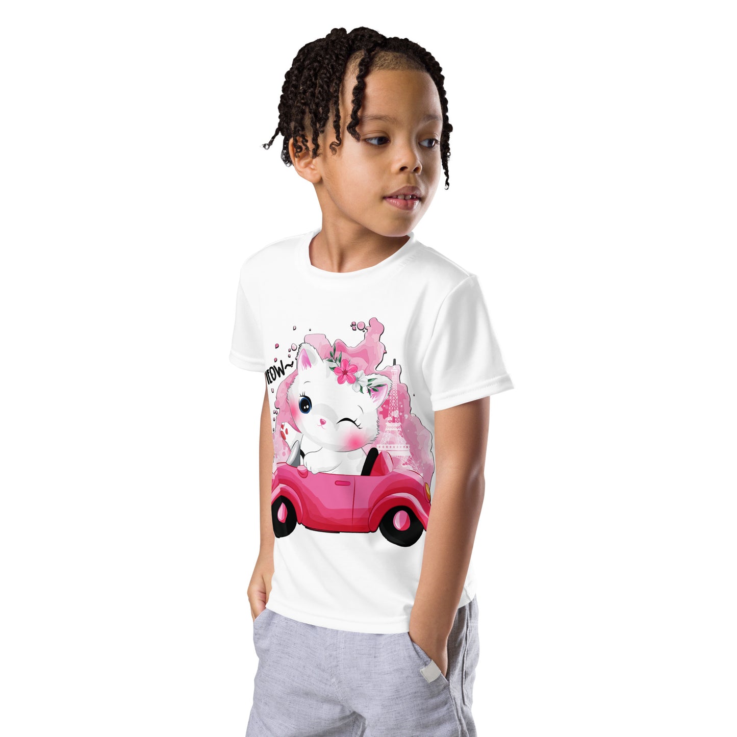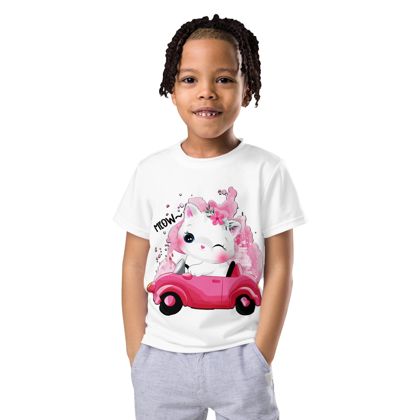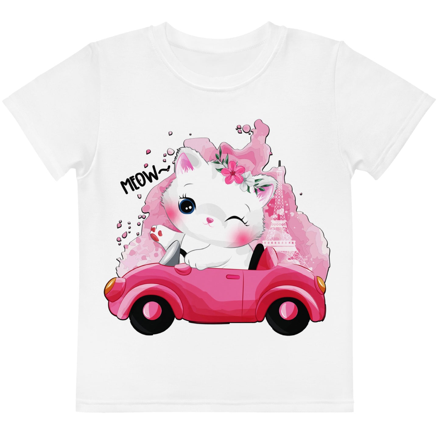 Cute Kitty Cat Riding Car T-Shirt, No. 0323