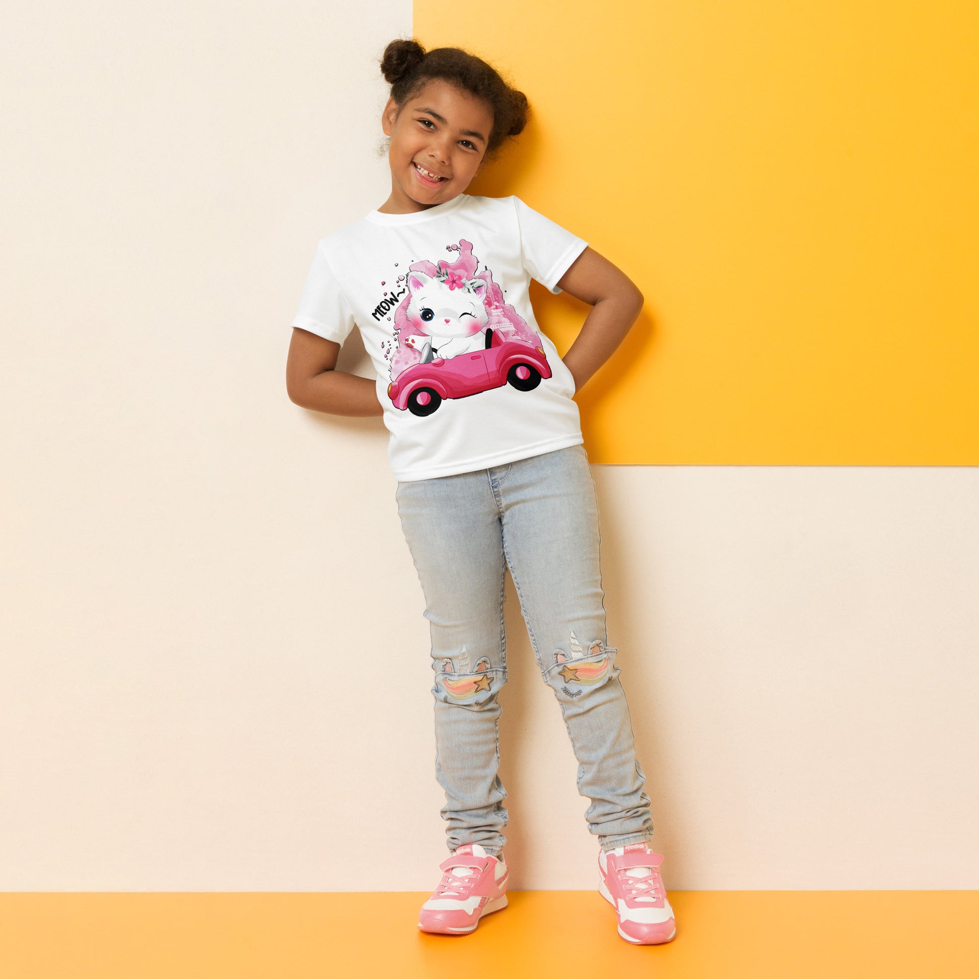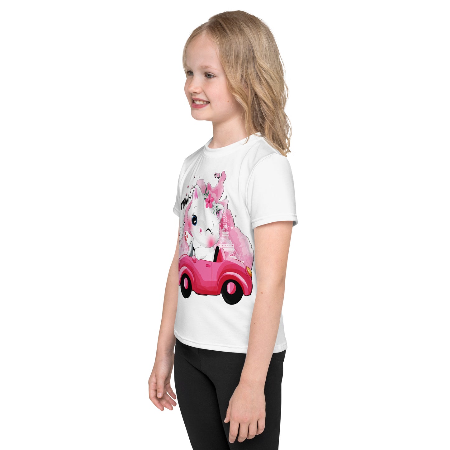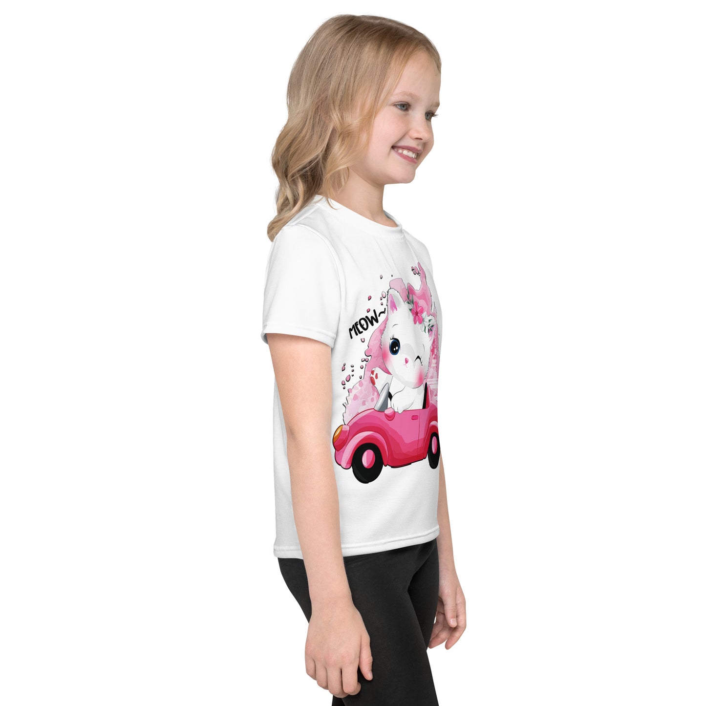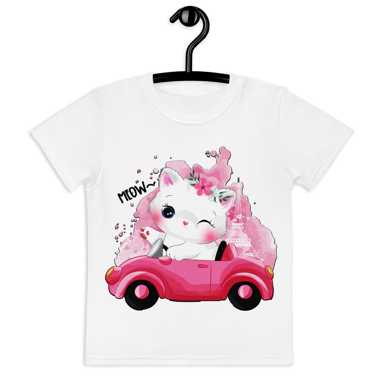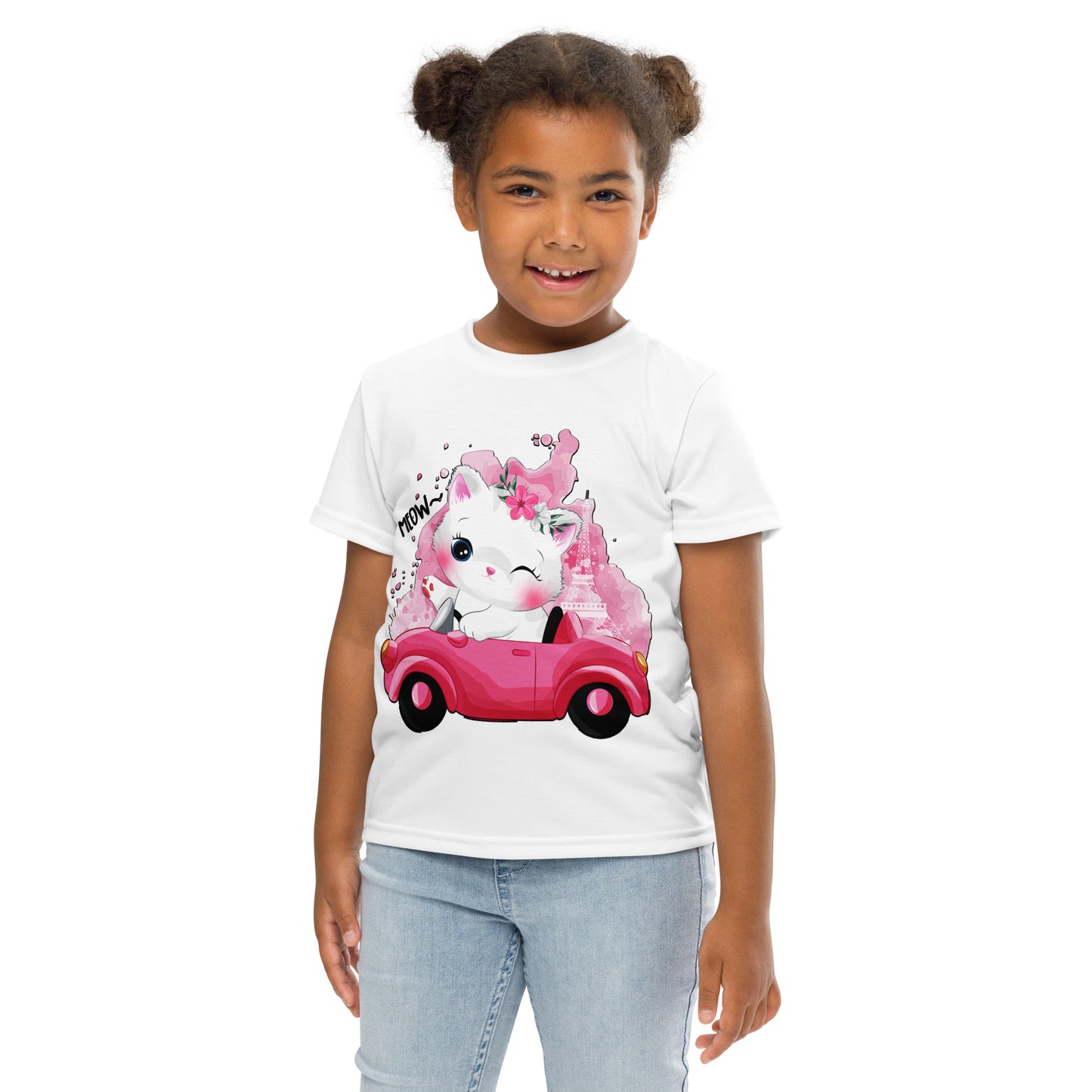 Cute Kitty Cat Riding Car T-Shirt, No. 0323