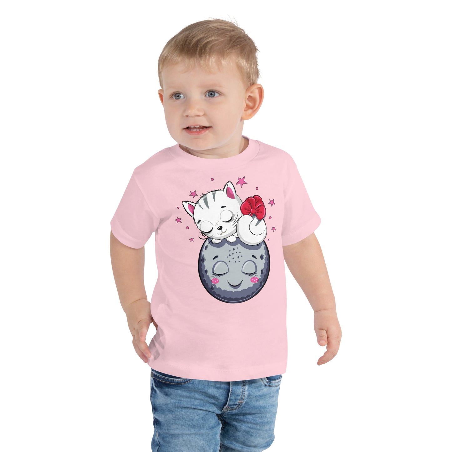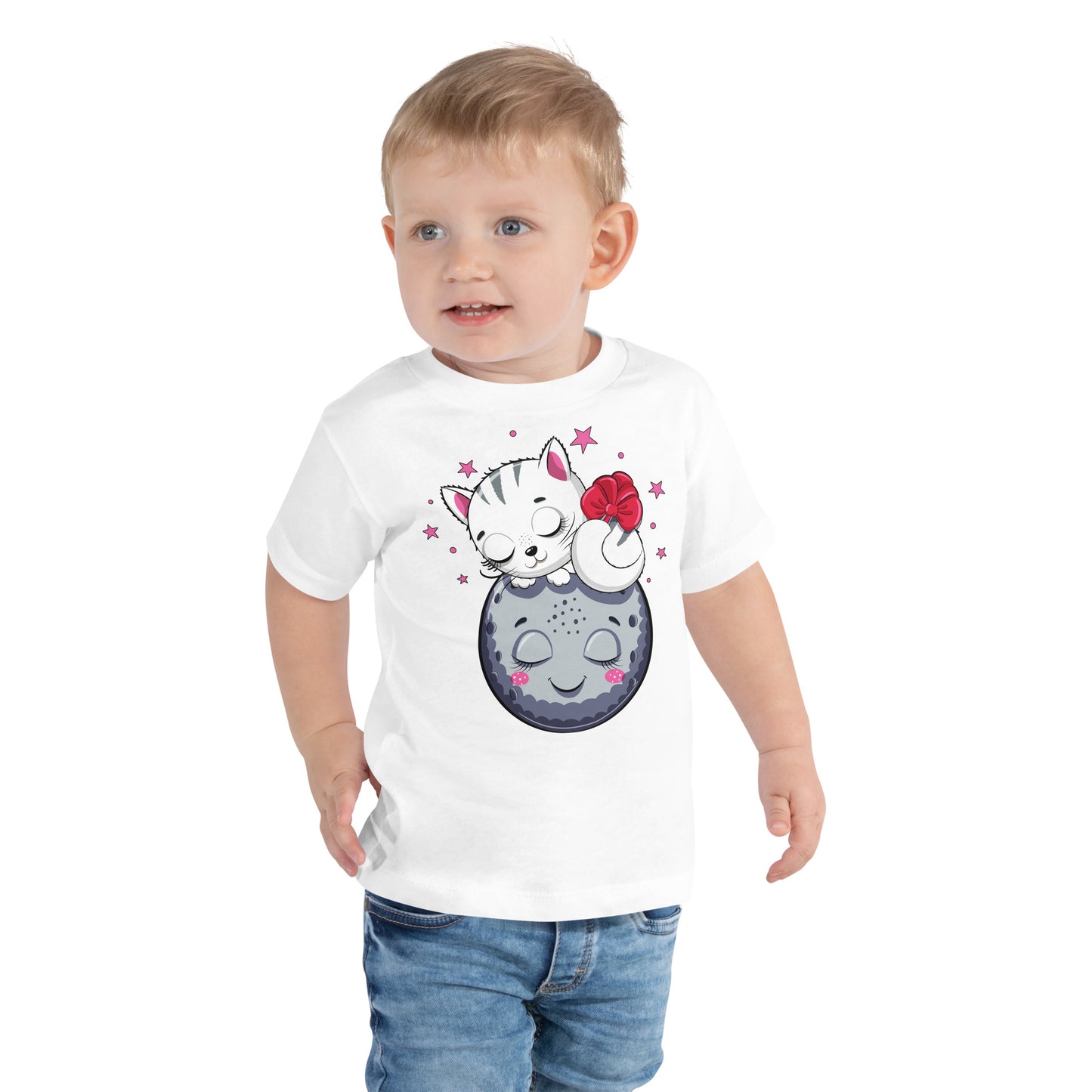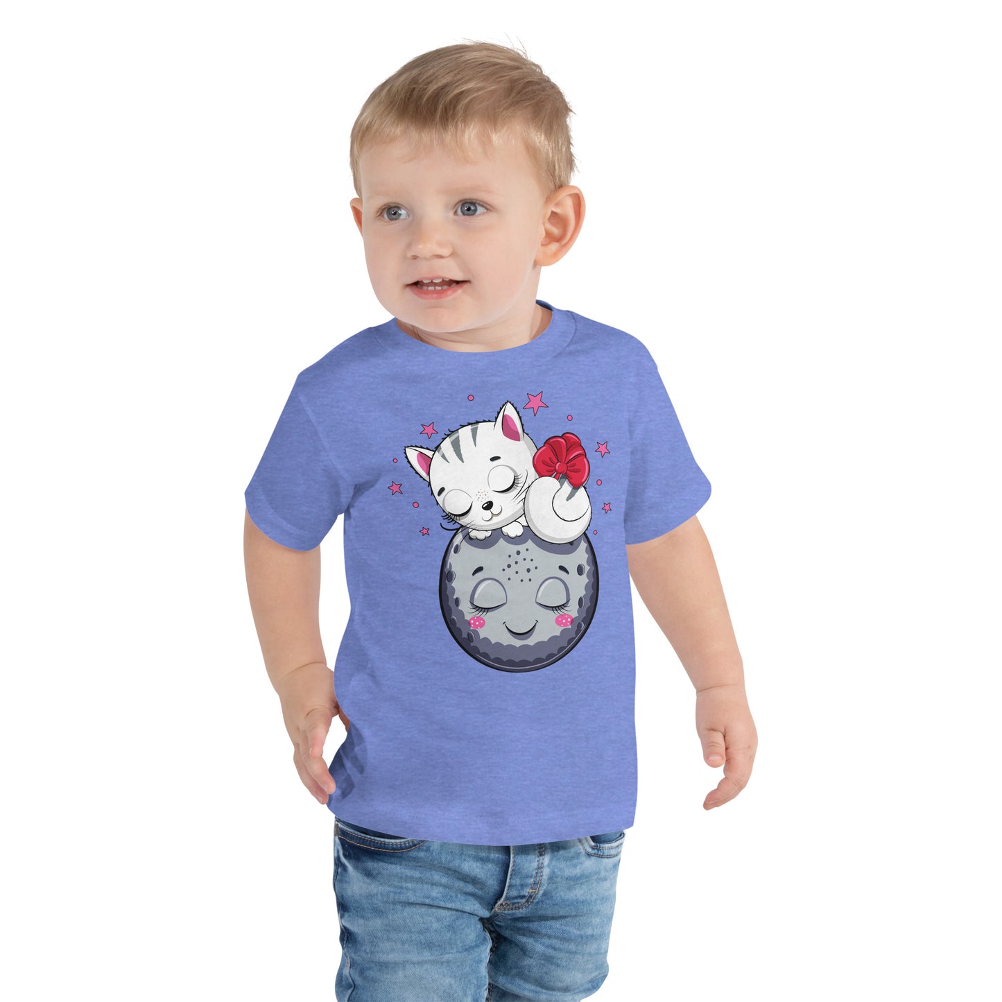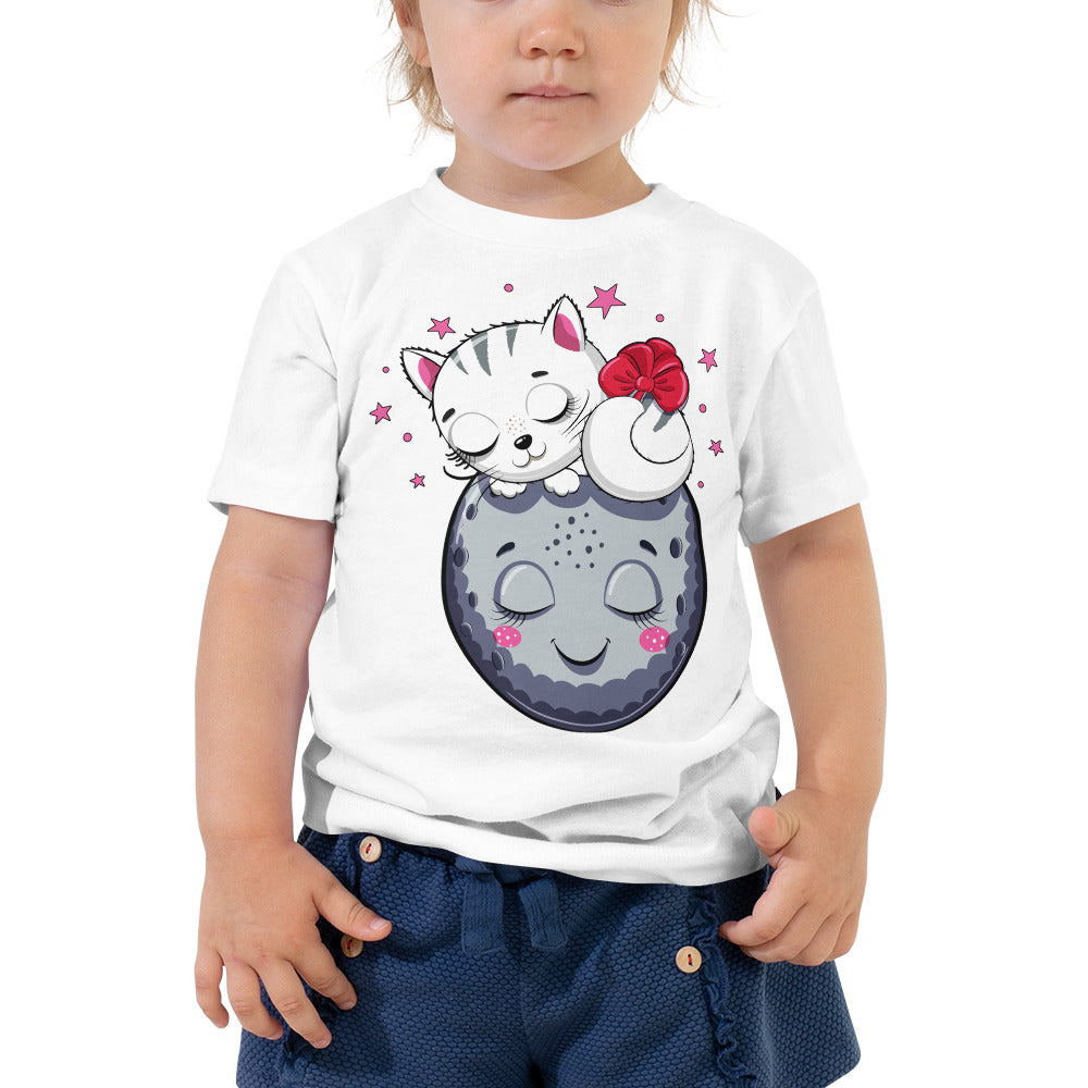 Cute Kitty Cat Sleeping on Moon T-shirt, No. 0324