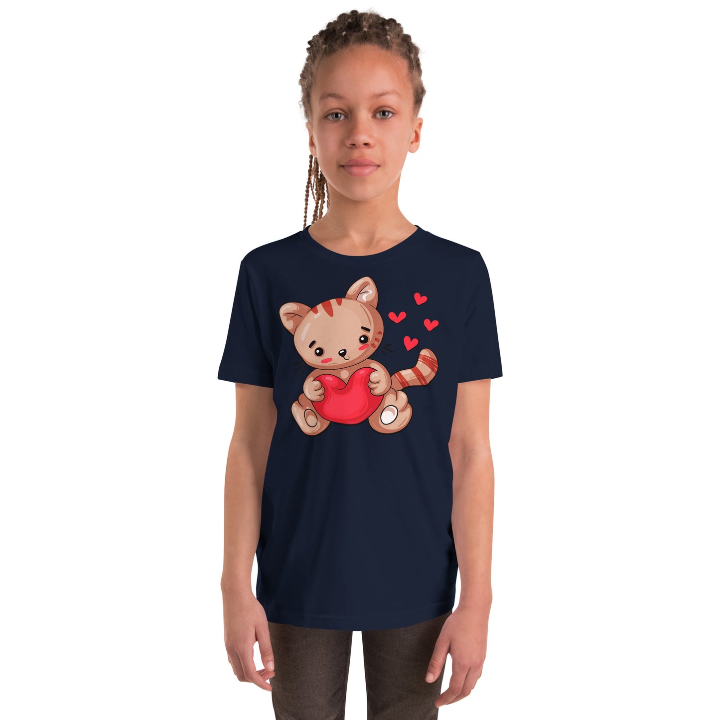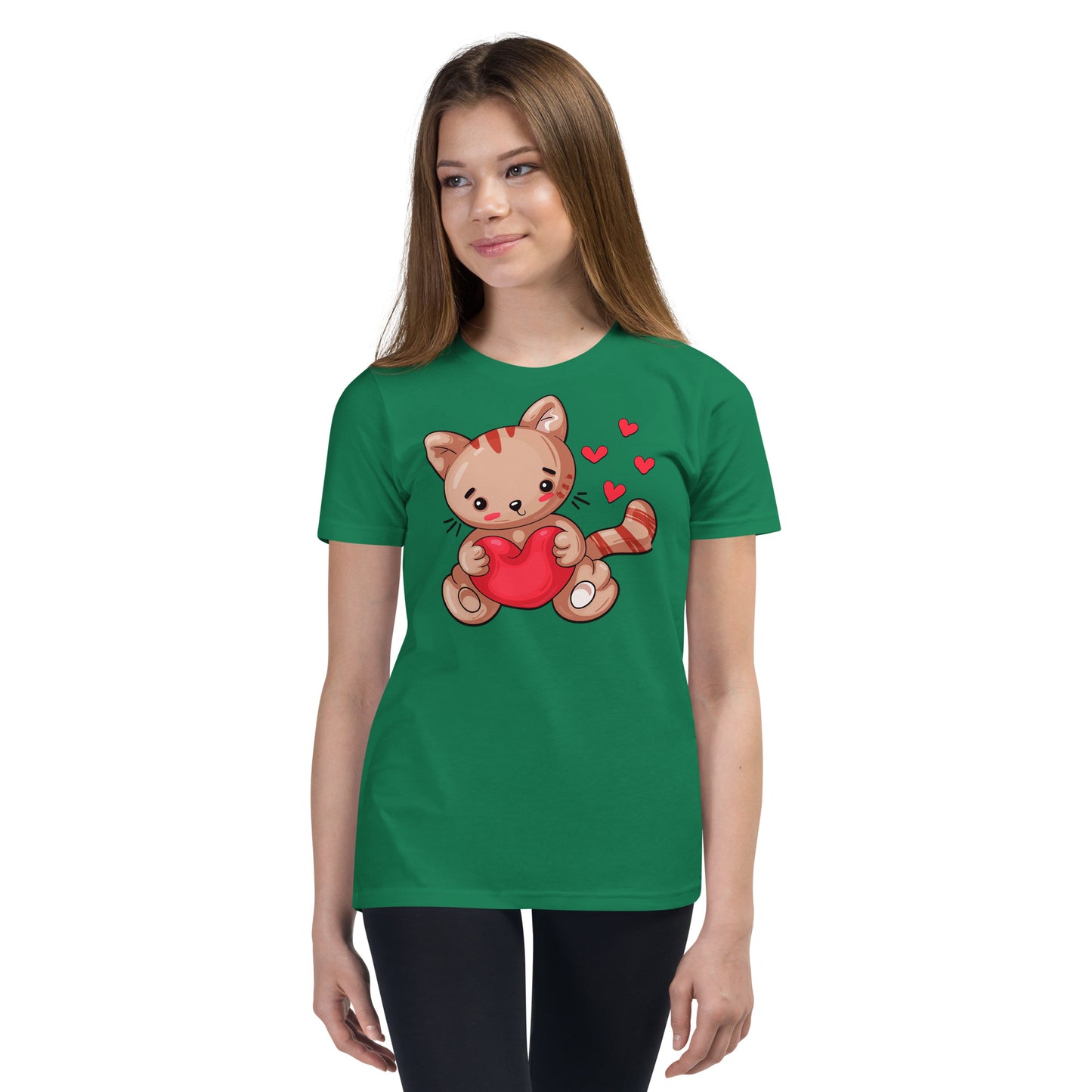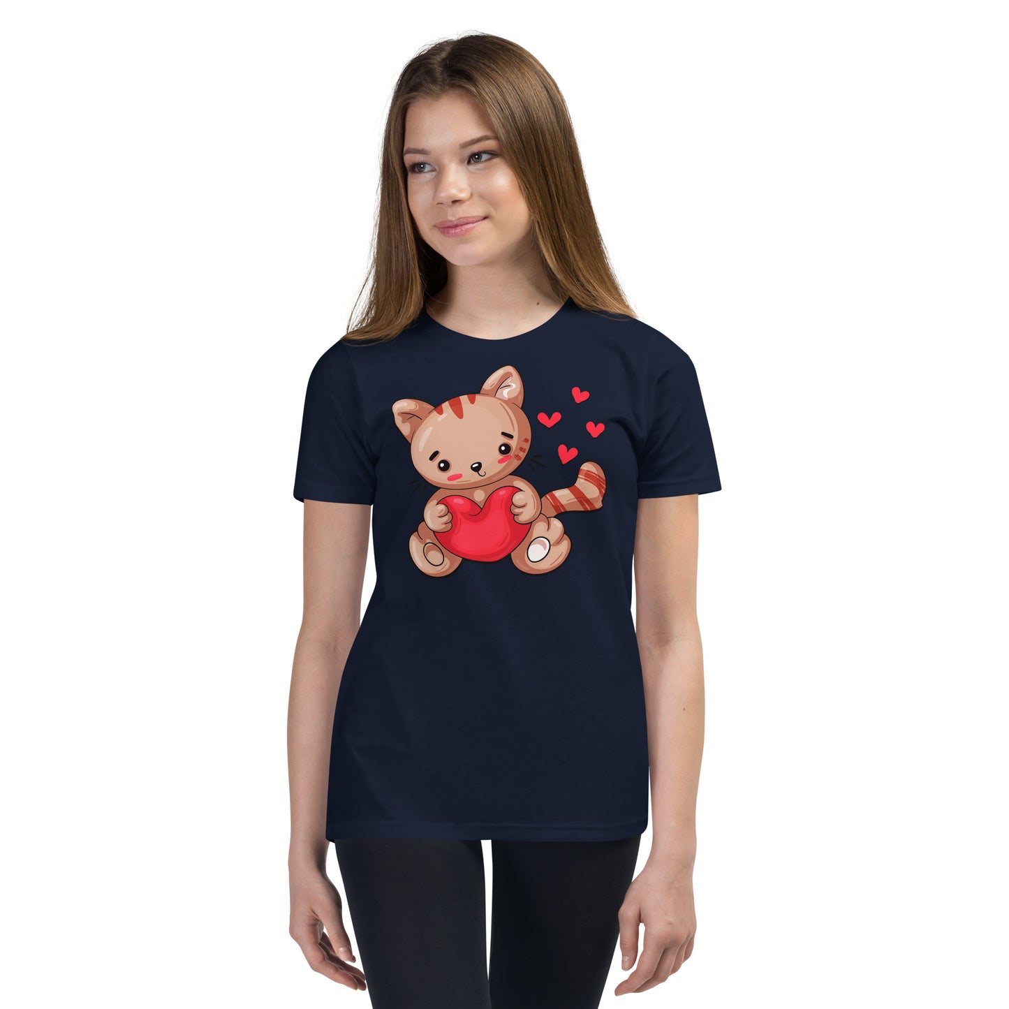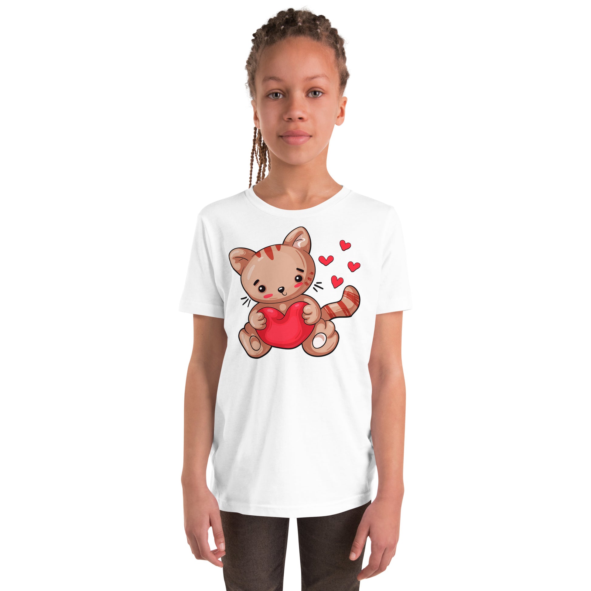 Cute Kitty Cat with Red Heart T-Shirt, No. 0333