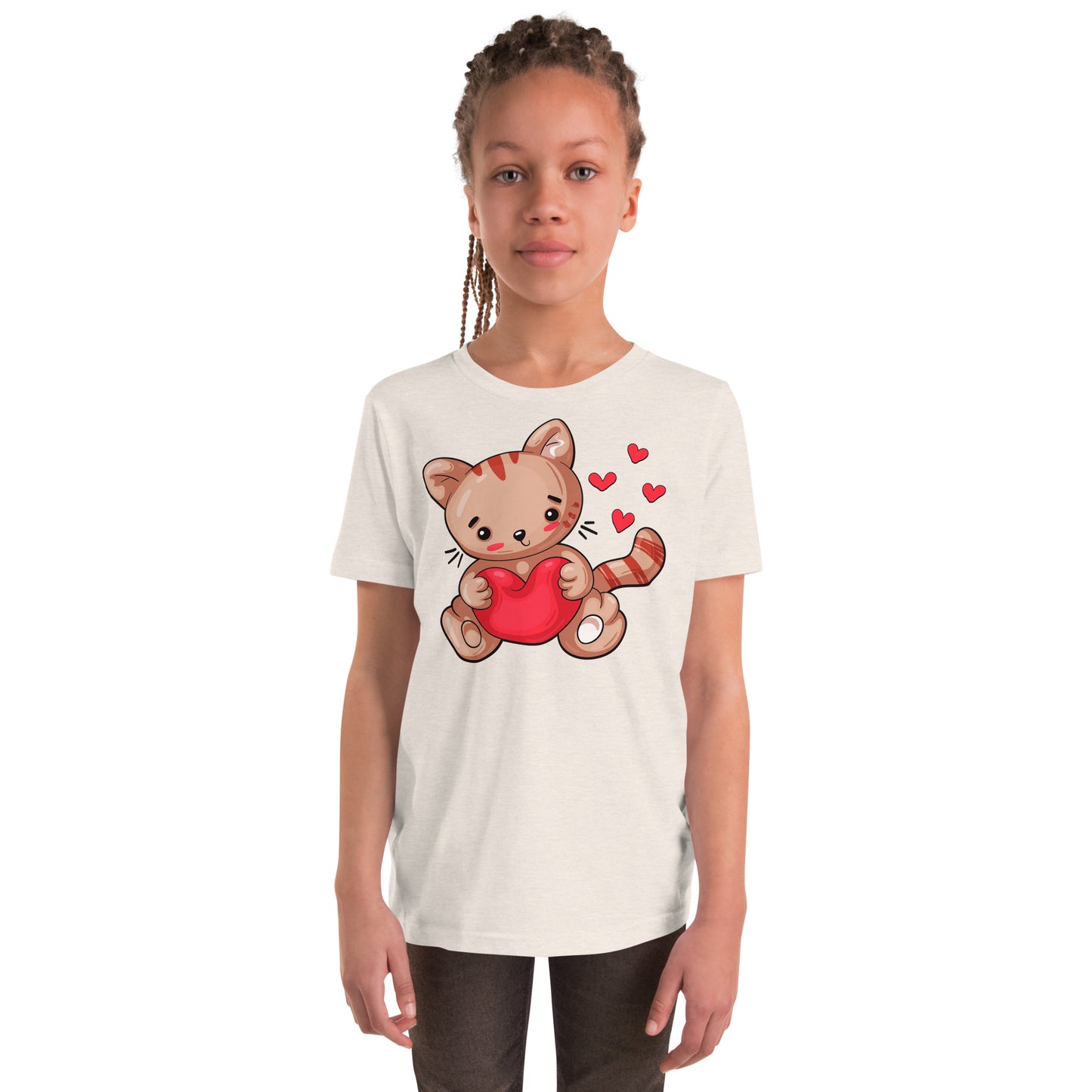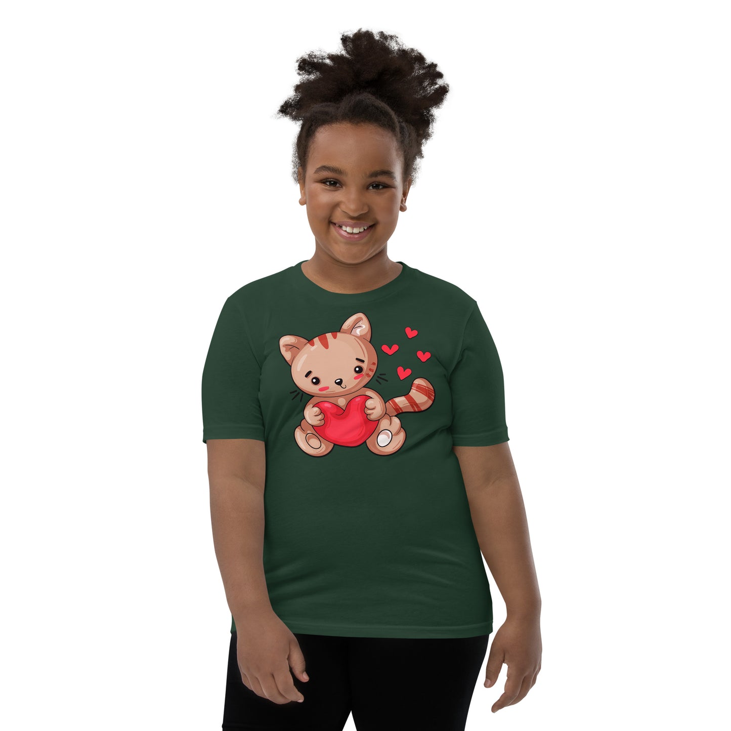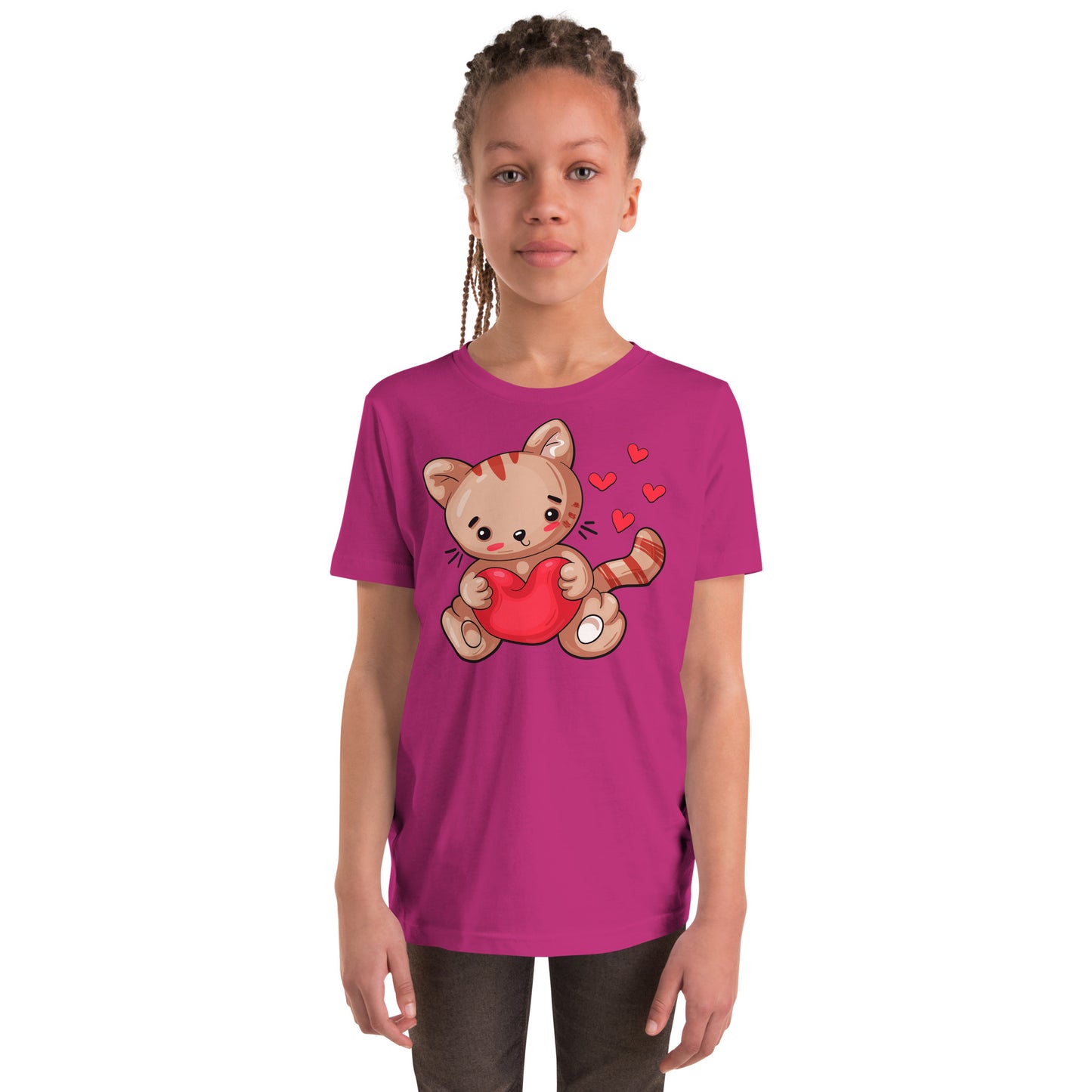 Cute Kitty Cat with Red Heart T-Shirt, No. 0333