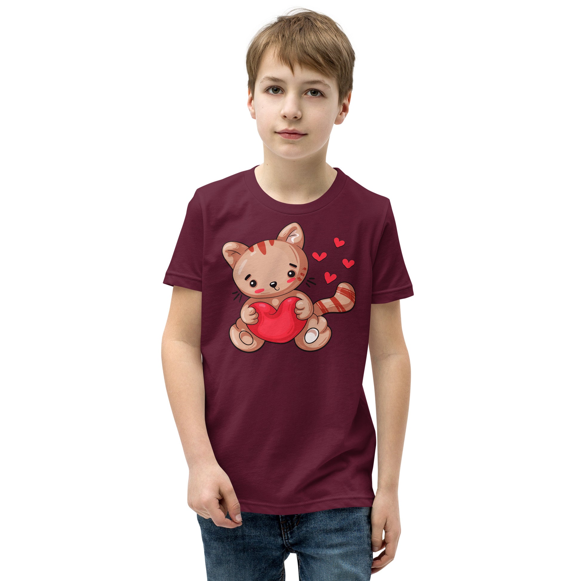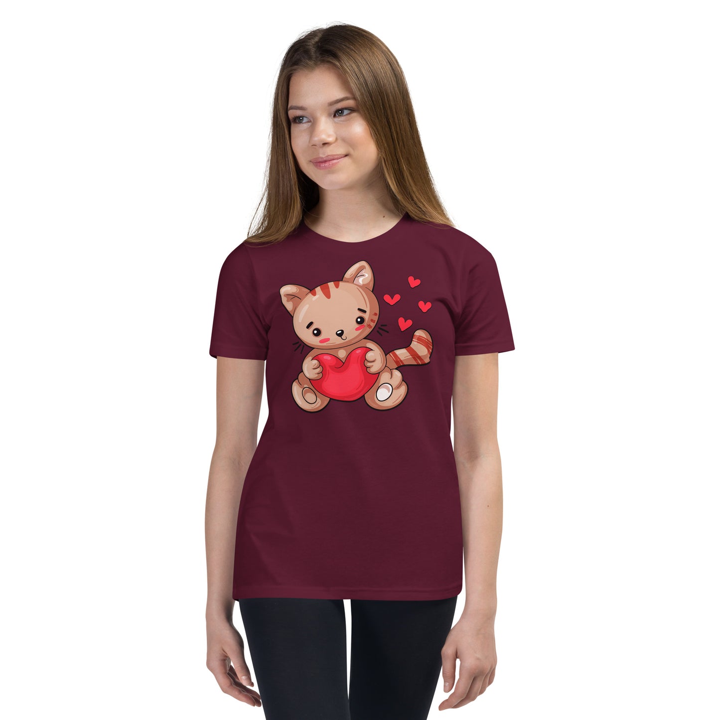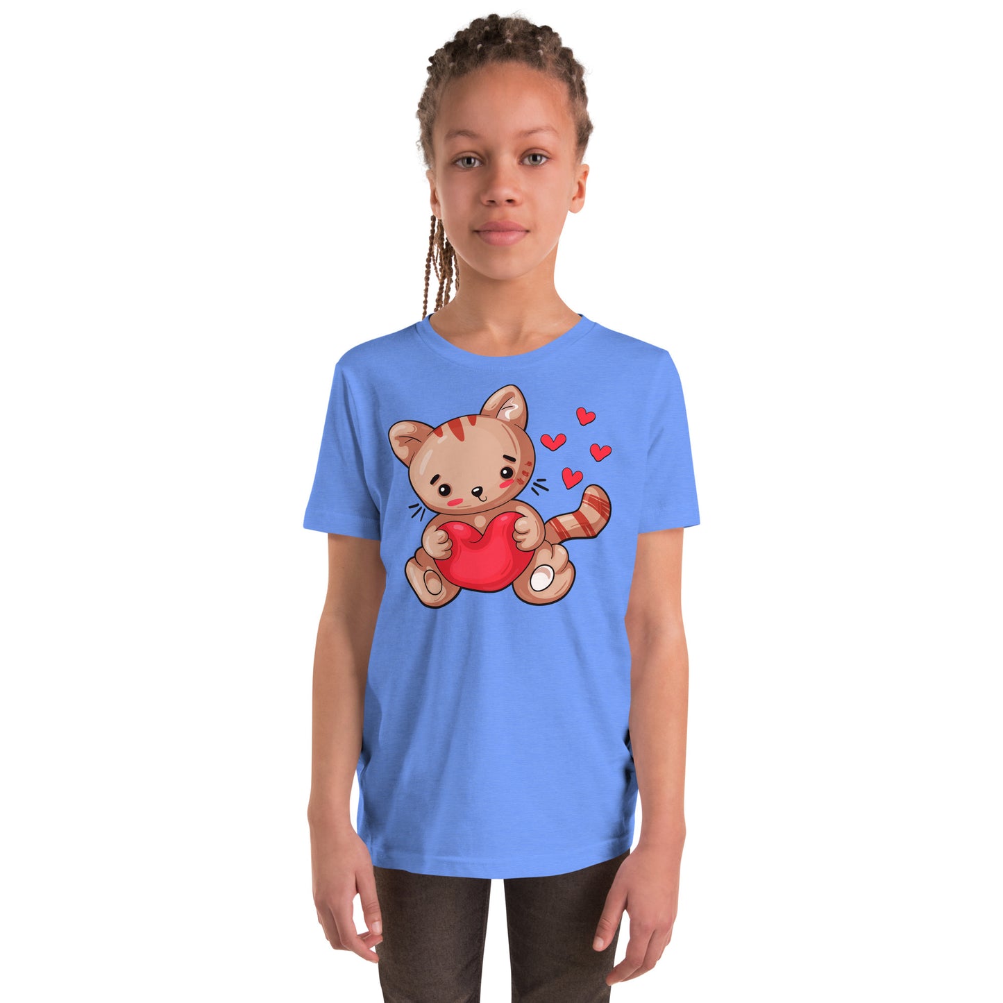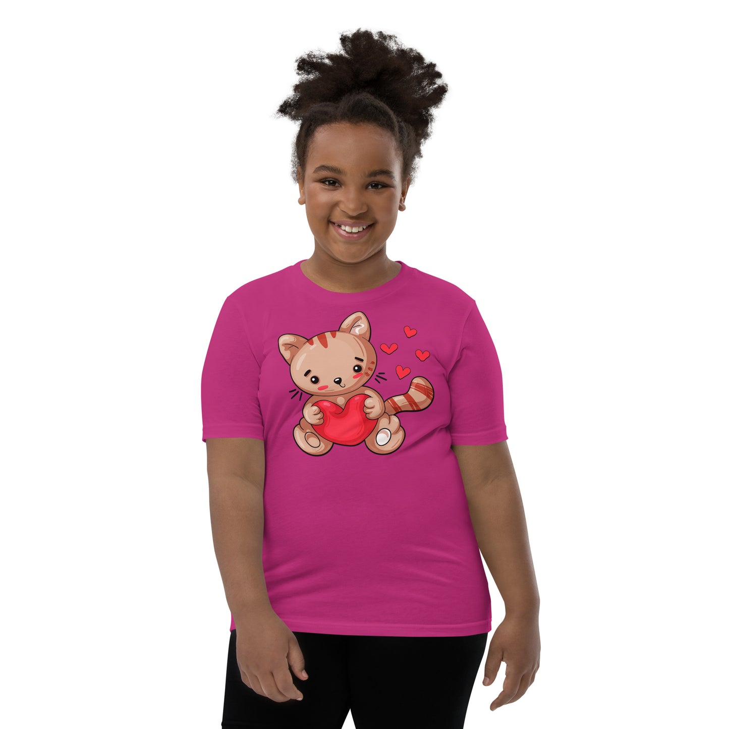 Cute Kitty Cat with Red Heart T-Shirt, No. 0333