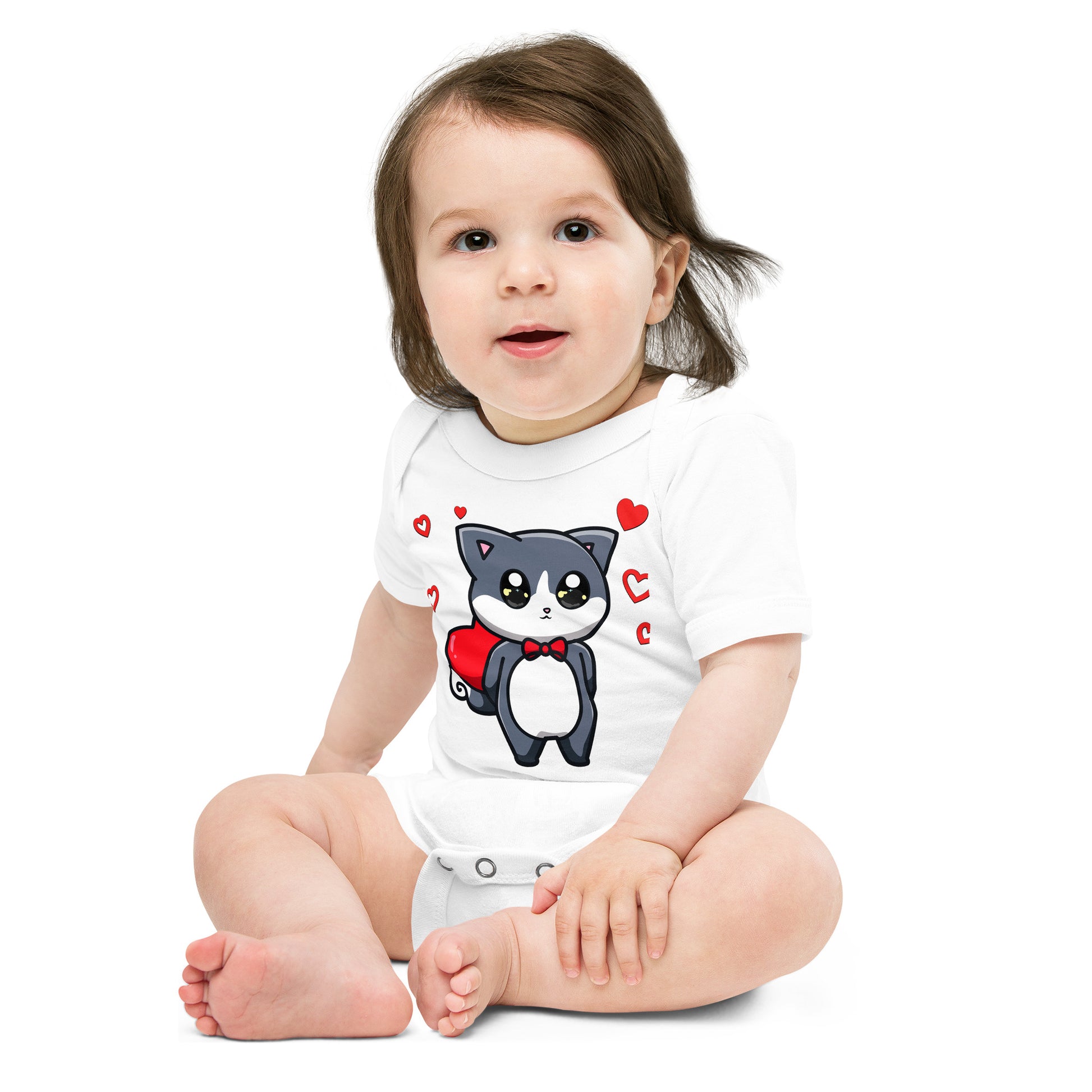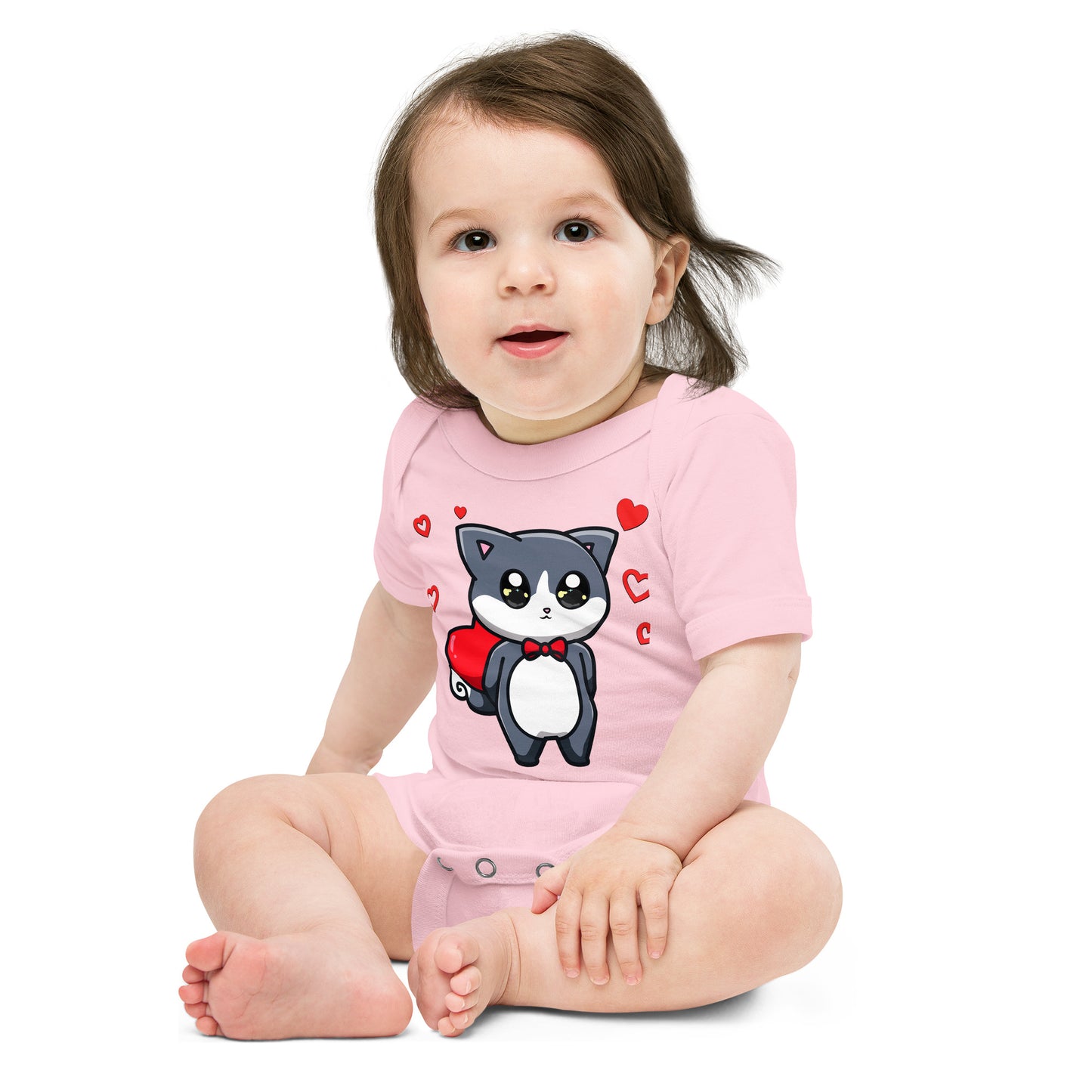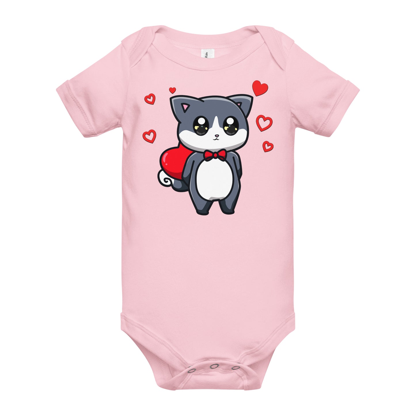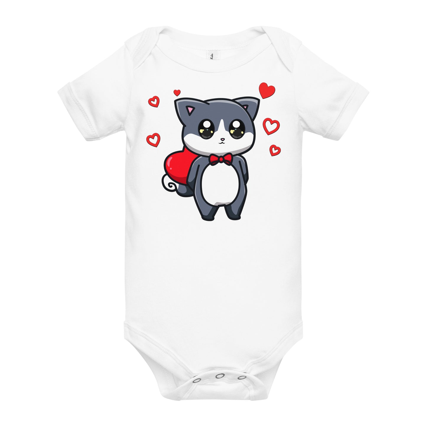 Cute Little Cat with Red Hearts Bodysuit, No. 0215