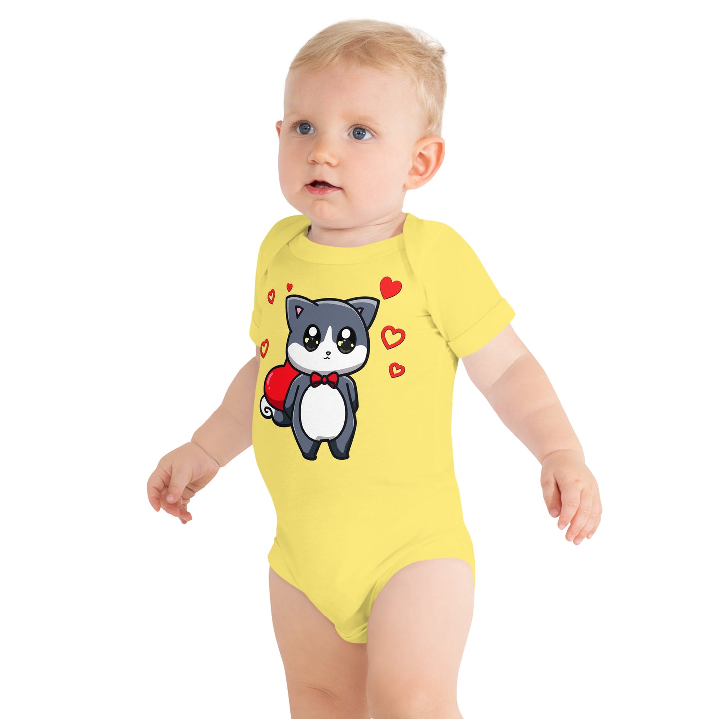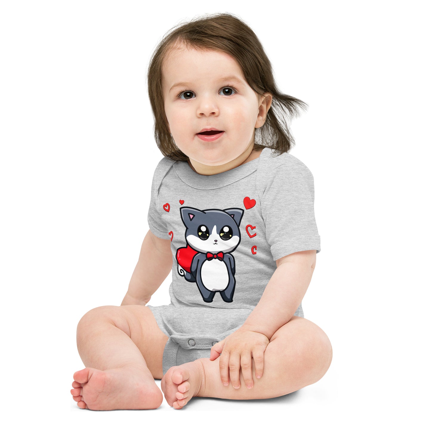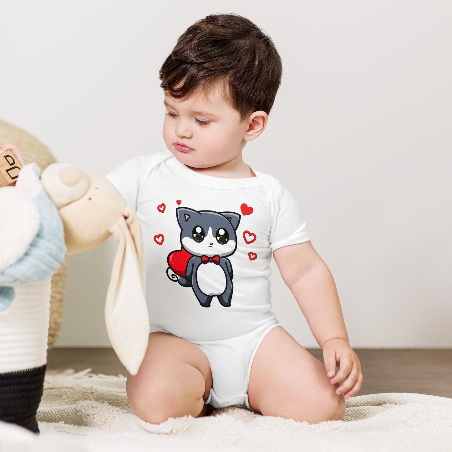 Cute Little Cat with Red Hearts Bodysuit, No. 0215