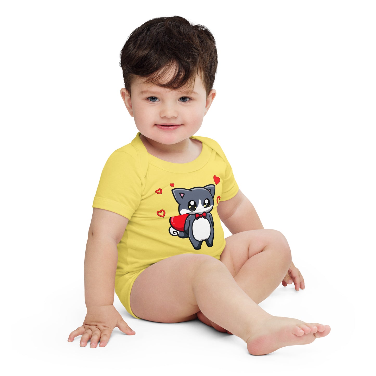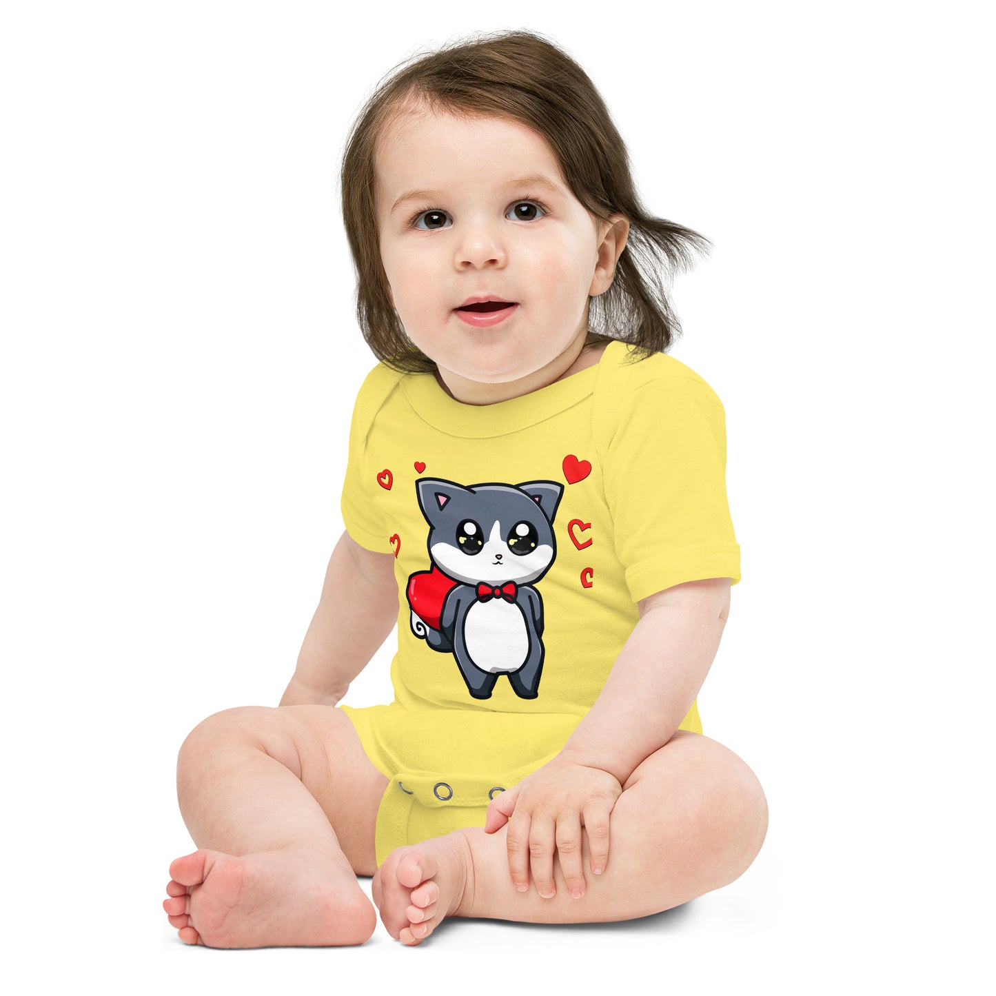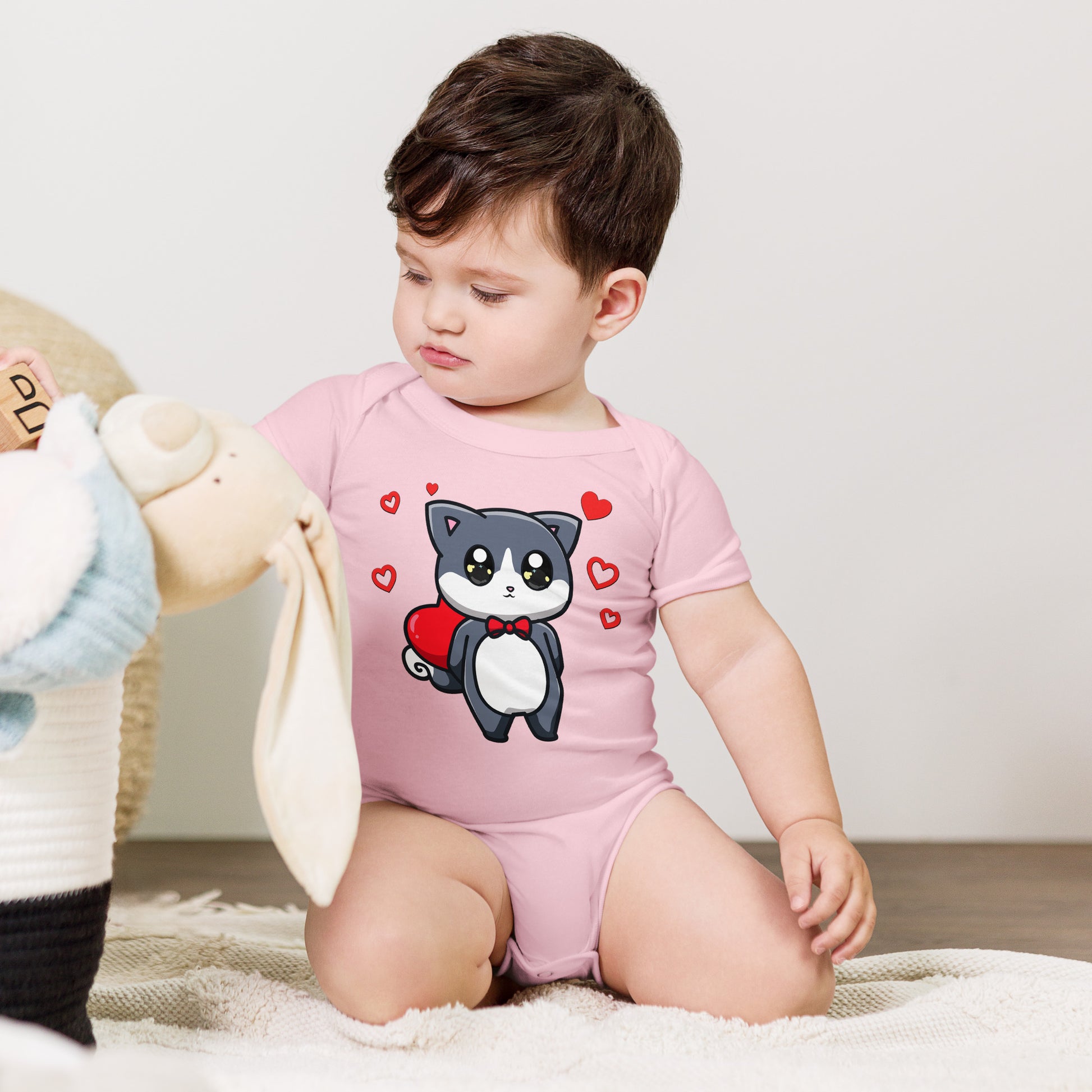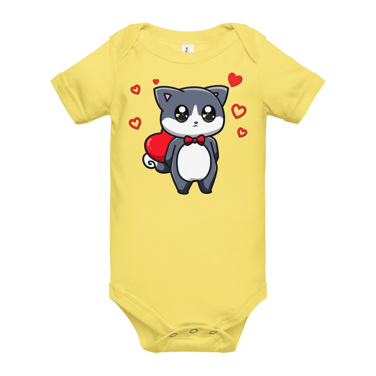 Cute Little Cat with Red Hearts Bodysuit, No. 0215