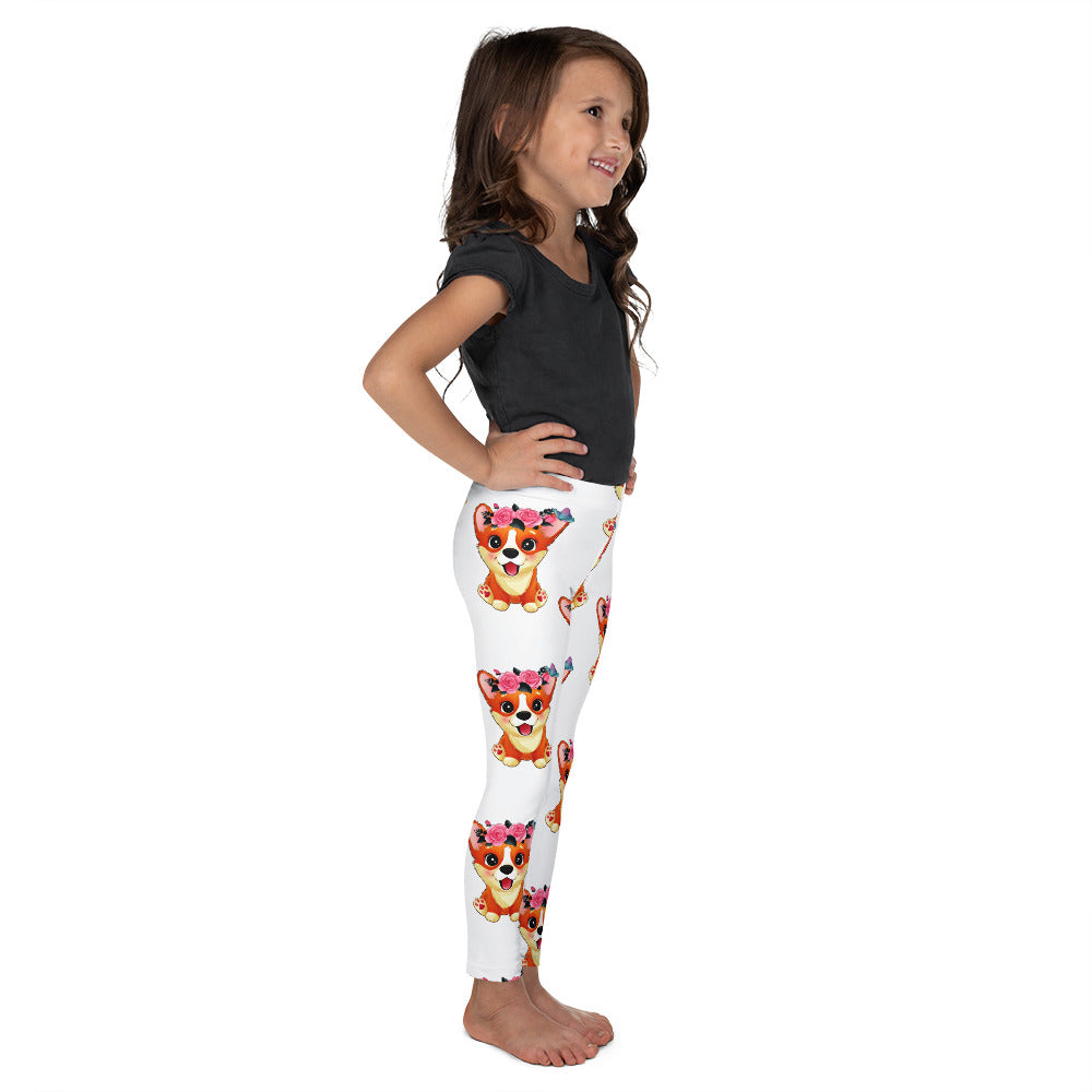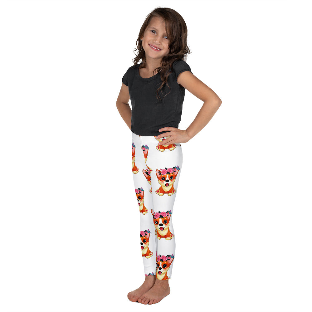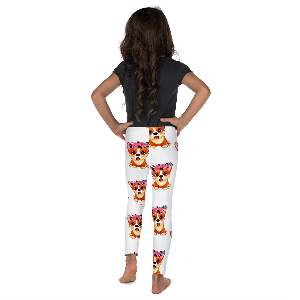 Cute Little Corgi Dog with Flowers Leggings, No. 0354