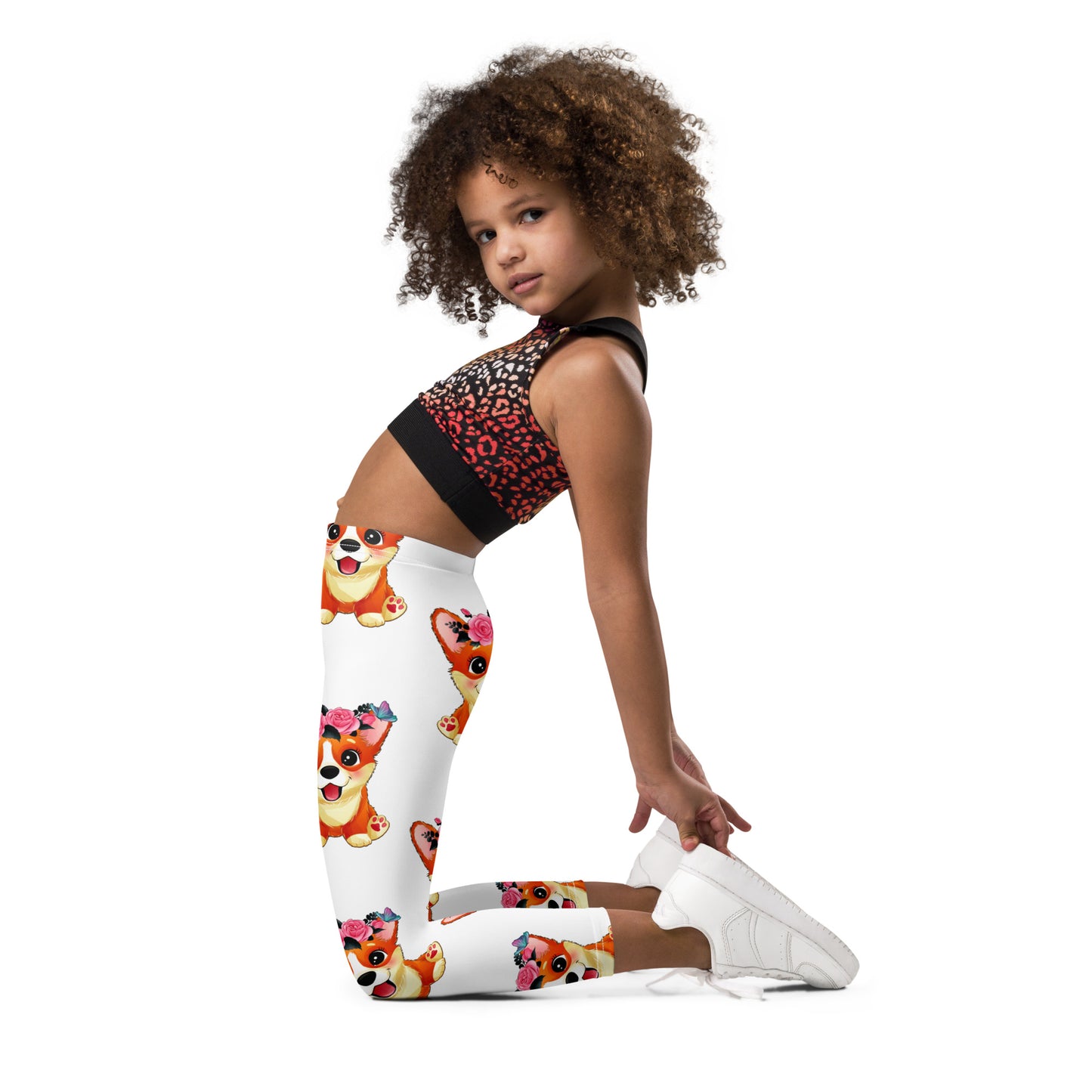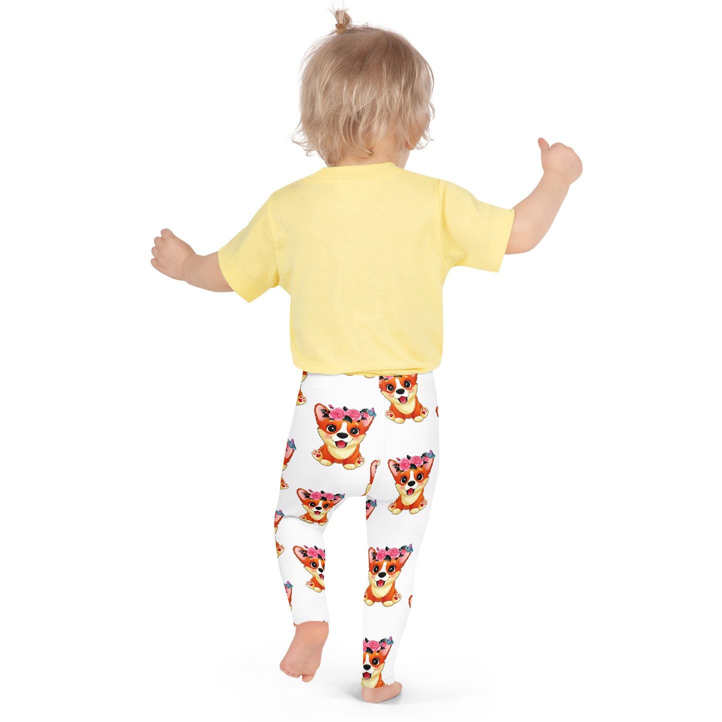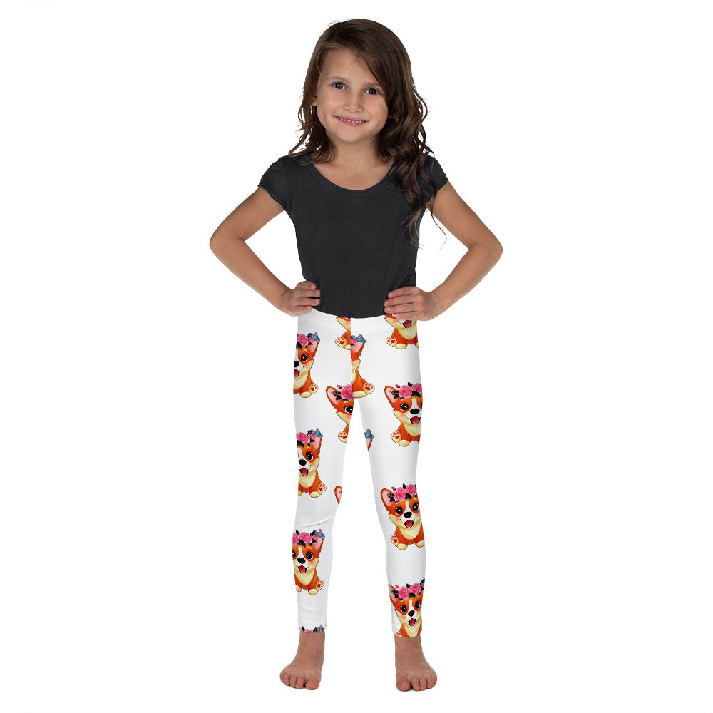 Cute Little Corgi Dog with Flowers Leggings, No. 0354