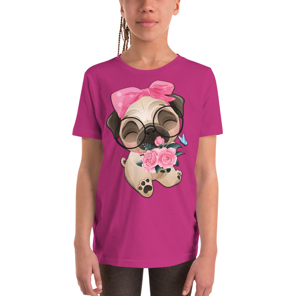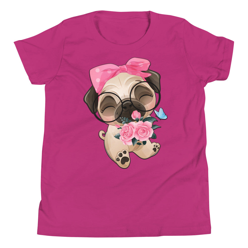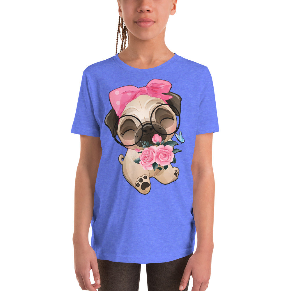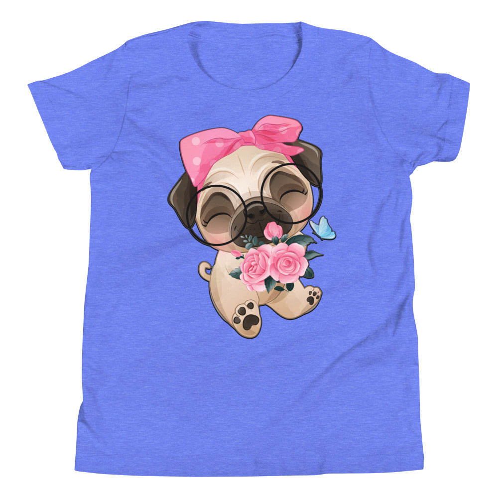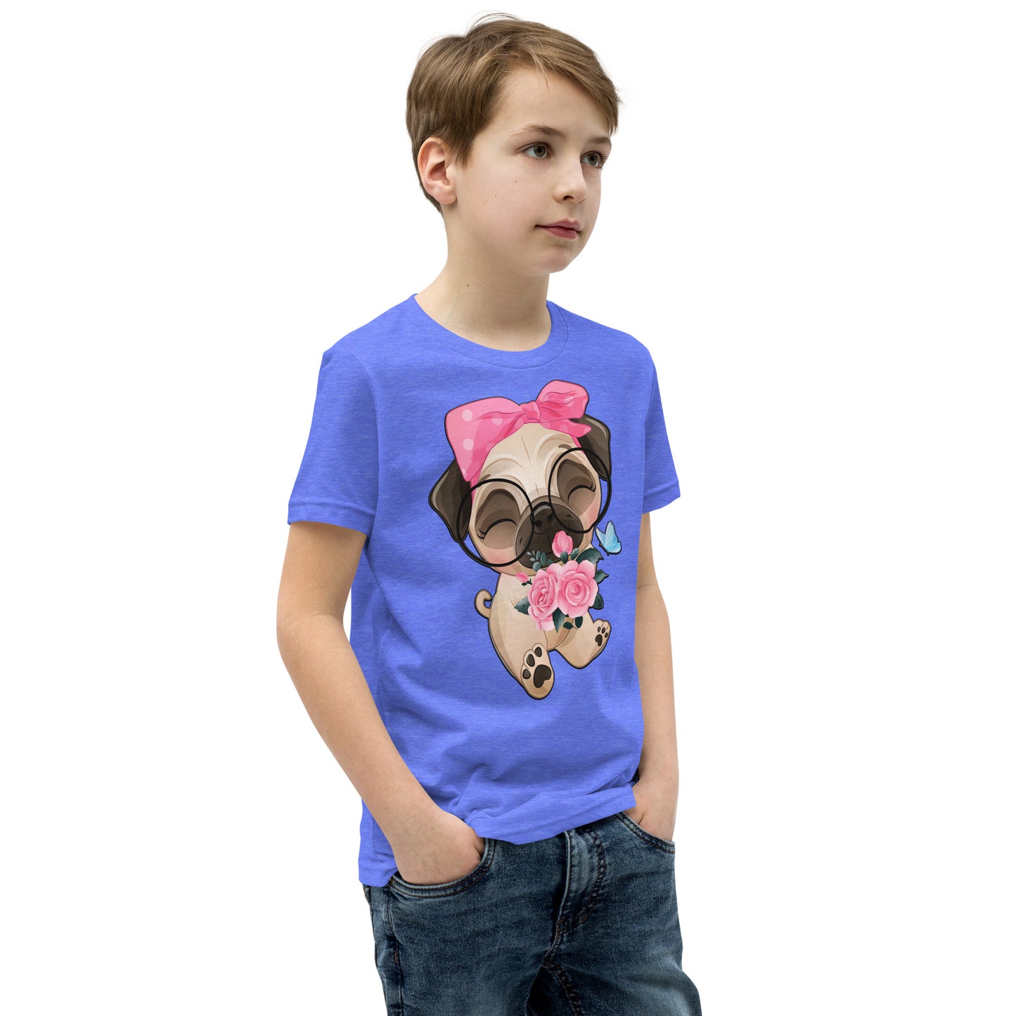 Cute Little Pug Dog Holding Roses T-shirt, No. 0362