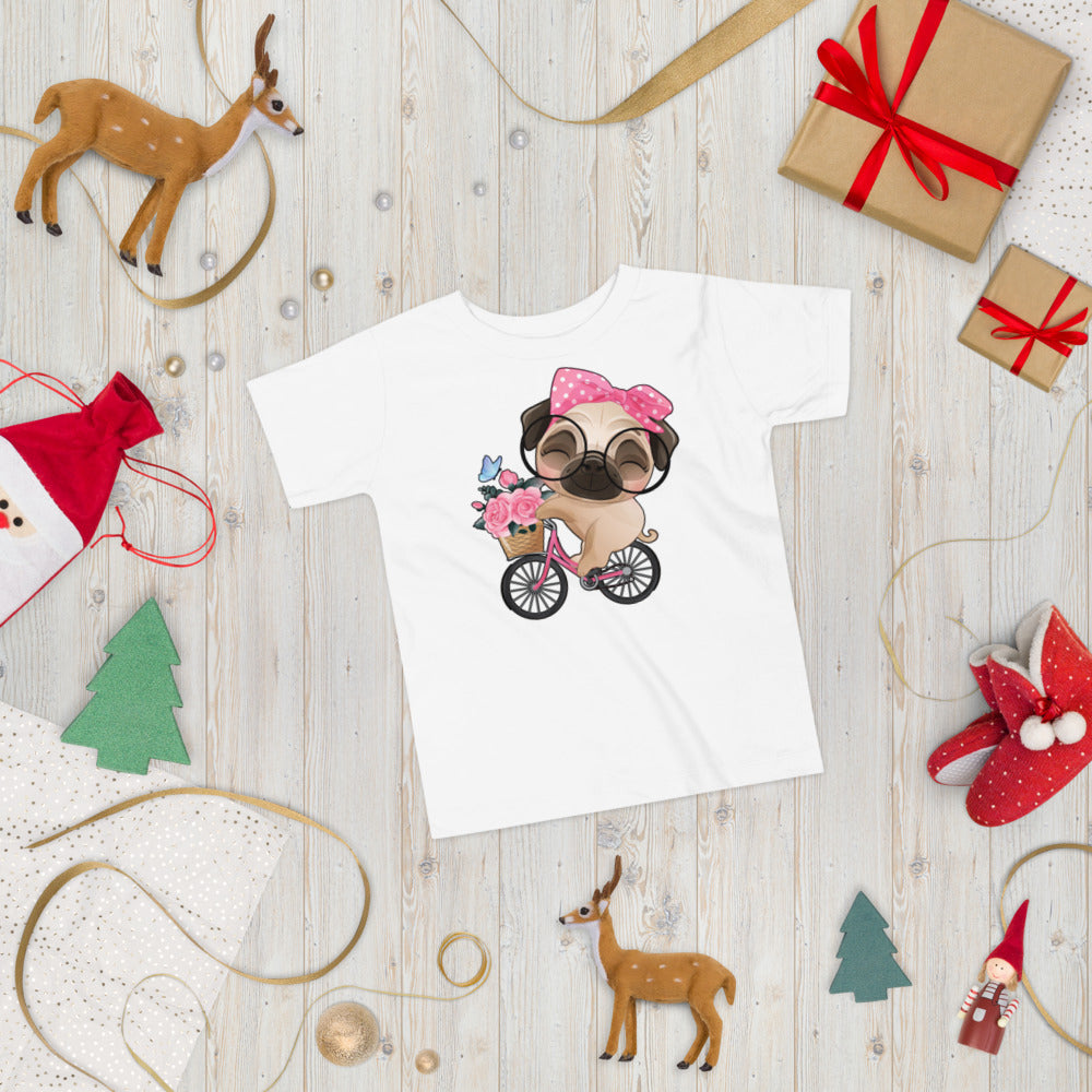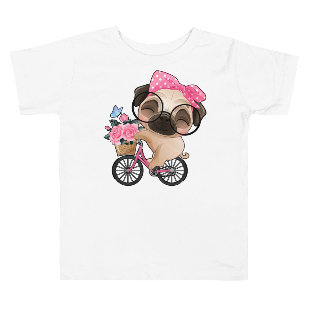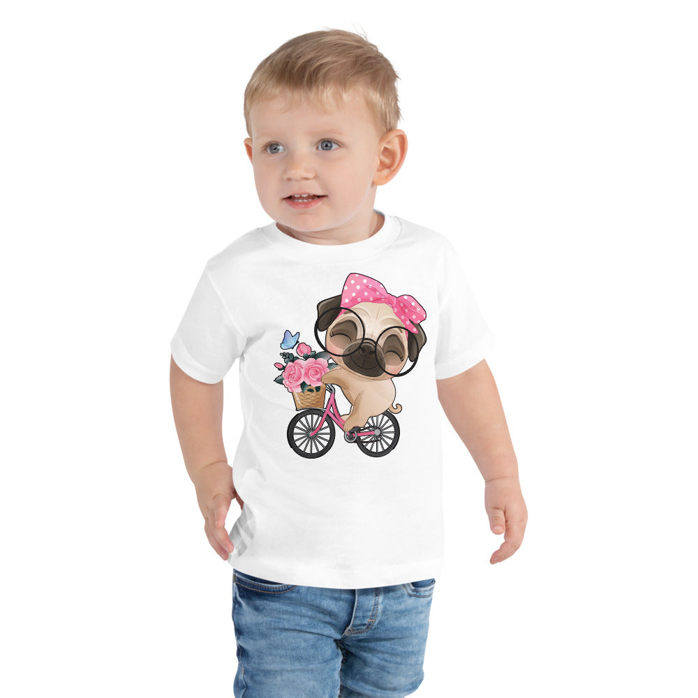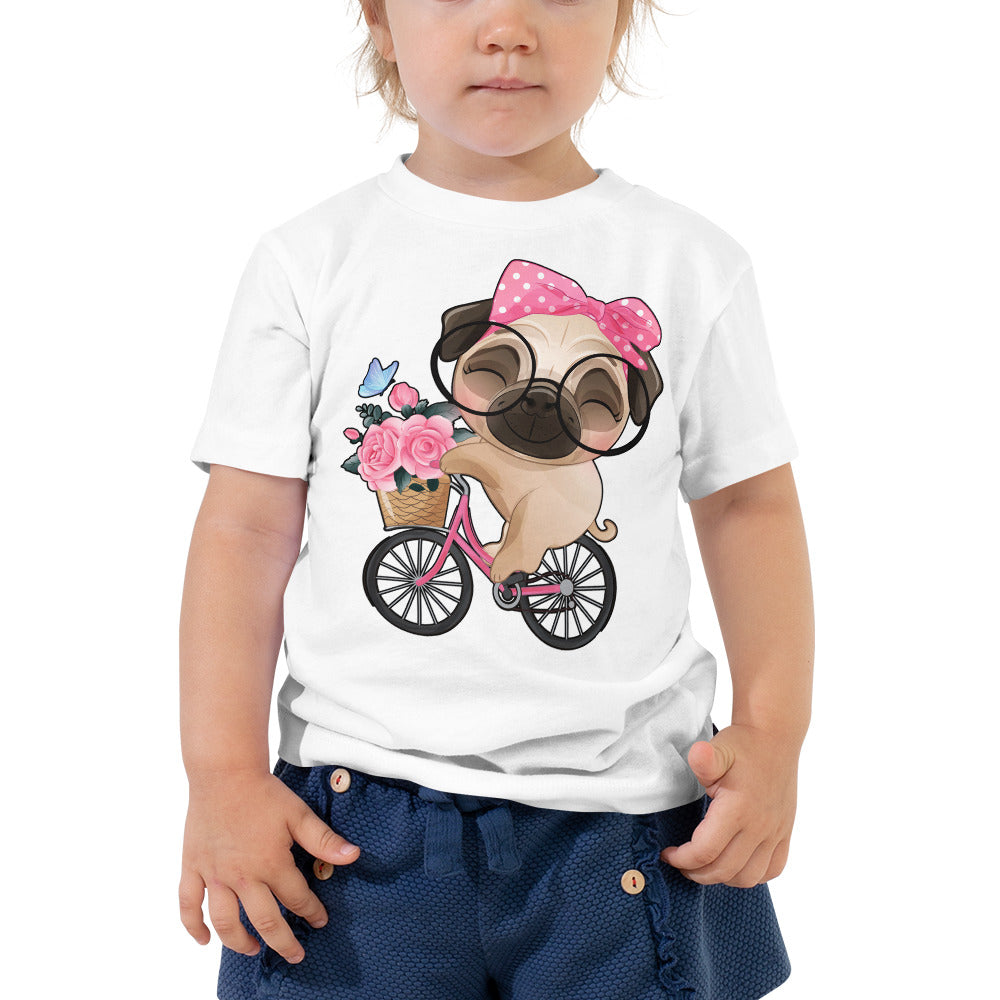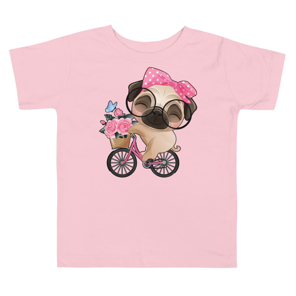Cute Little Pug Dog Riding Bicycle, T-shirts, No. 0364