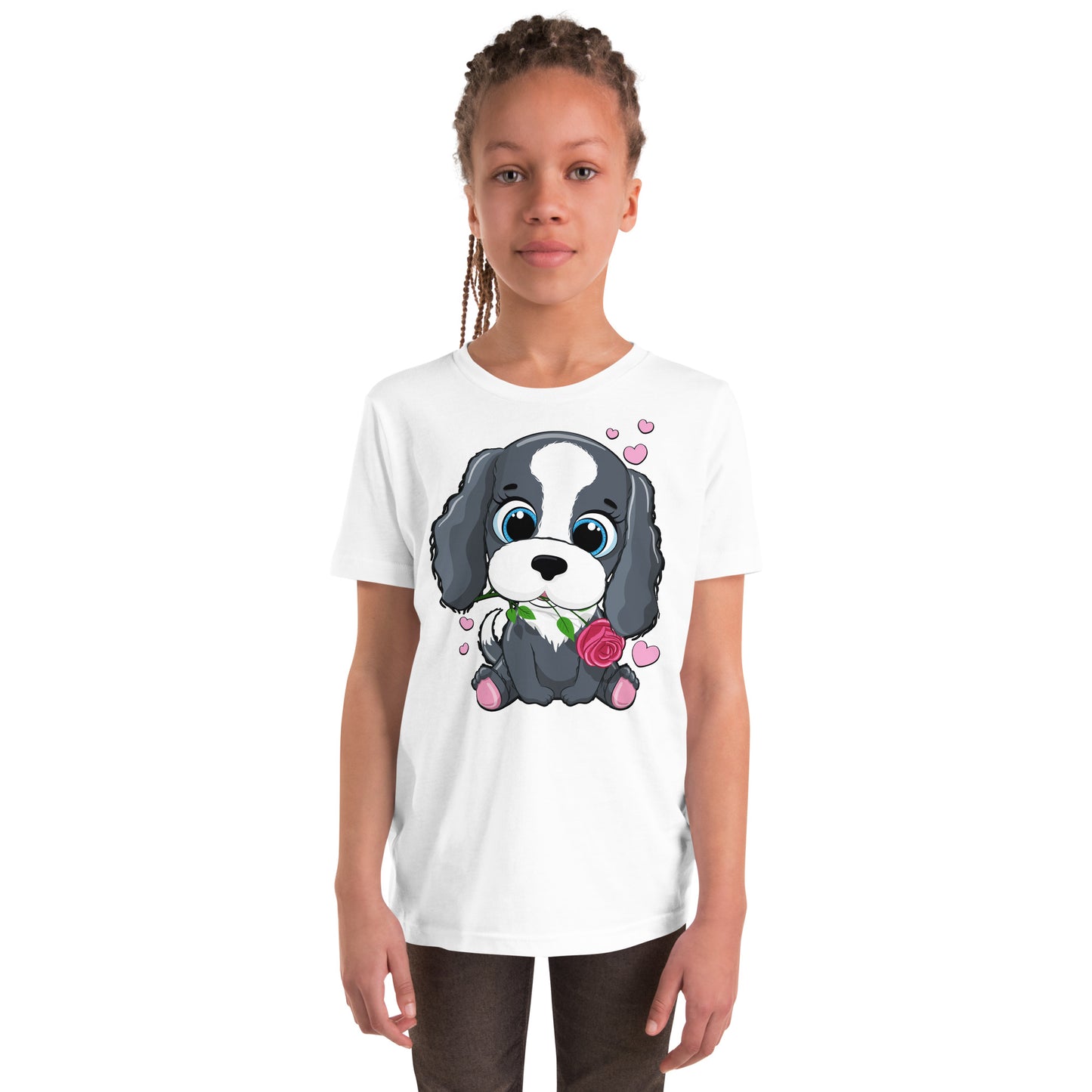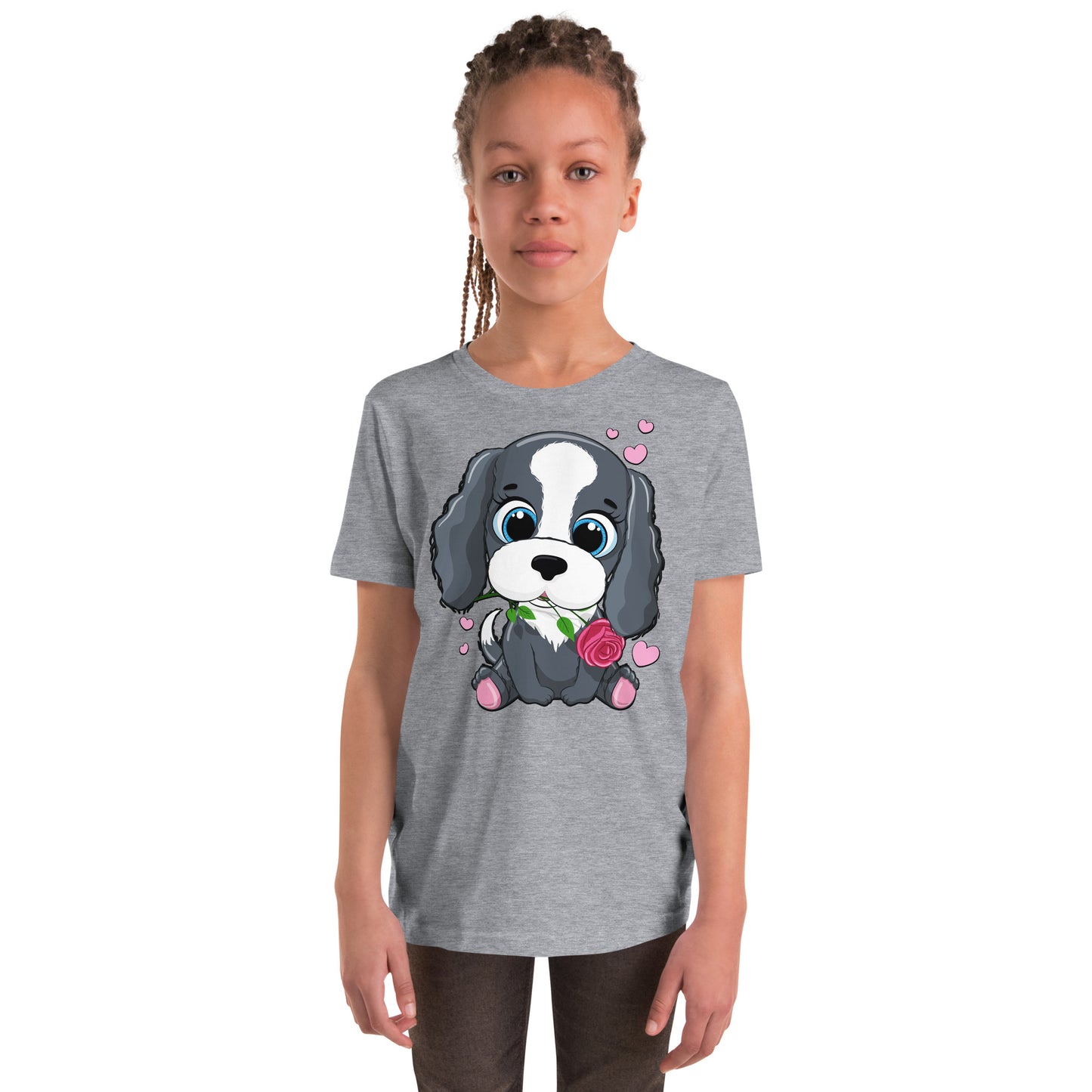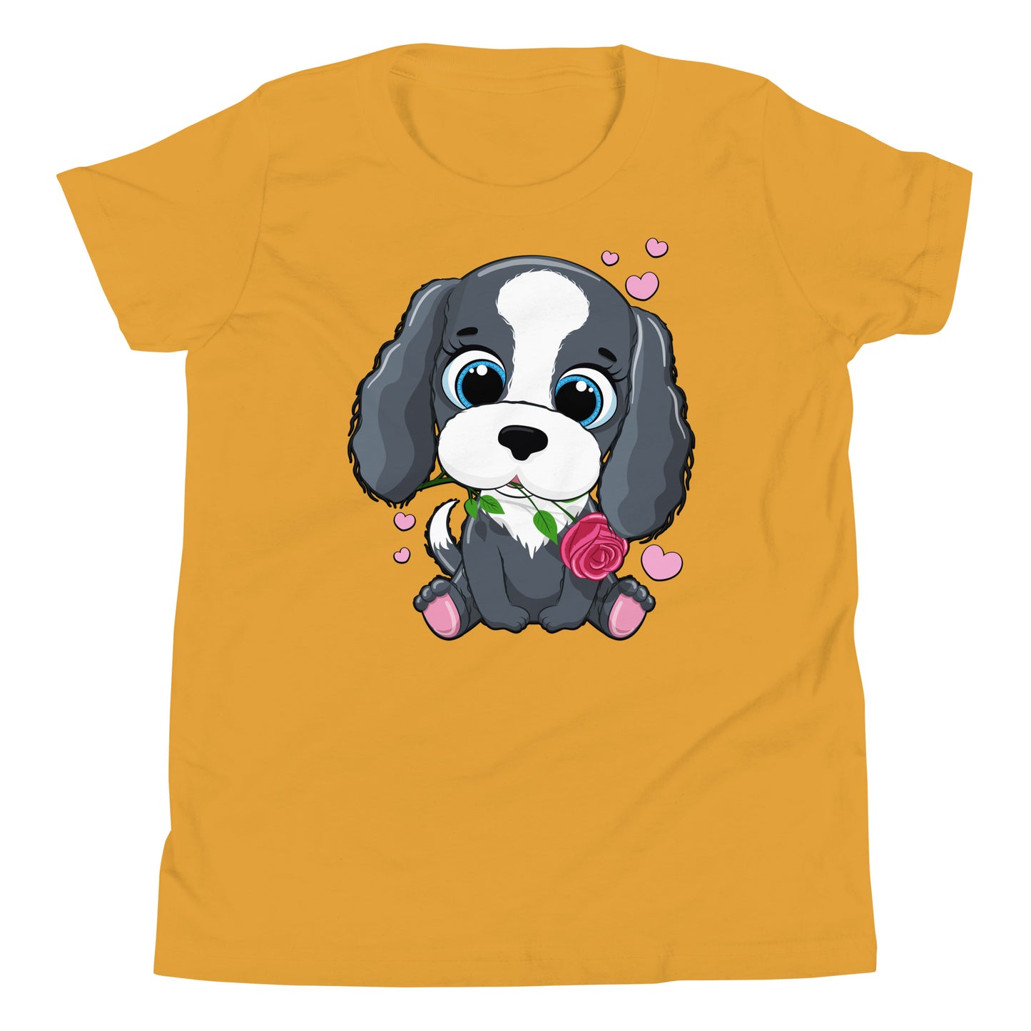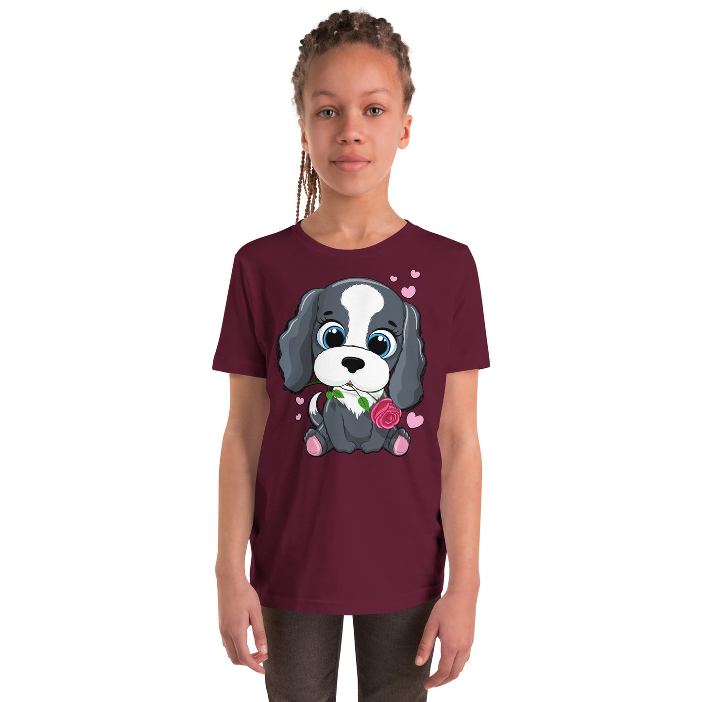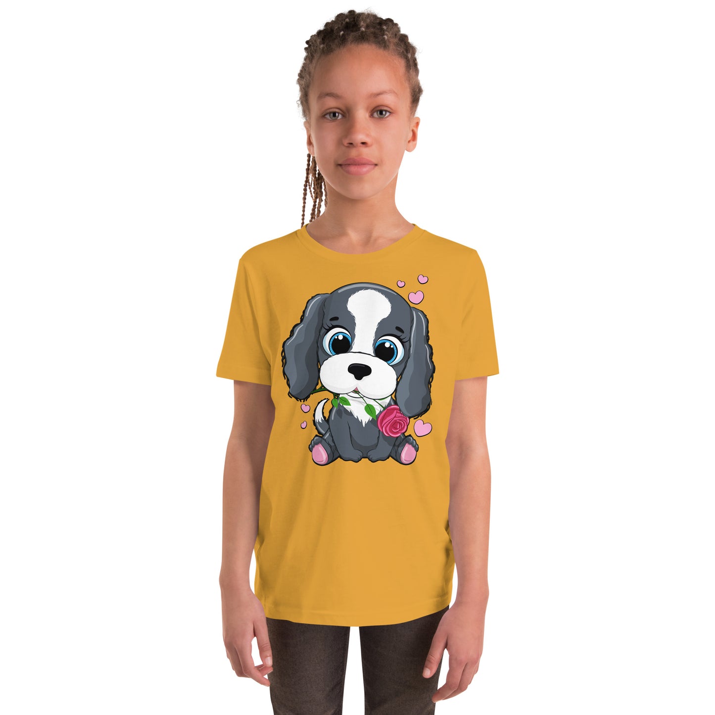 Cute Little Puppy Dog Holding Flower T-Shirt, No. 0218