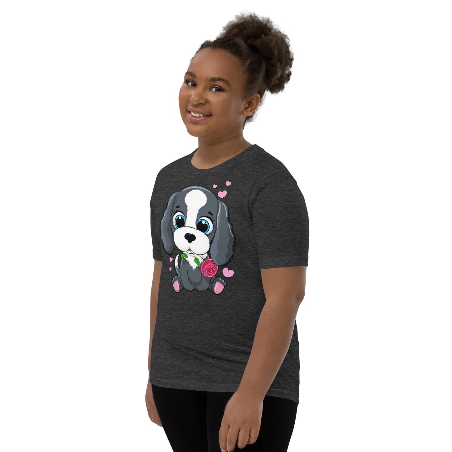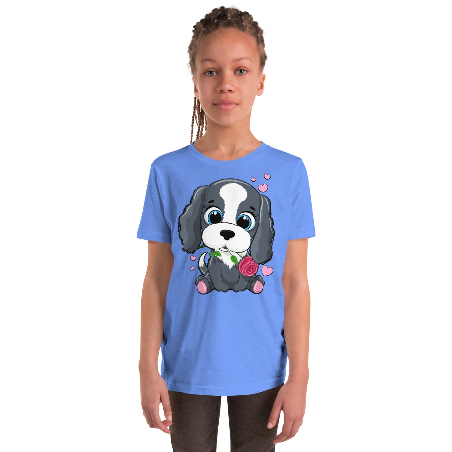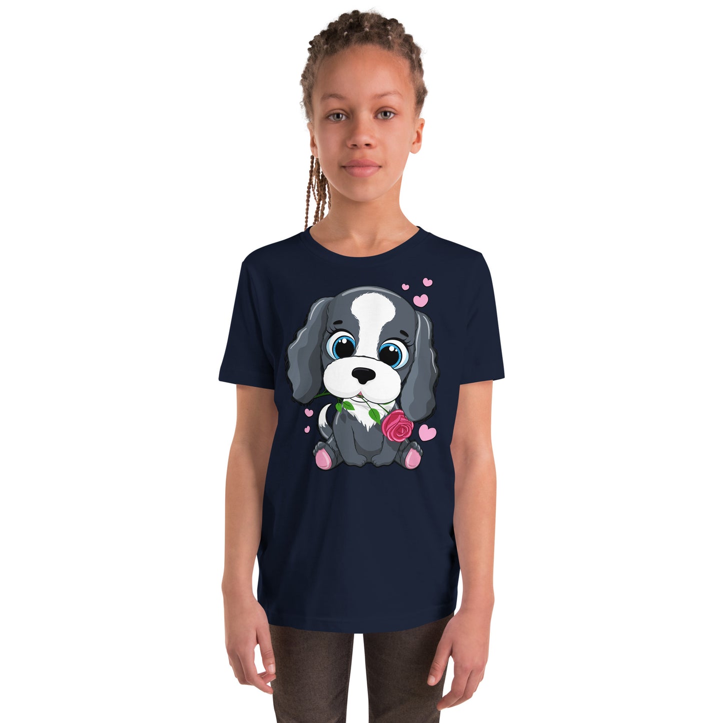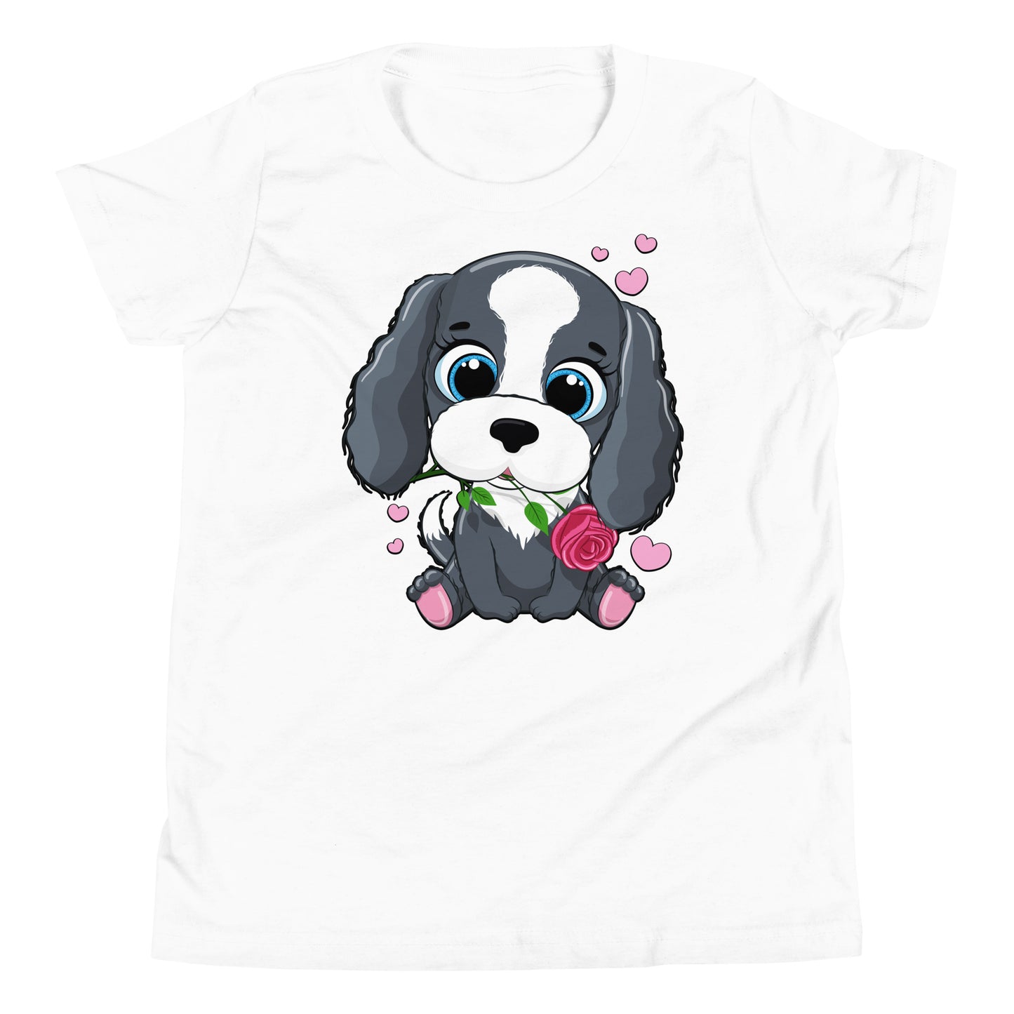 Cute Little Puppy Dog Holding Flower T-Shirt, No. 0218