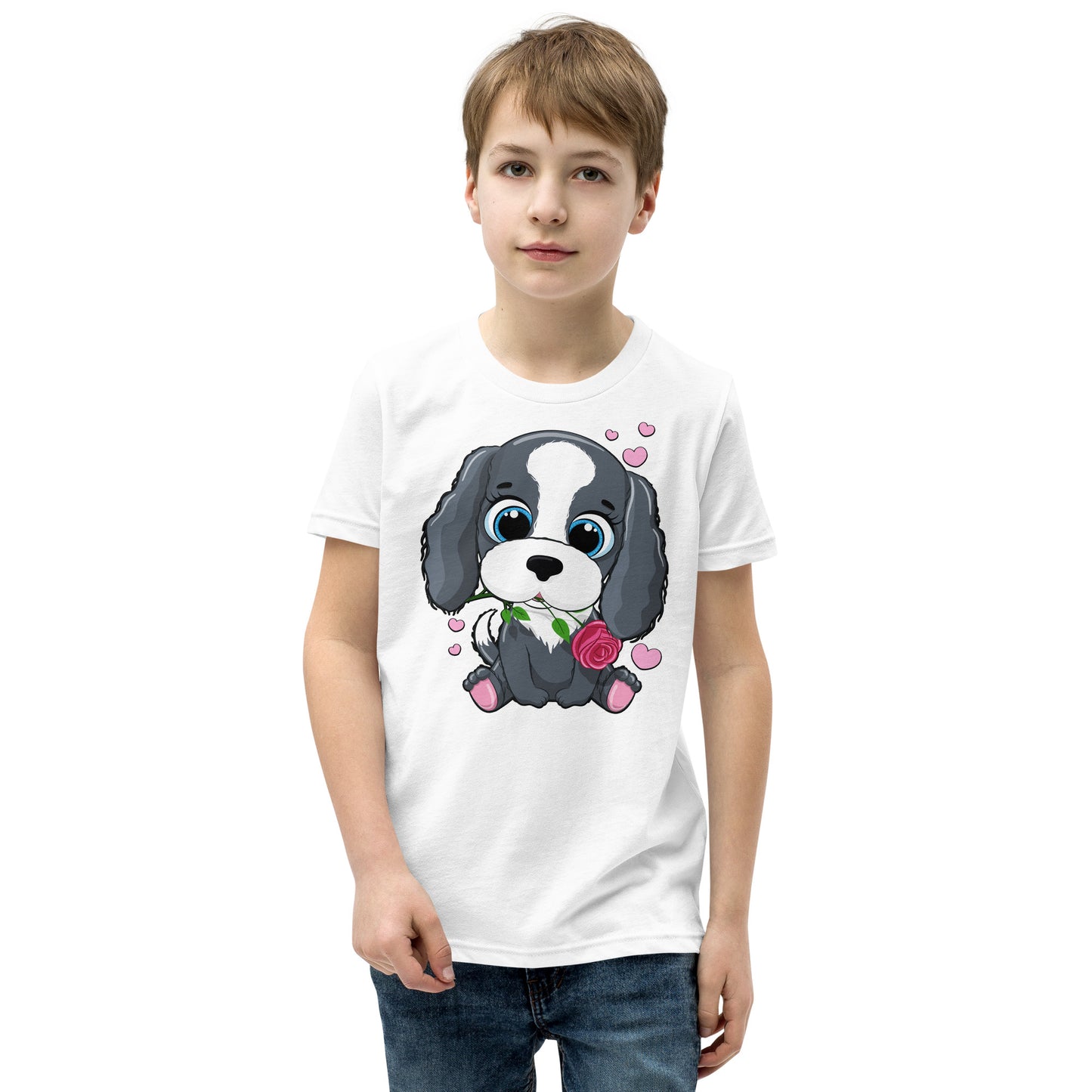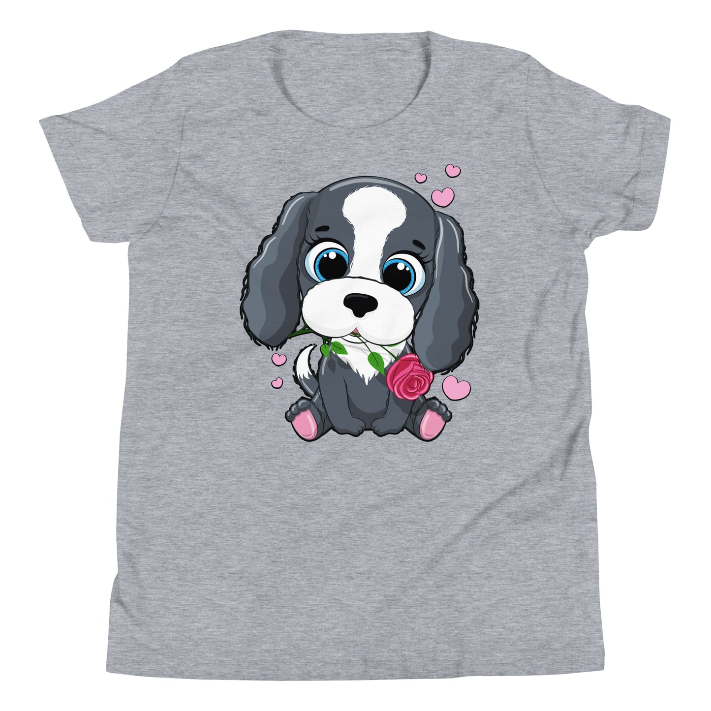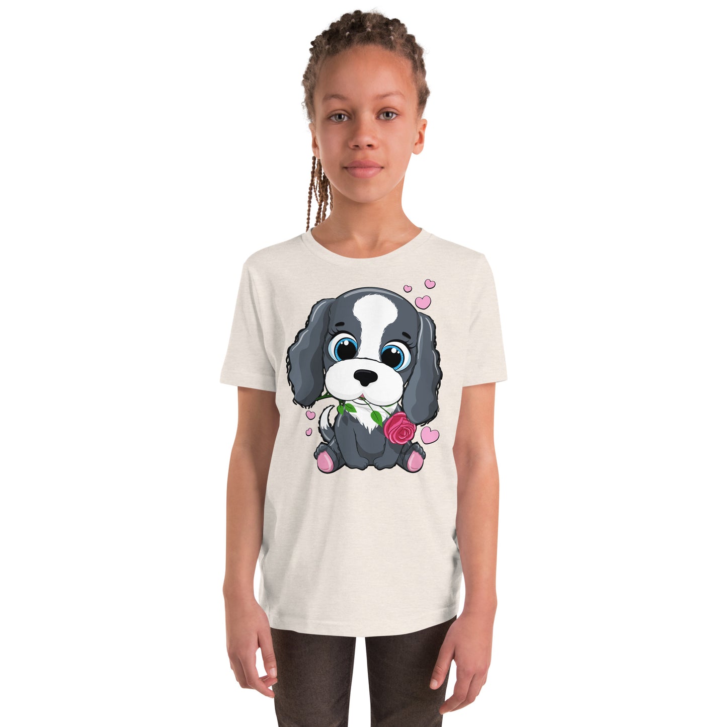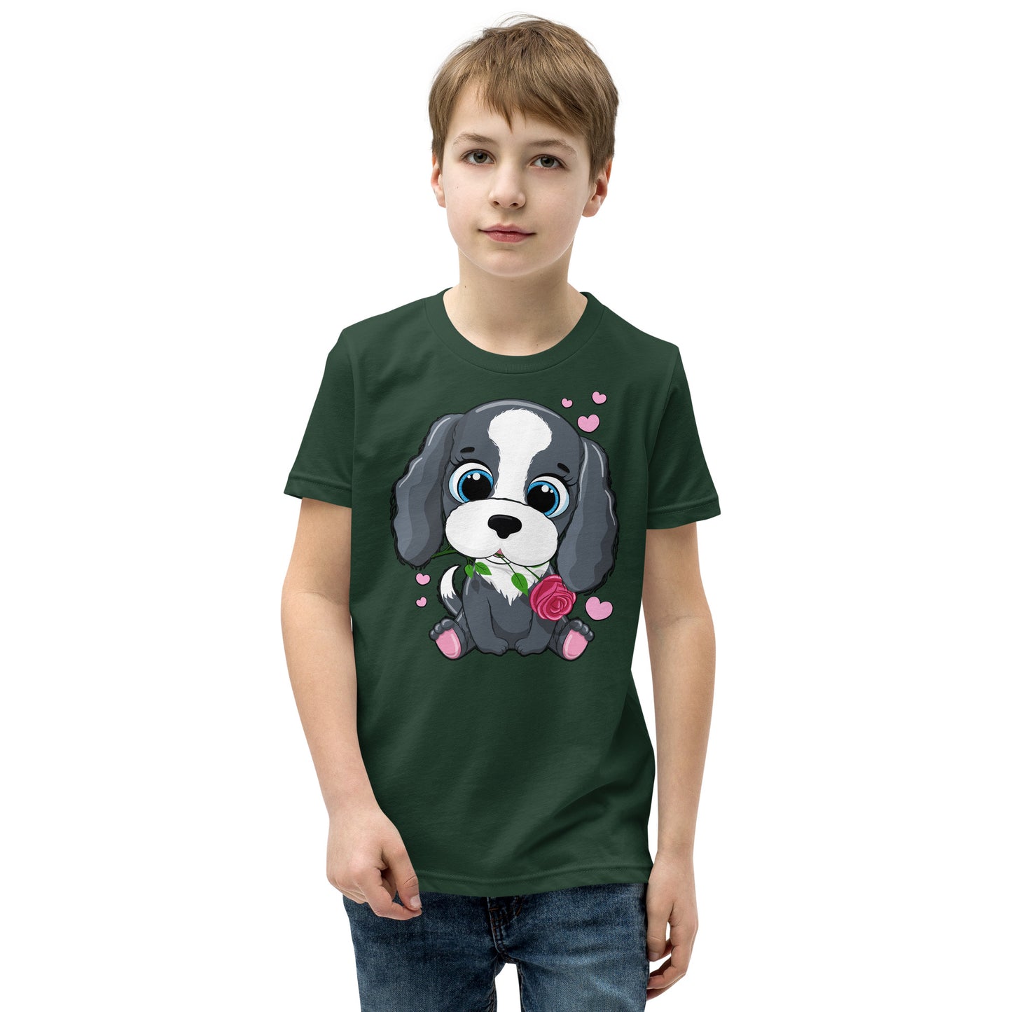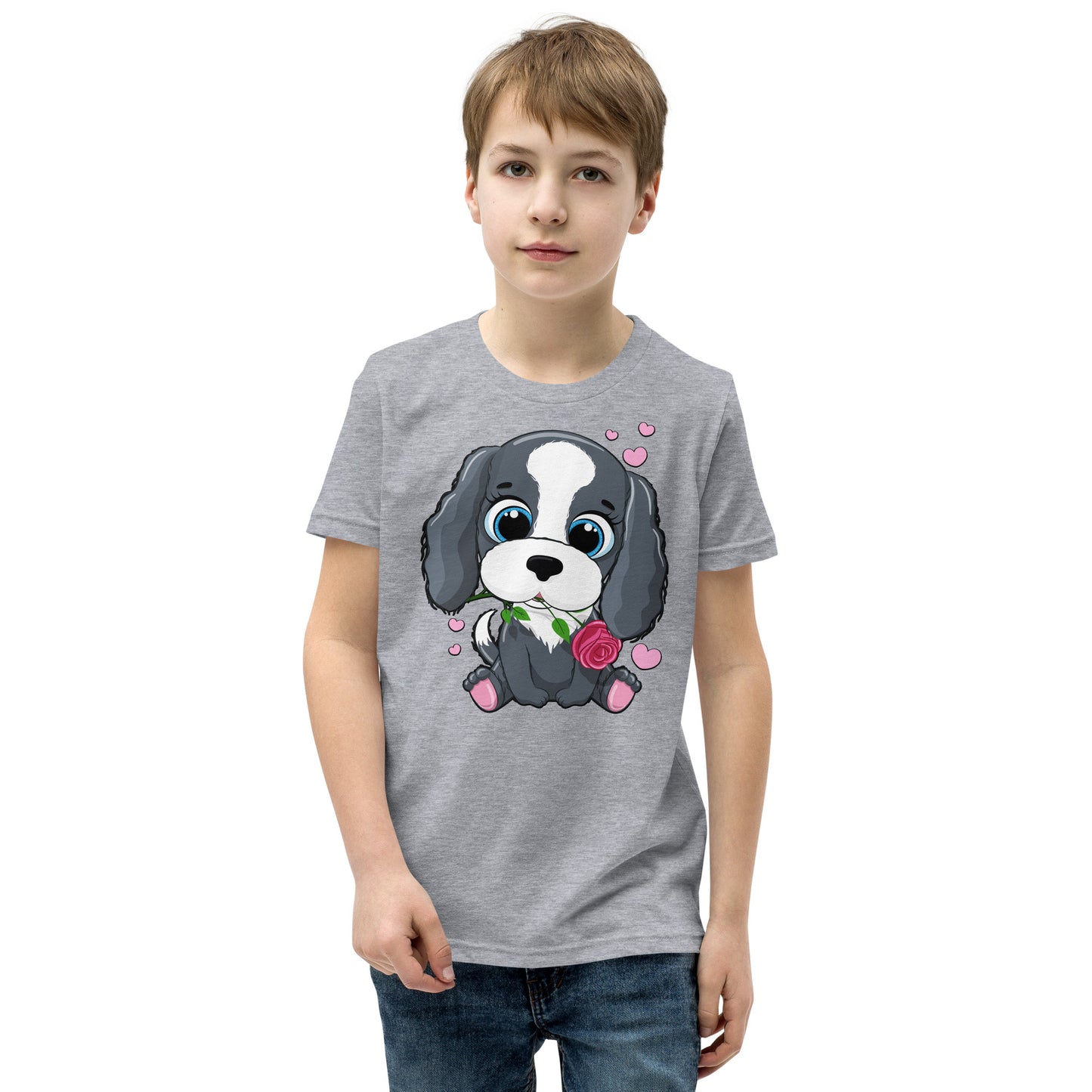 Cute Little Puppy Dog Holding Flower T-Shirt, No. 0218