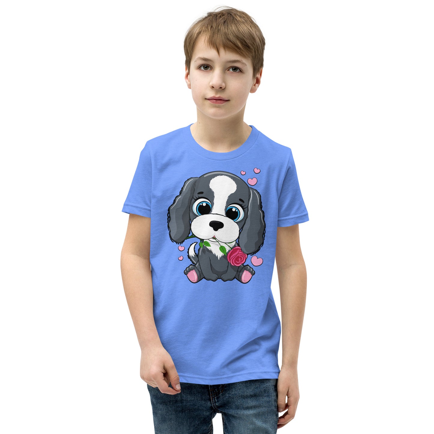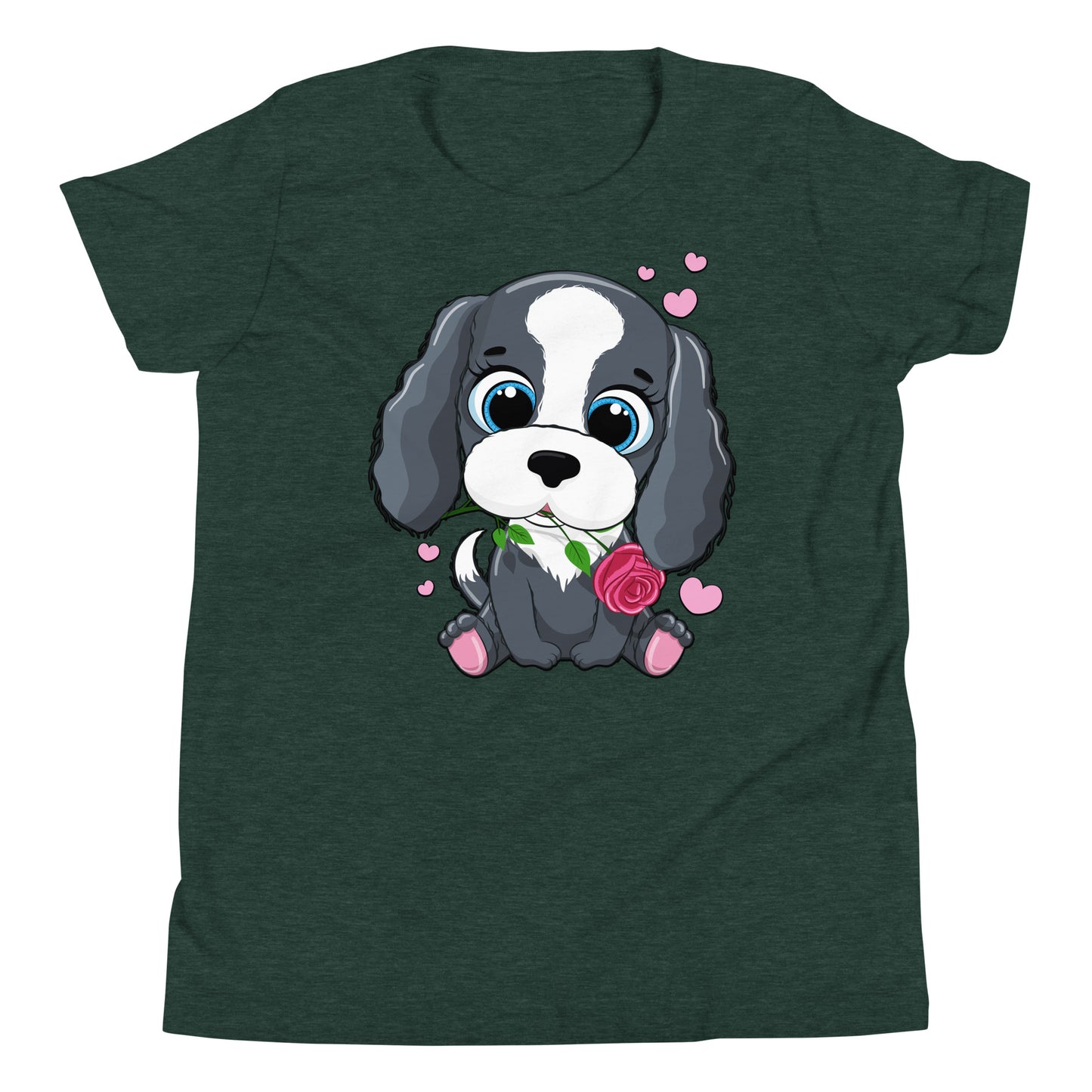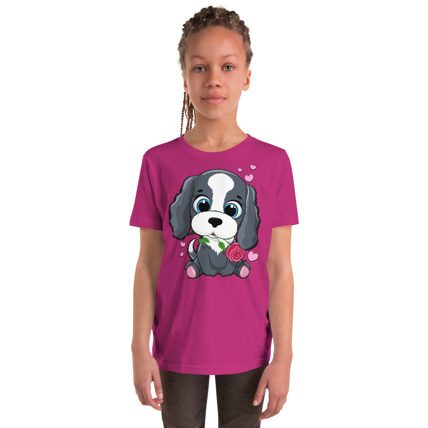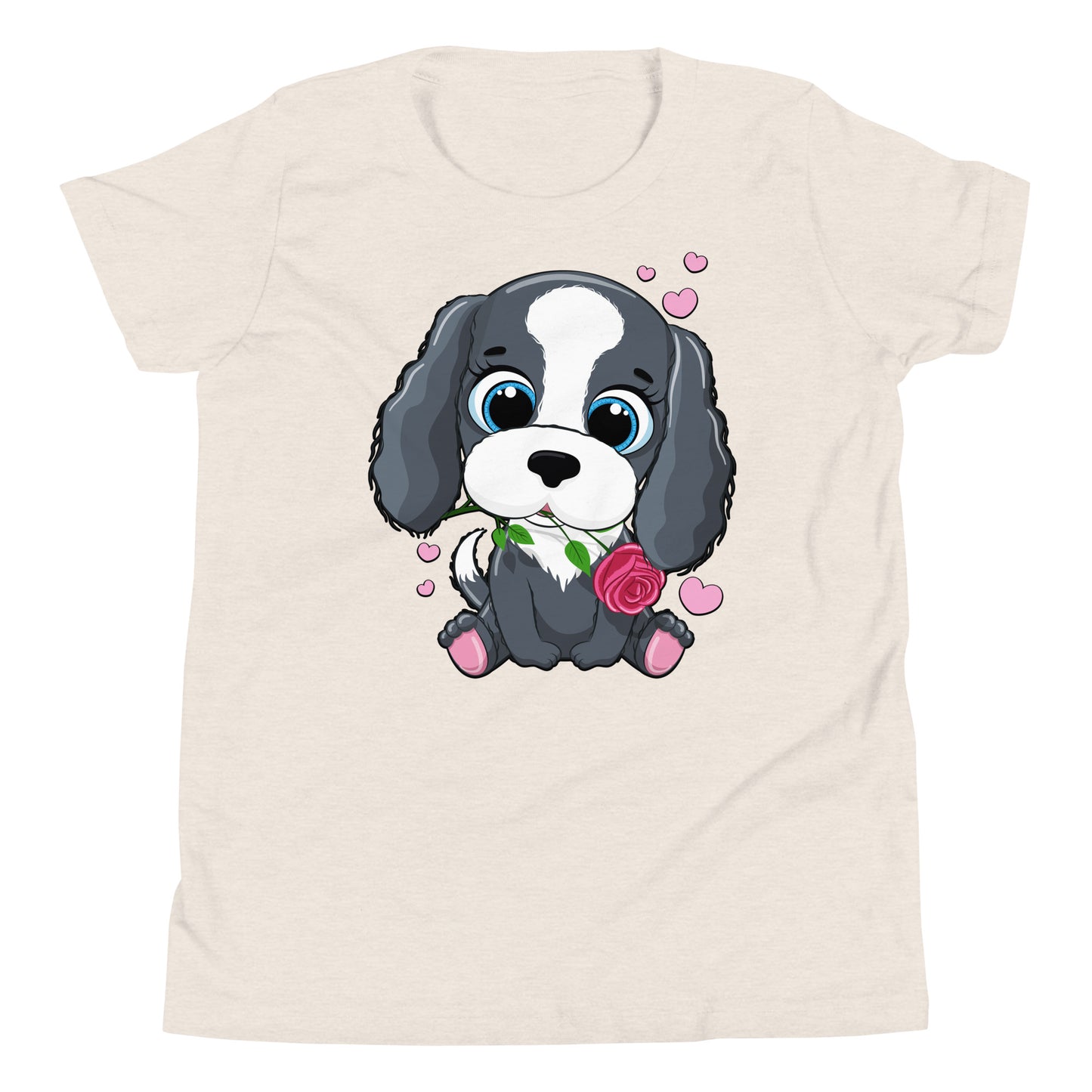 Cute Little Puppy Dog Holding Flower T-Shirt, No. 0218