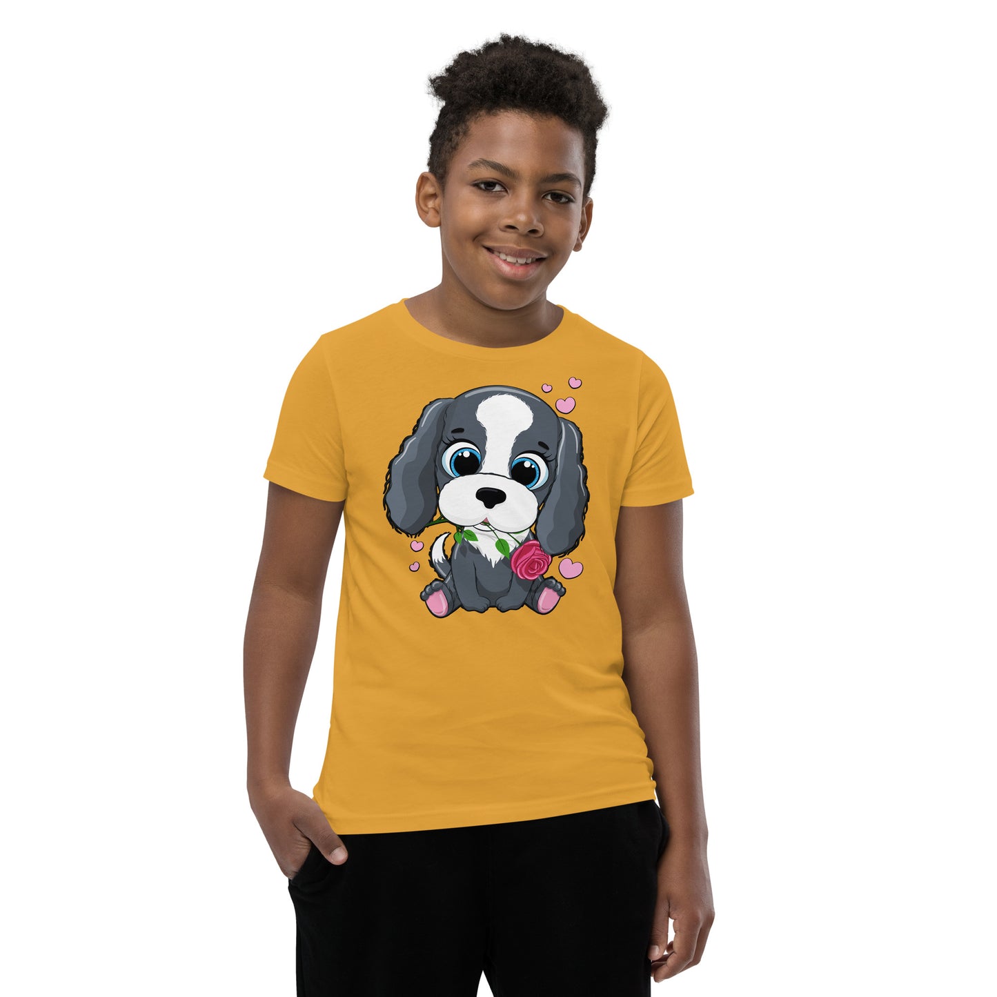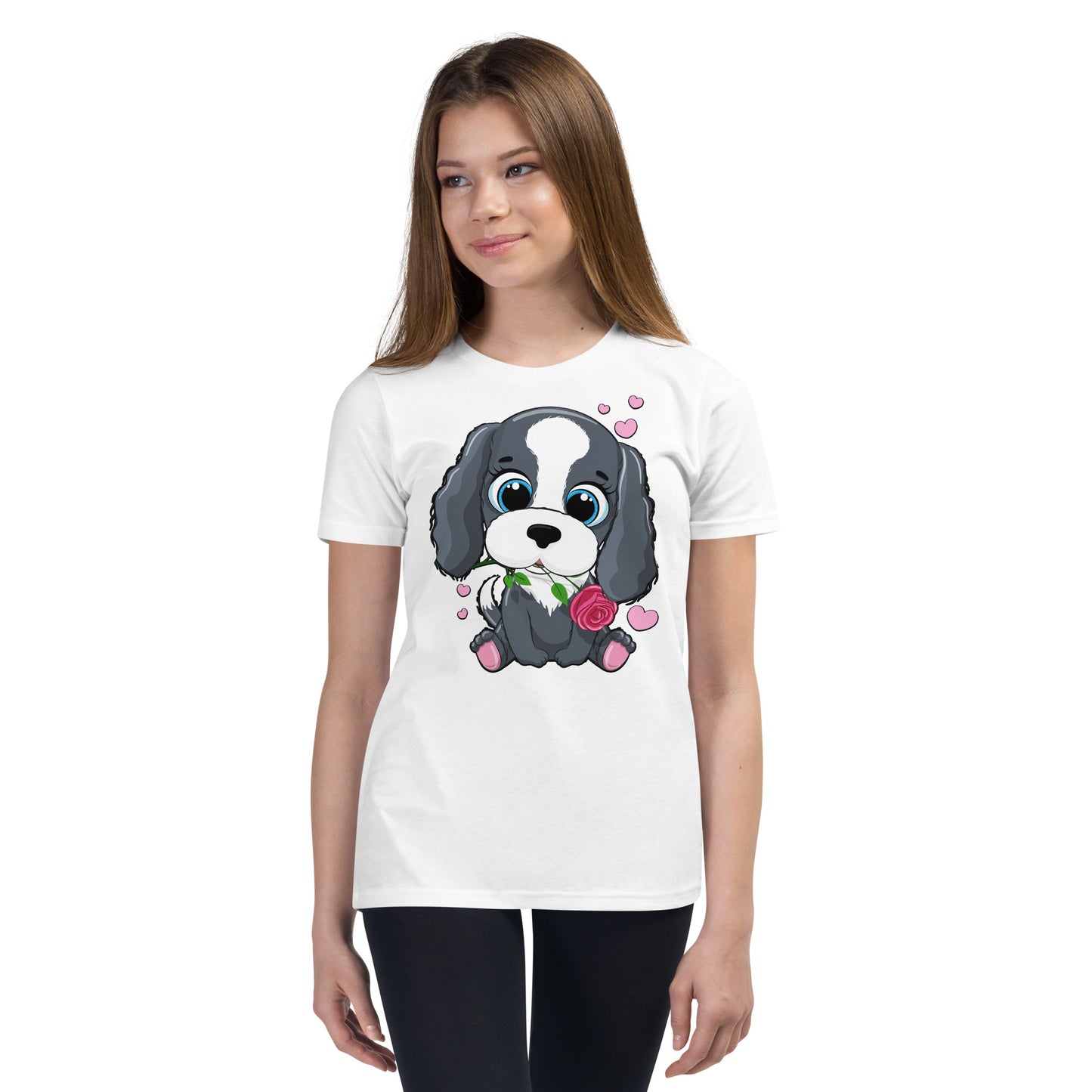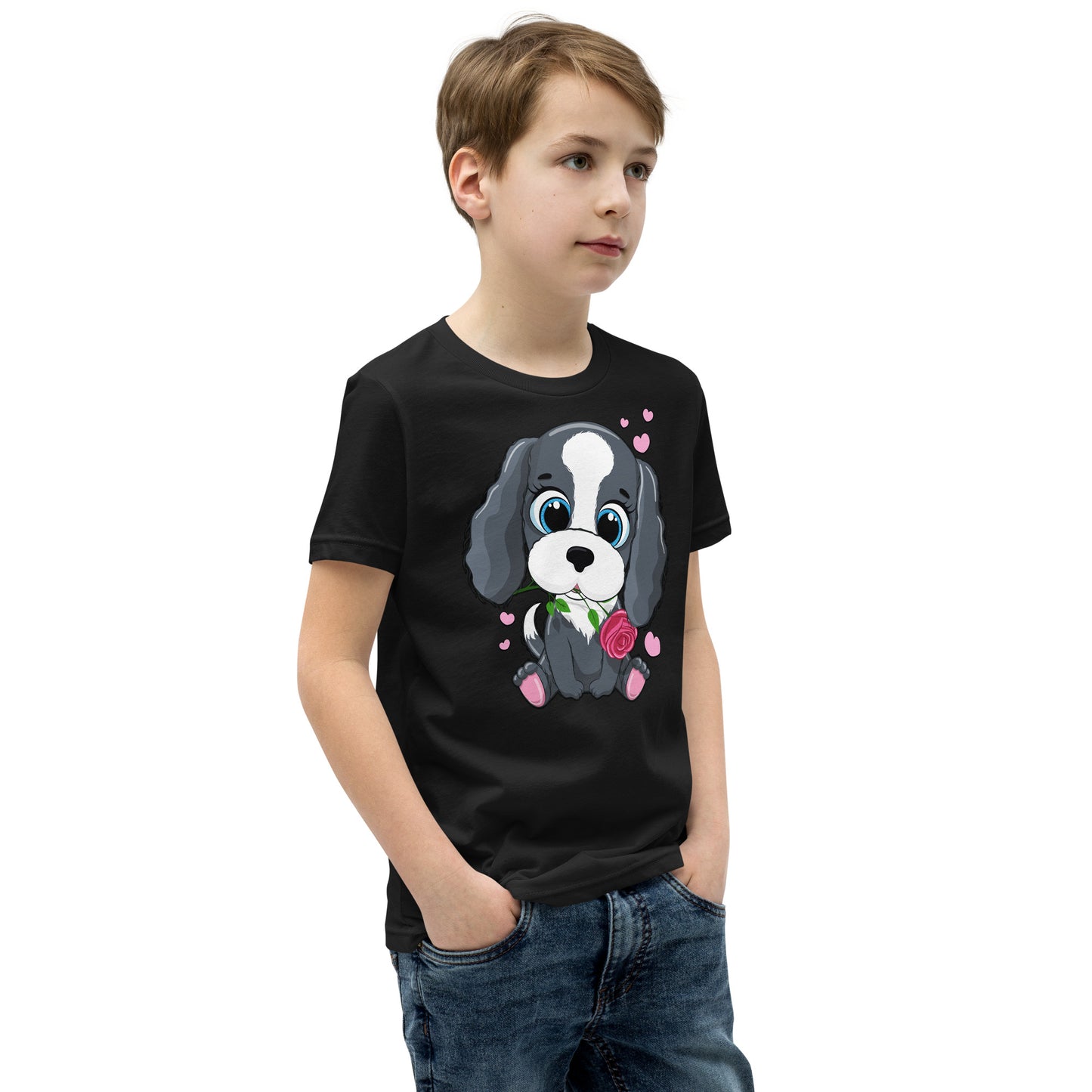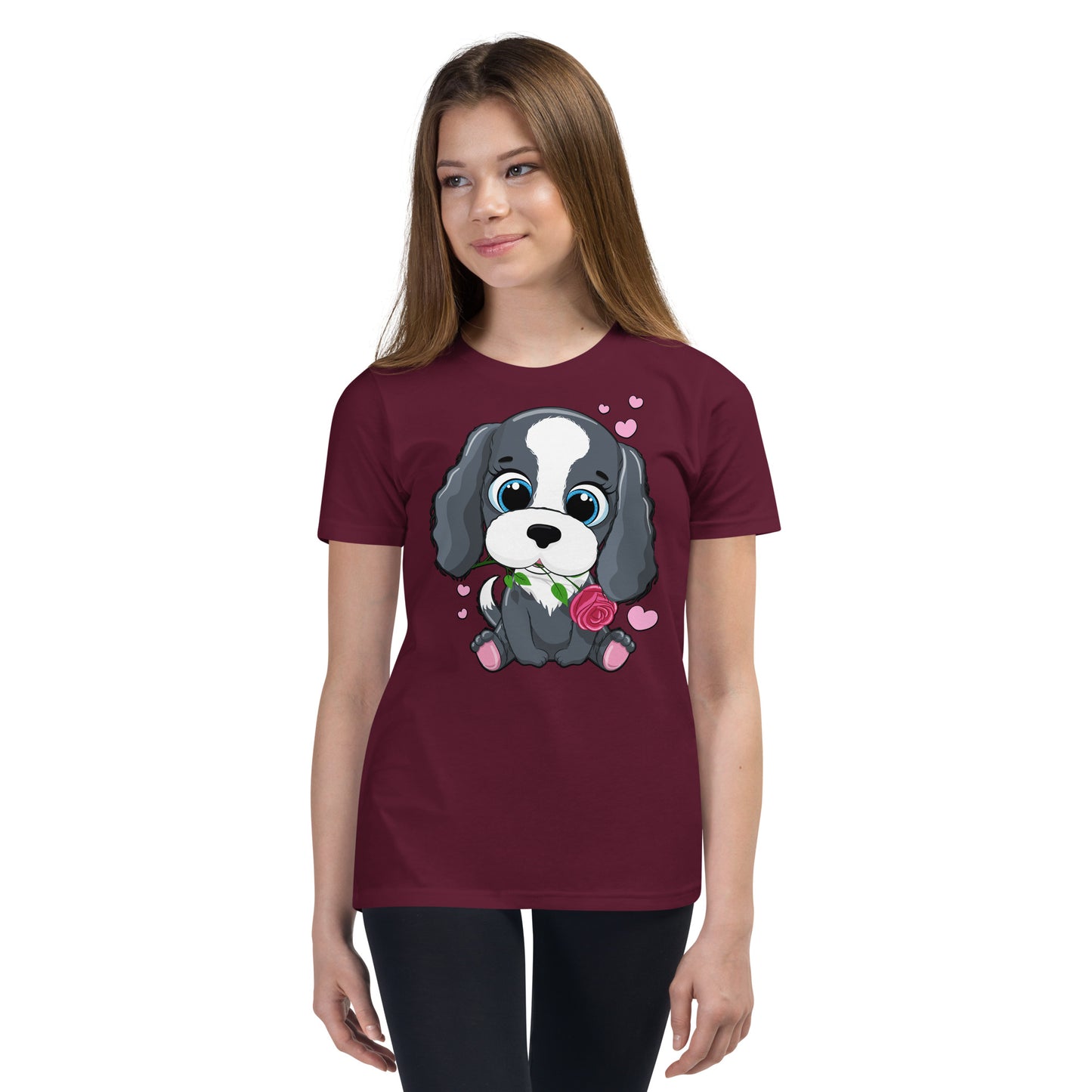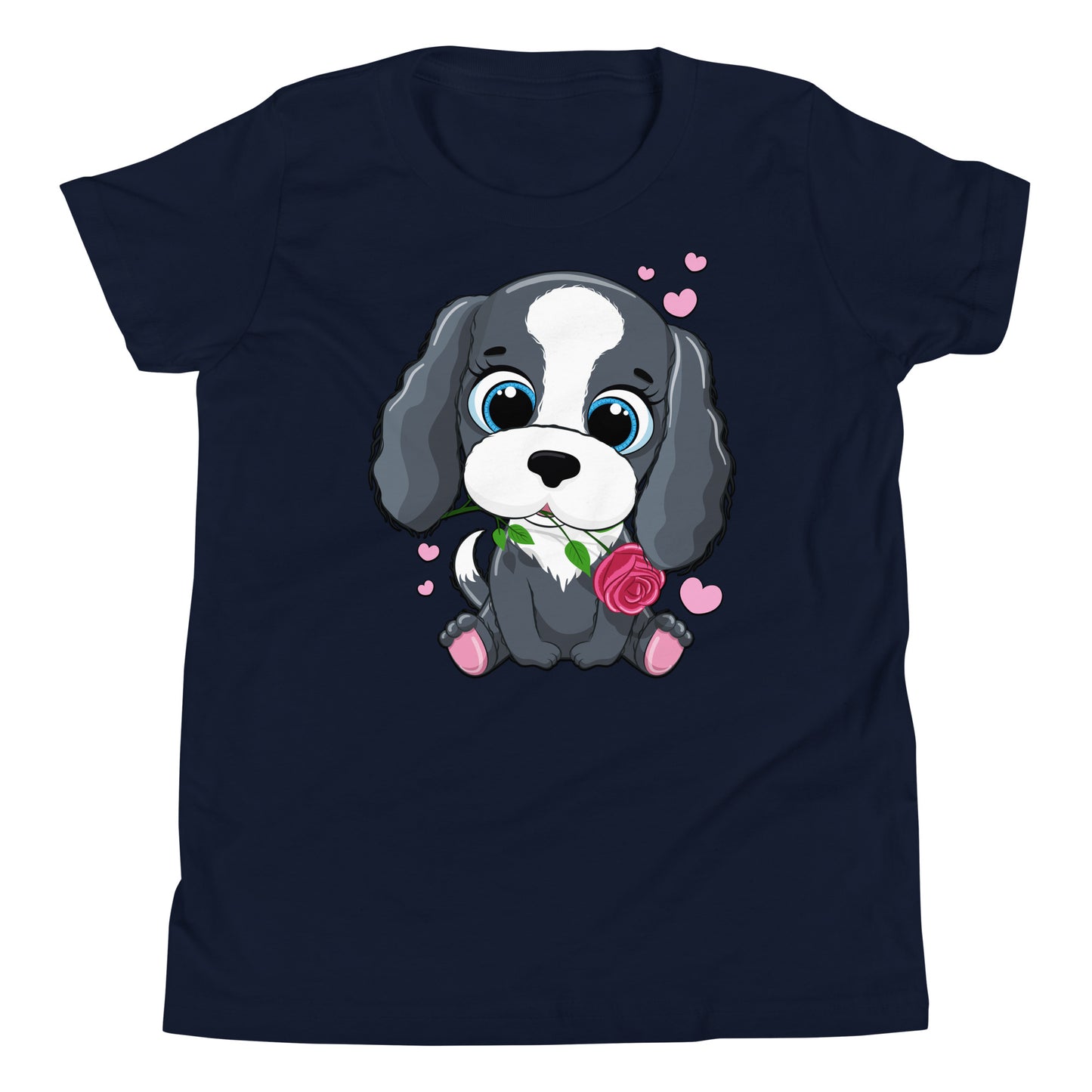 Cute Little Puppy Dog Holding Flower T-Shirt, No. 0218