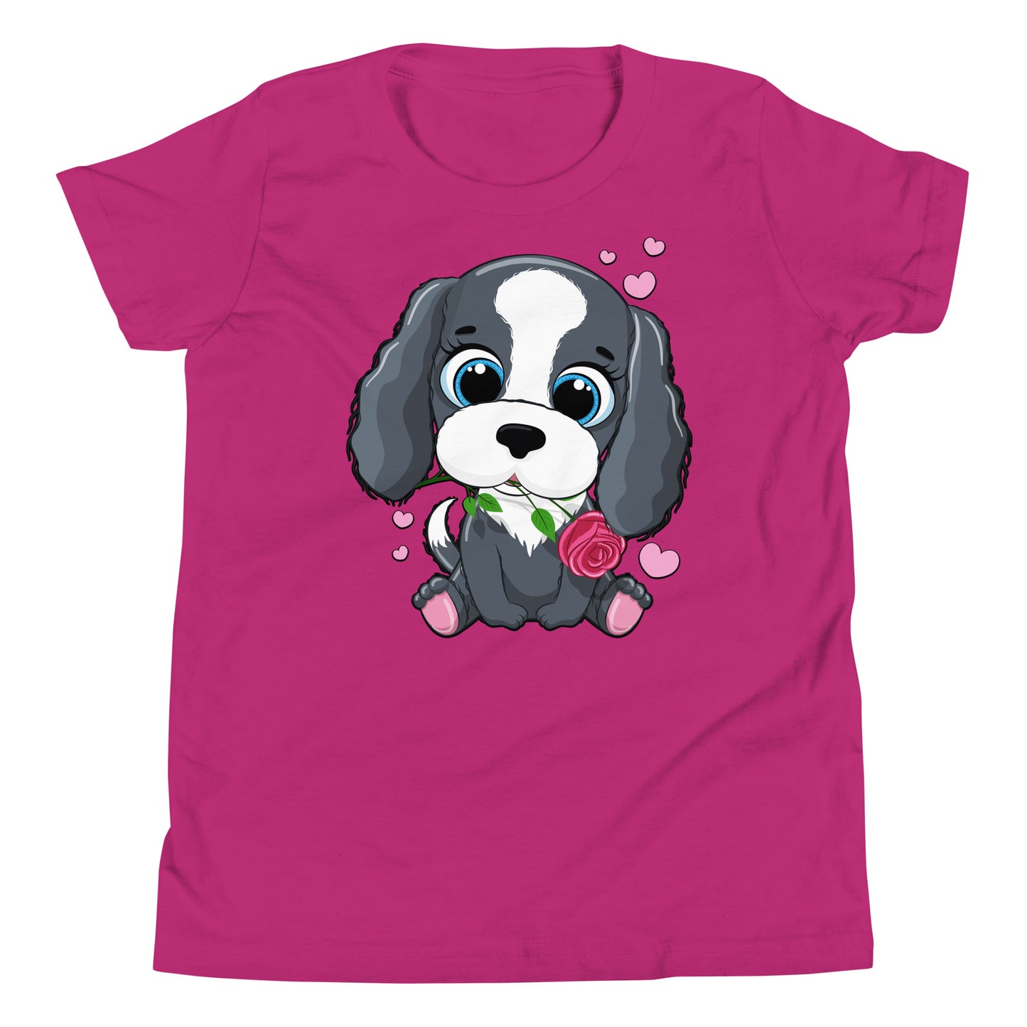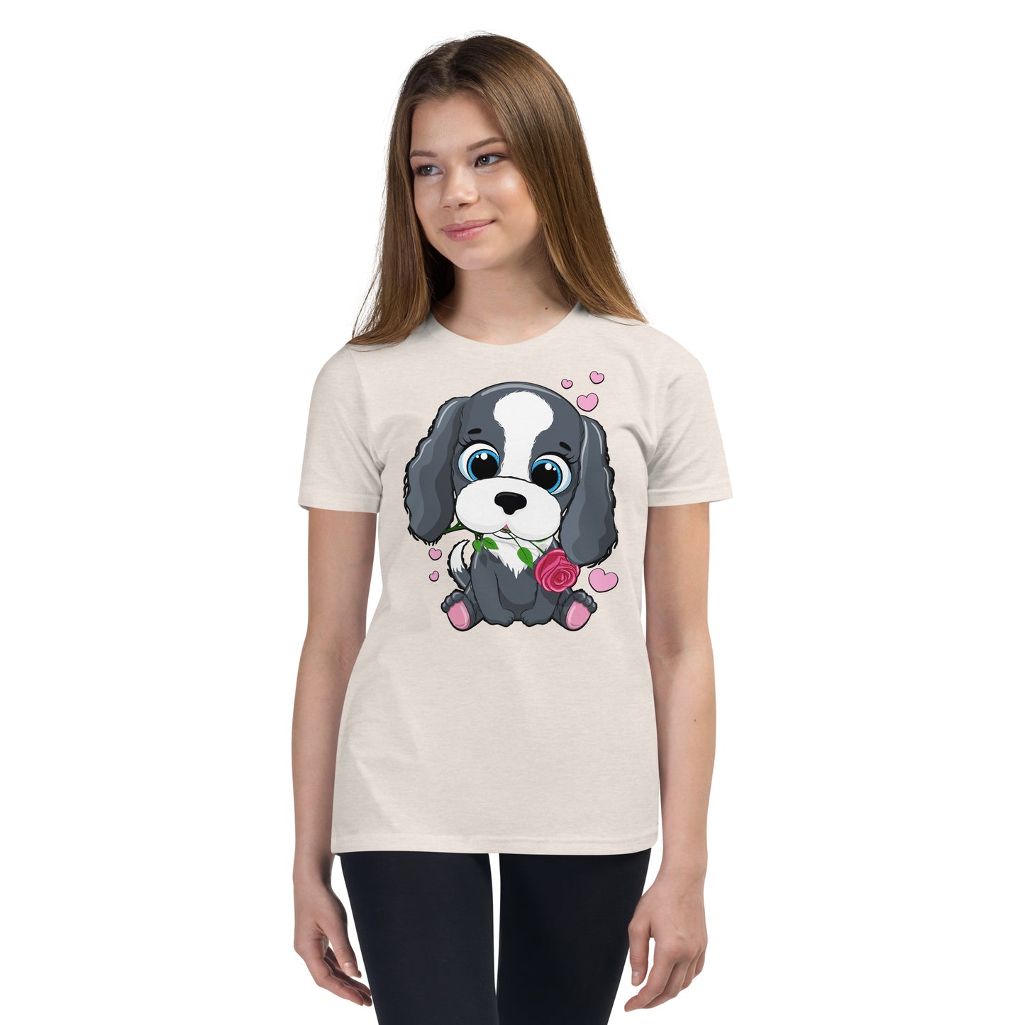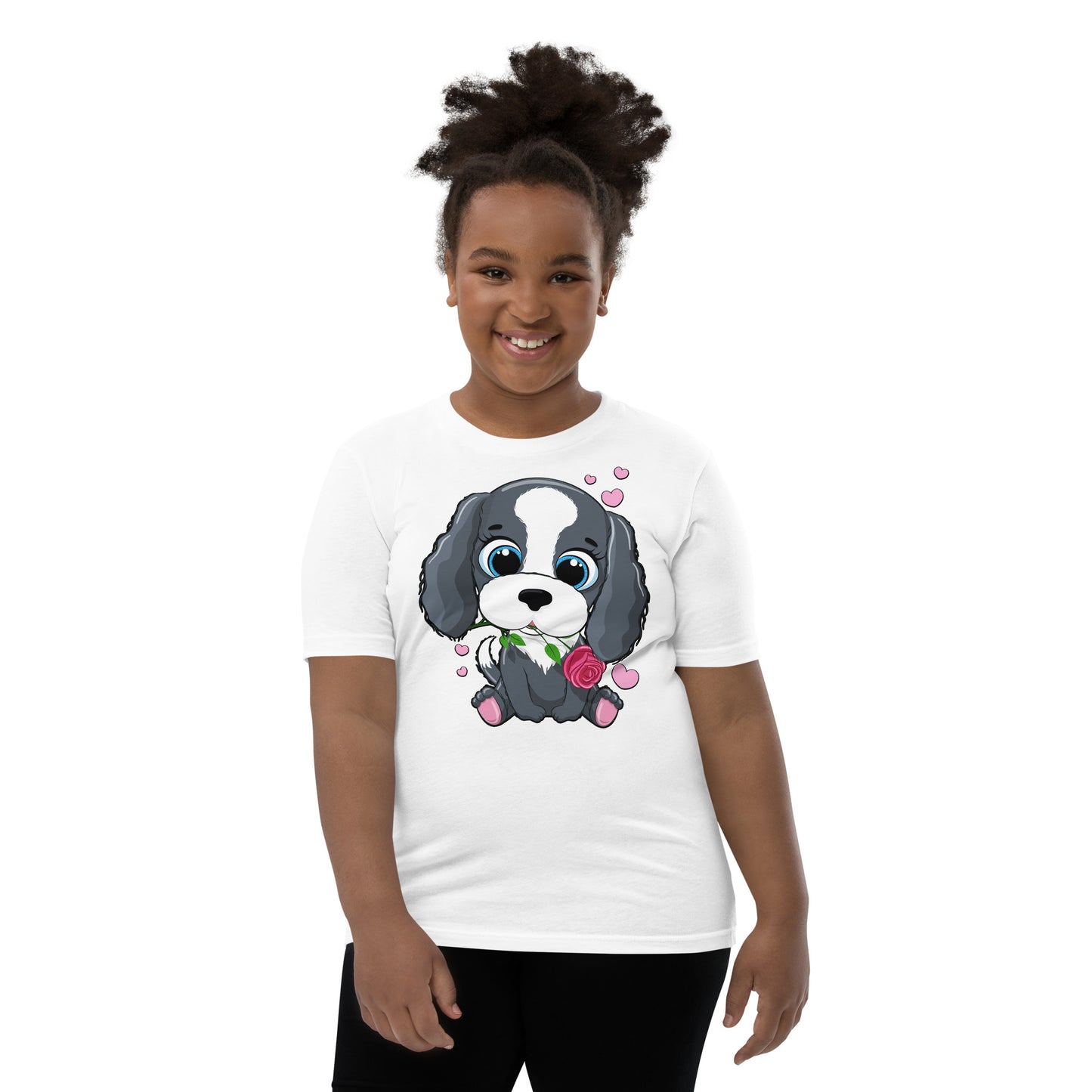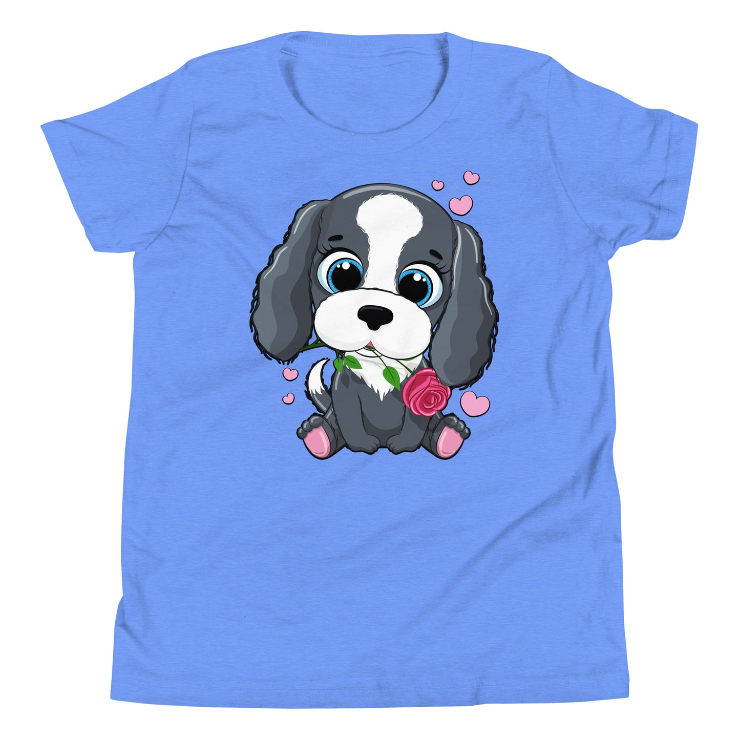 Cute Little Puppy Dog Holding Flower T-Shirt, No. 0218