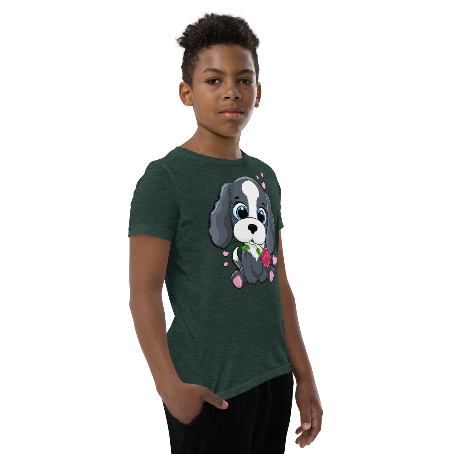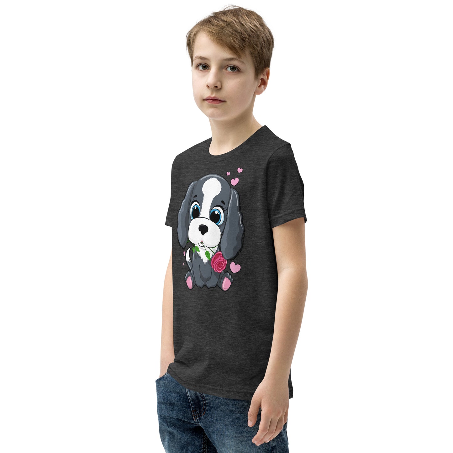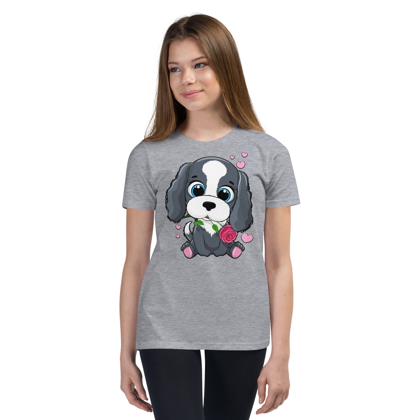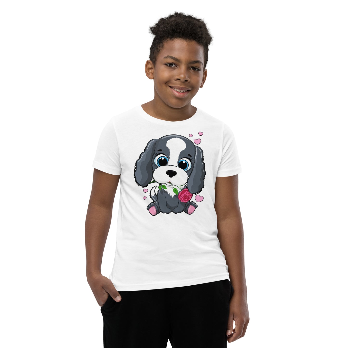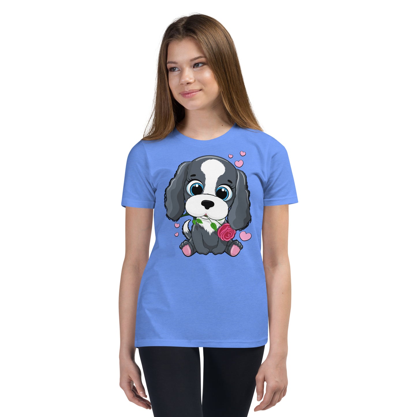 Cute Little Puppy Dog Holding Flower T-Shirt, No. 0218